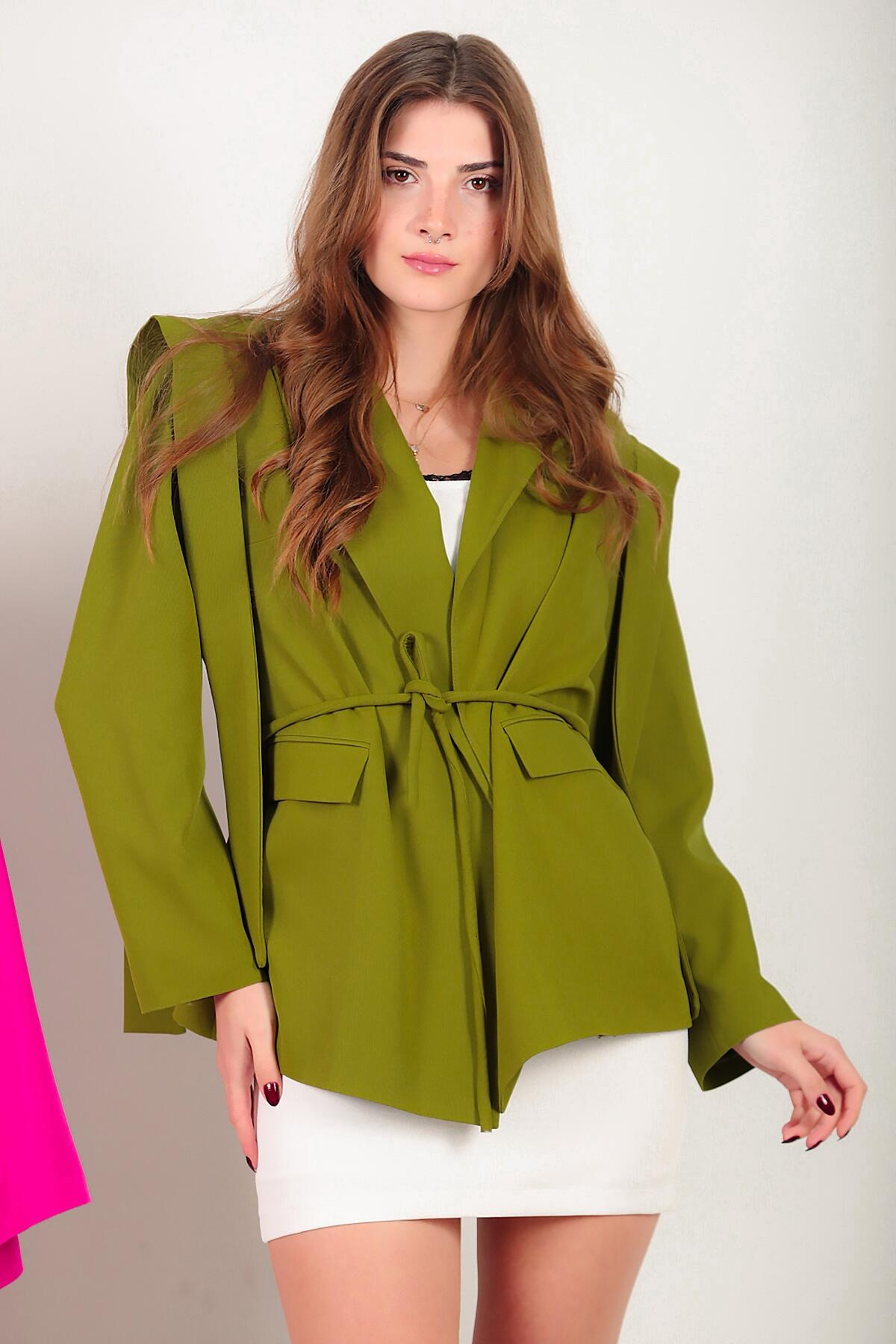 Kadın Omzu Kuşaklı Blazer Ceket Yeşil