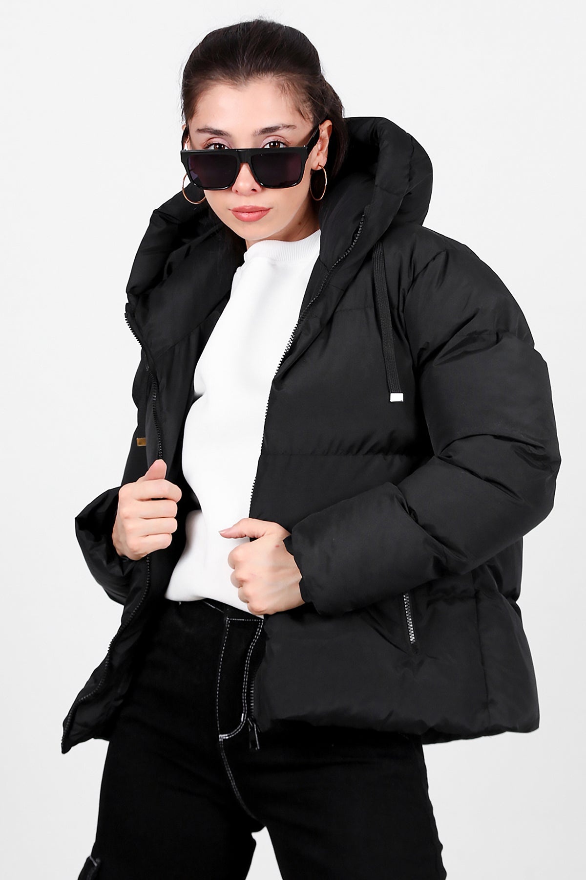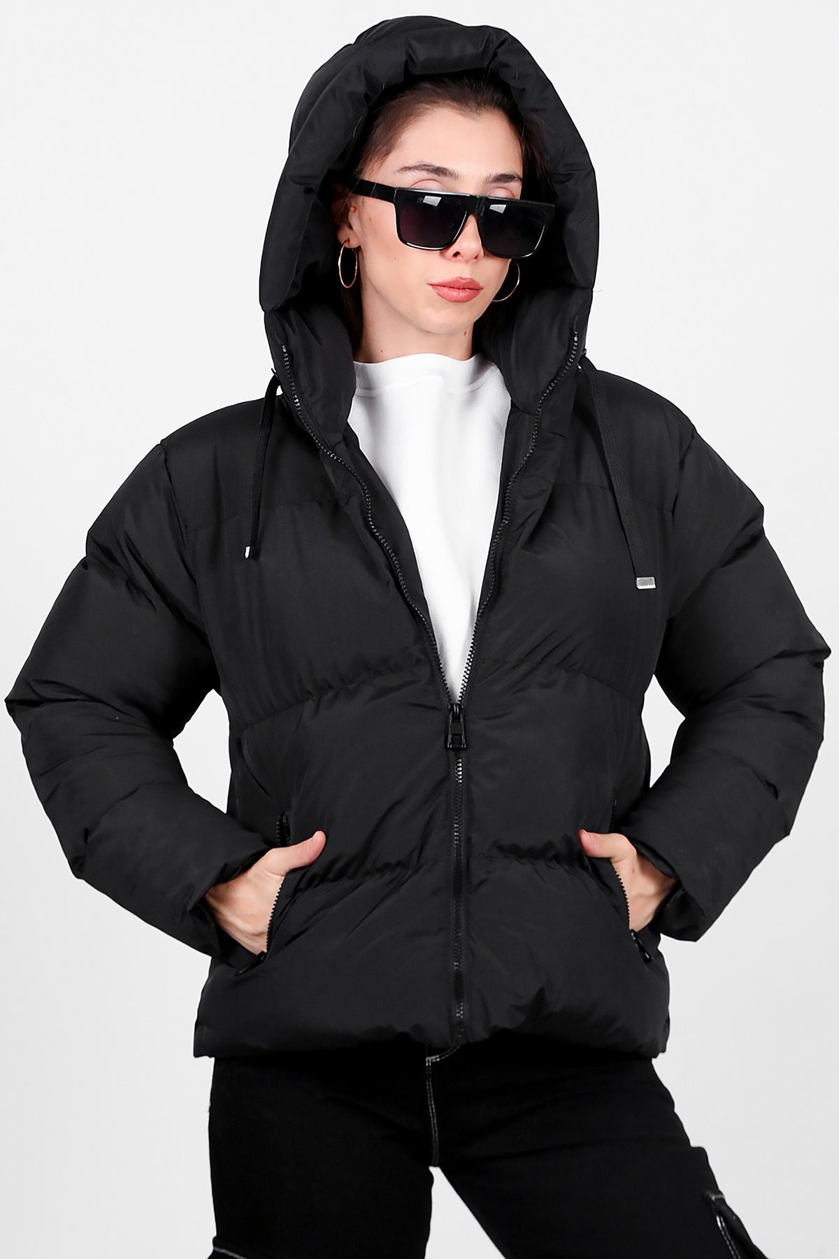 Overshort Kadın Oversize Kısa Mont Siyah Siyah