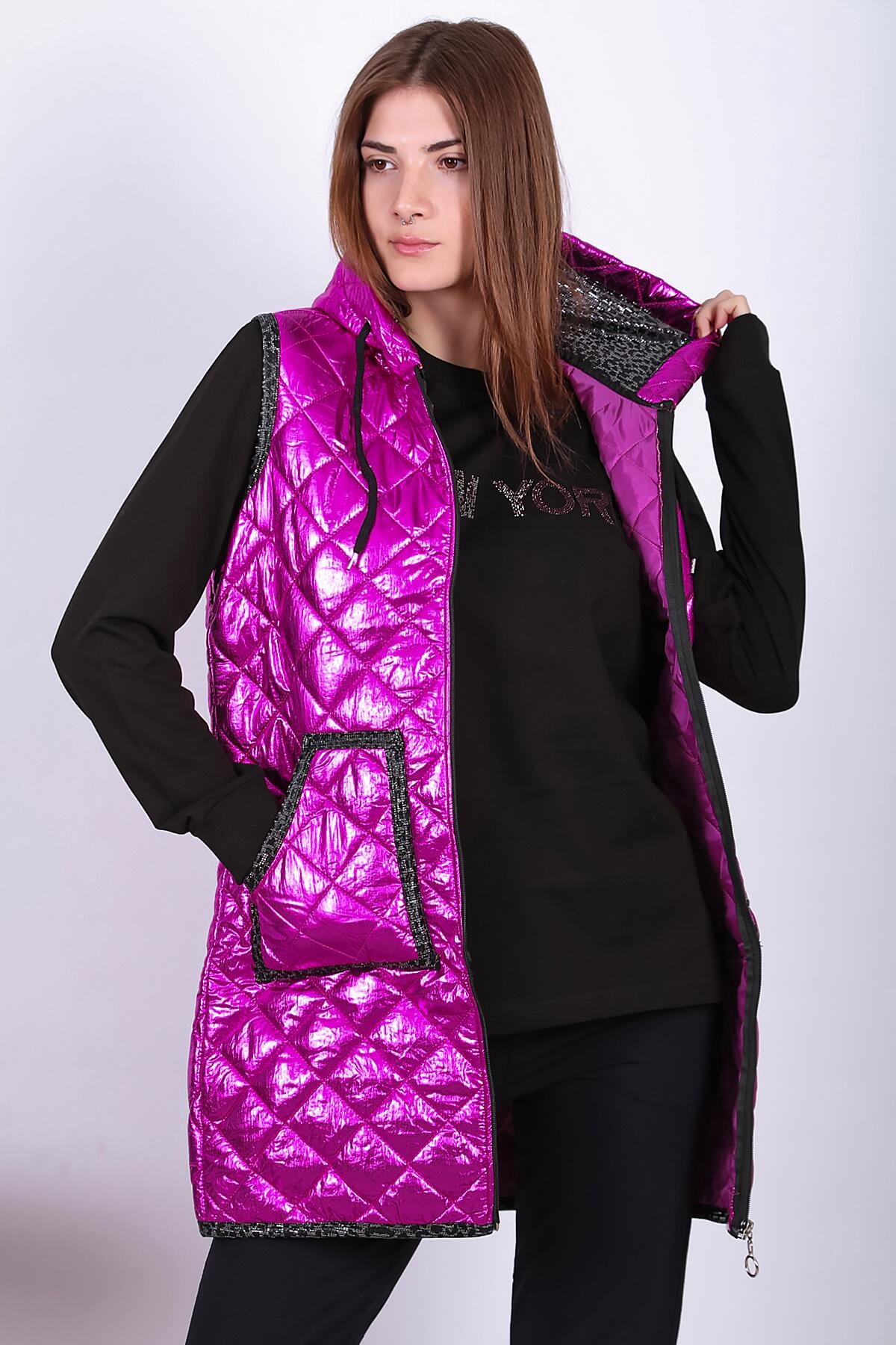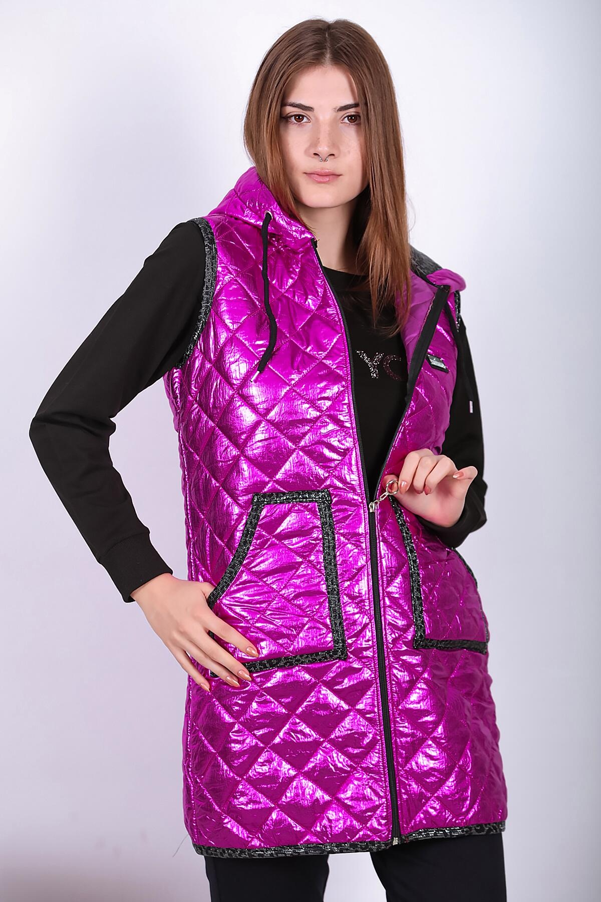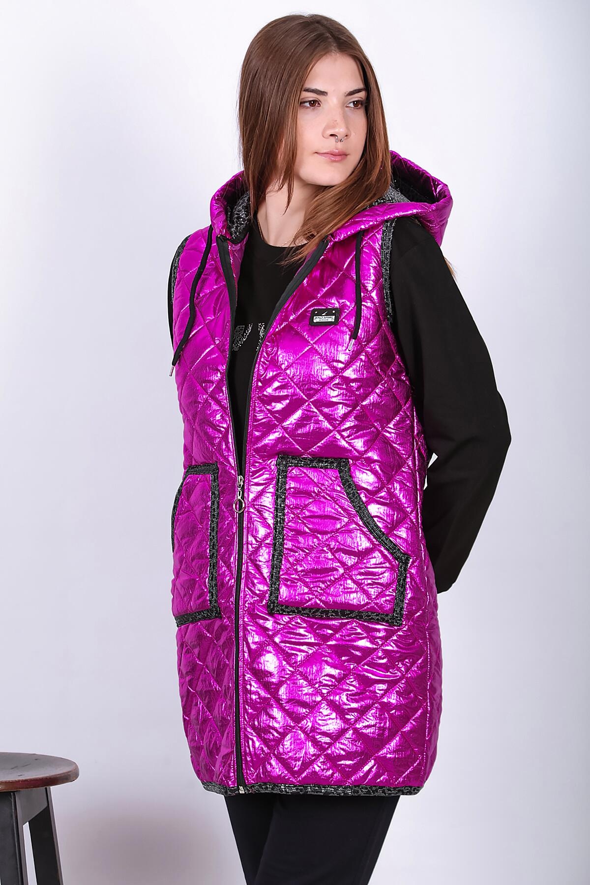 Kadın Parlak Uzun Yelek Fuşya
