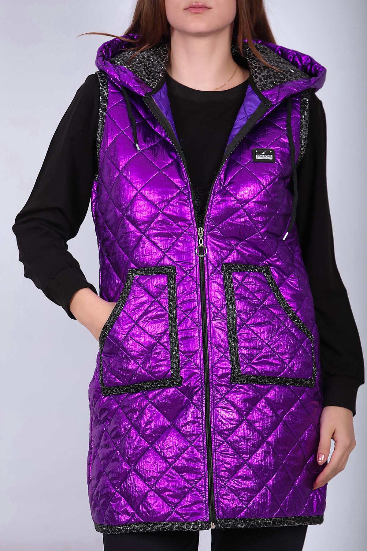 Kadın Parlak Uzun Yelek Mor