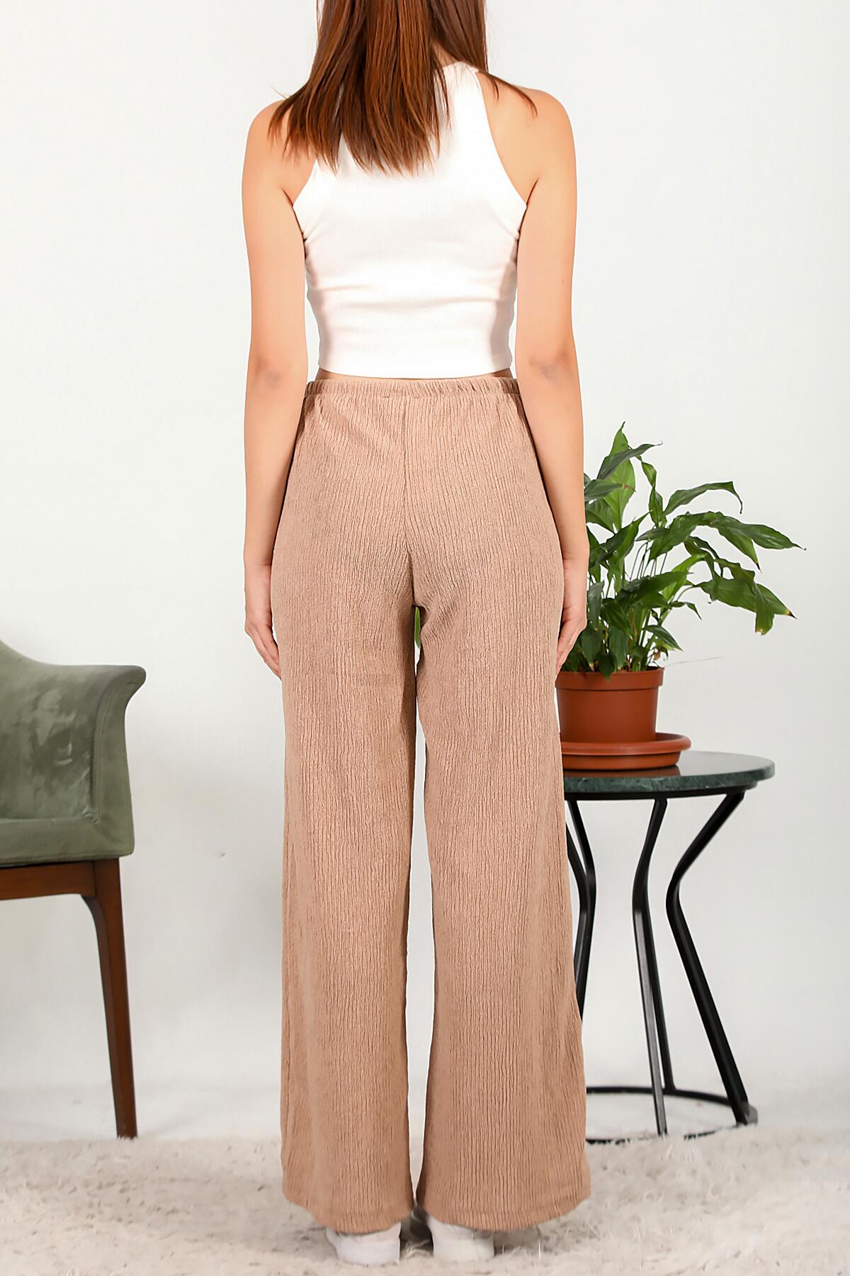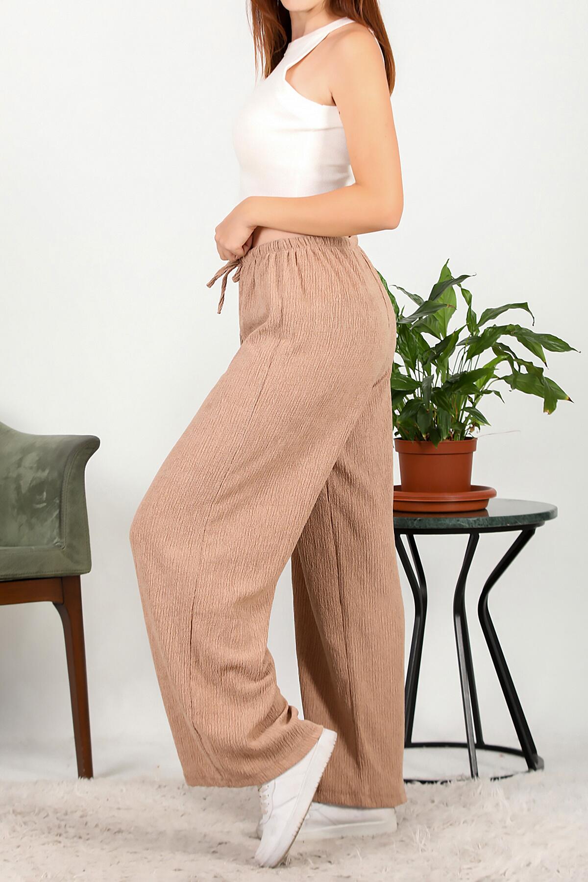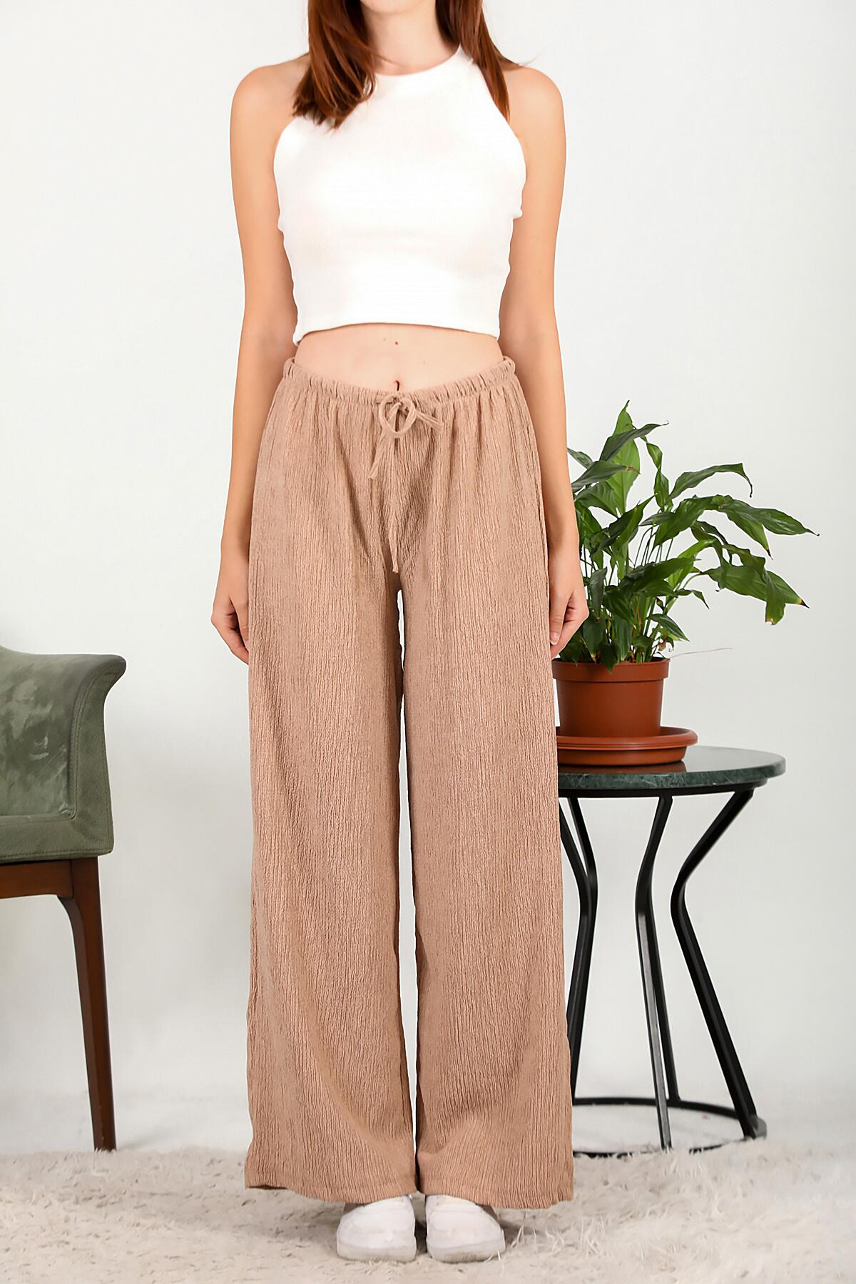 Kadın Bağcıklı Bol Paça Pantolon Bej