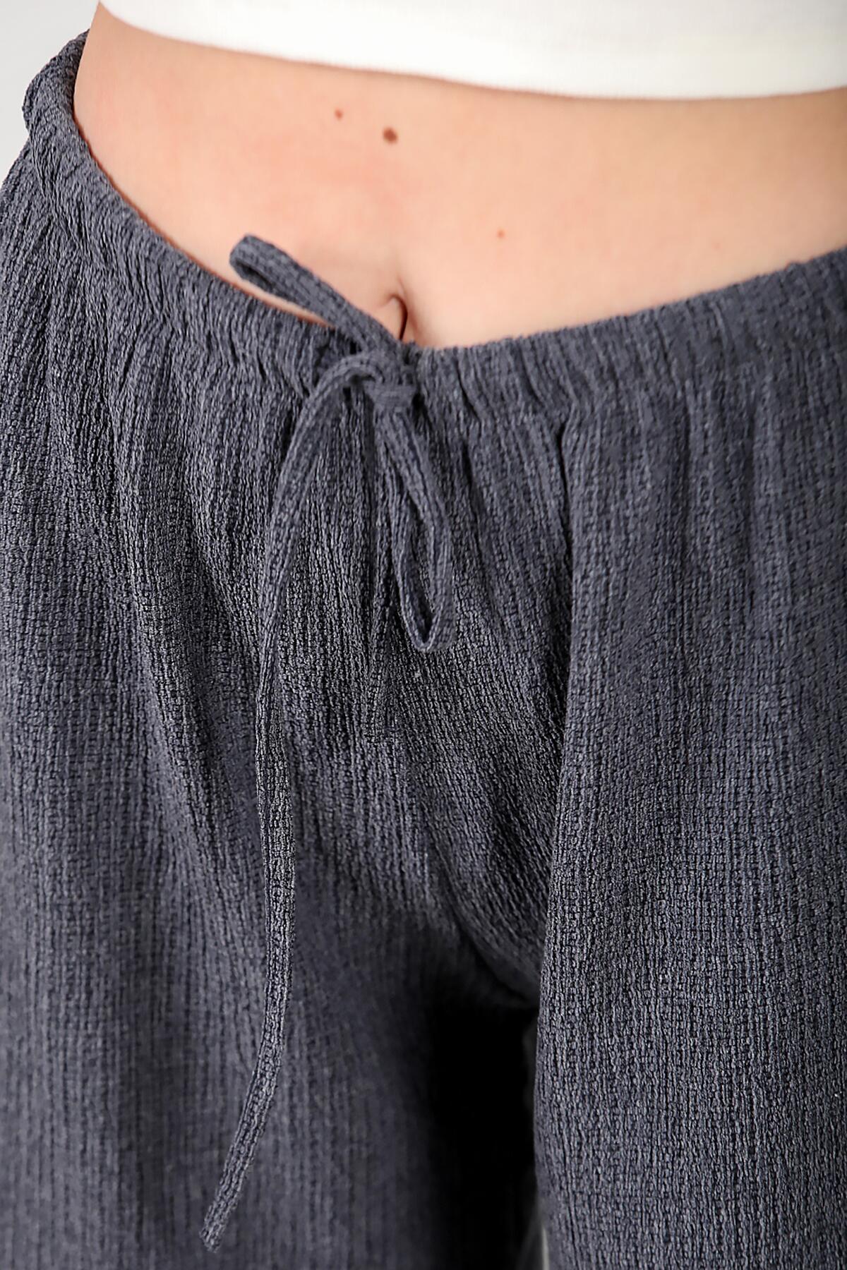 Kadın Bağcıklı Bol Paça Pantolon Lacivert