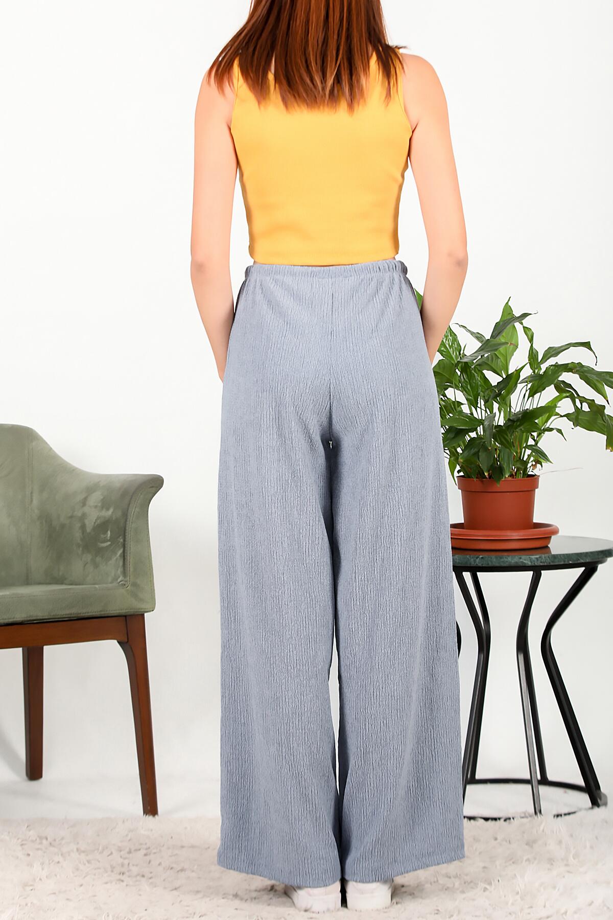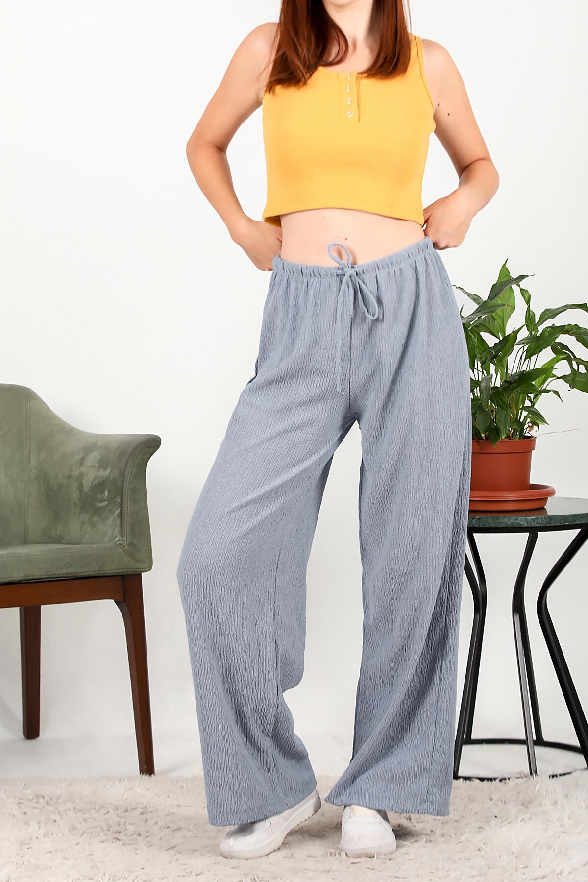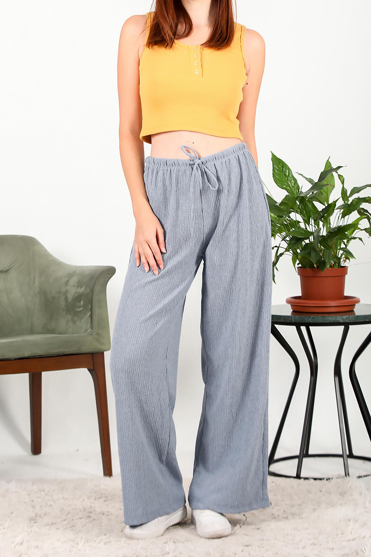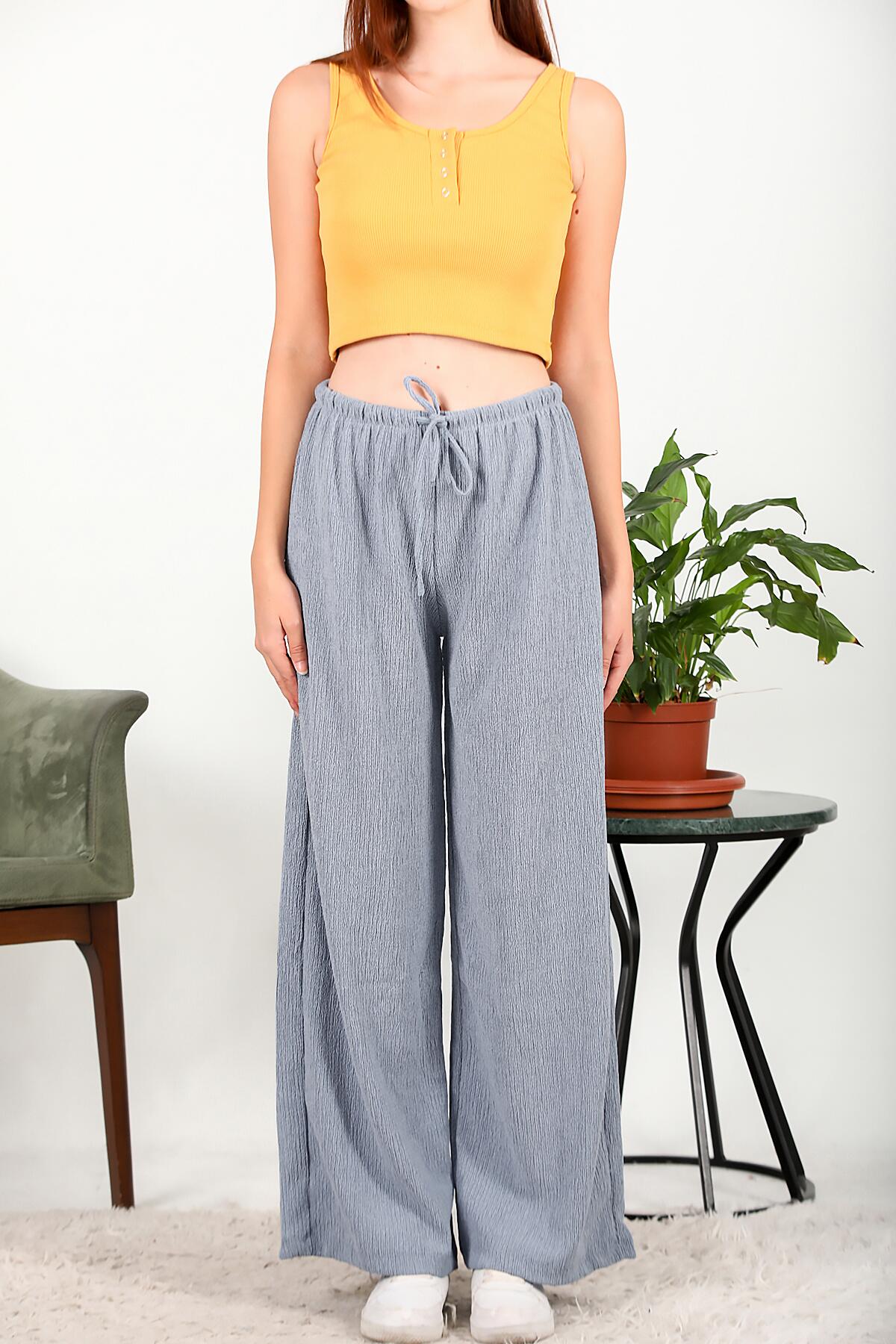 Kadın Bağcıklı Bol Paça Pantolon Mavi