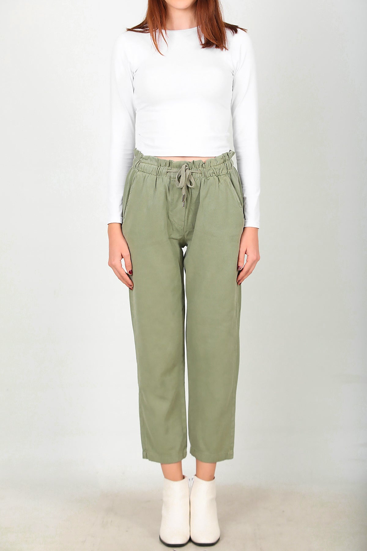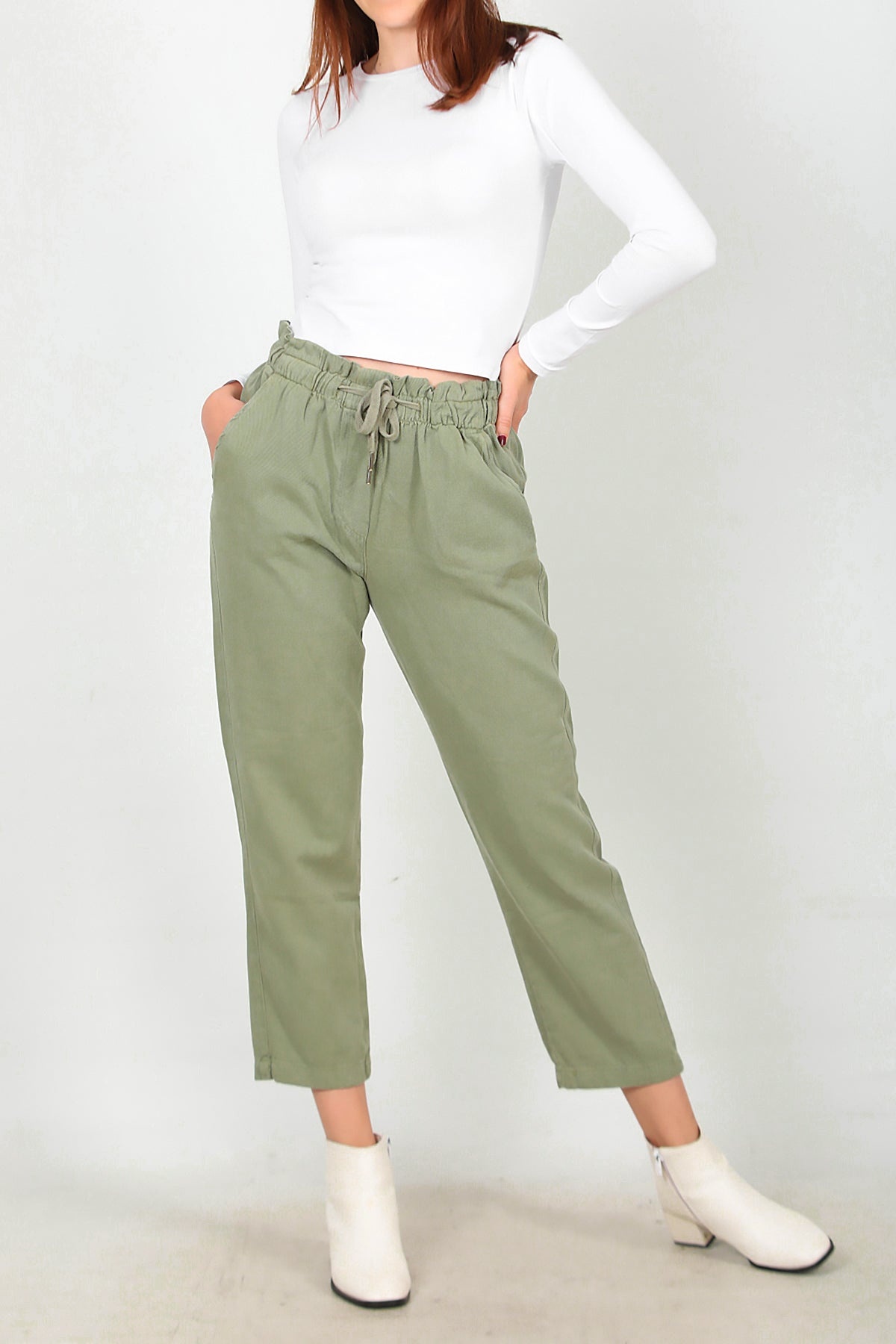 Kadın Bel Bağcıklı Pantolon Haki