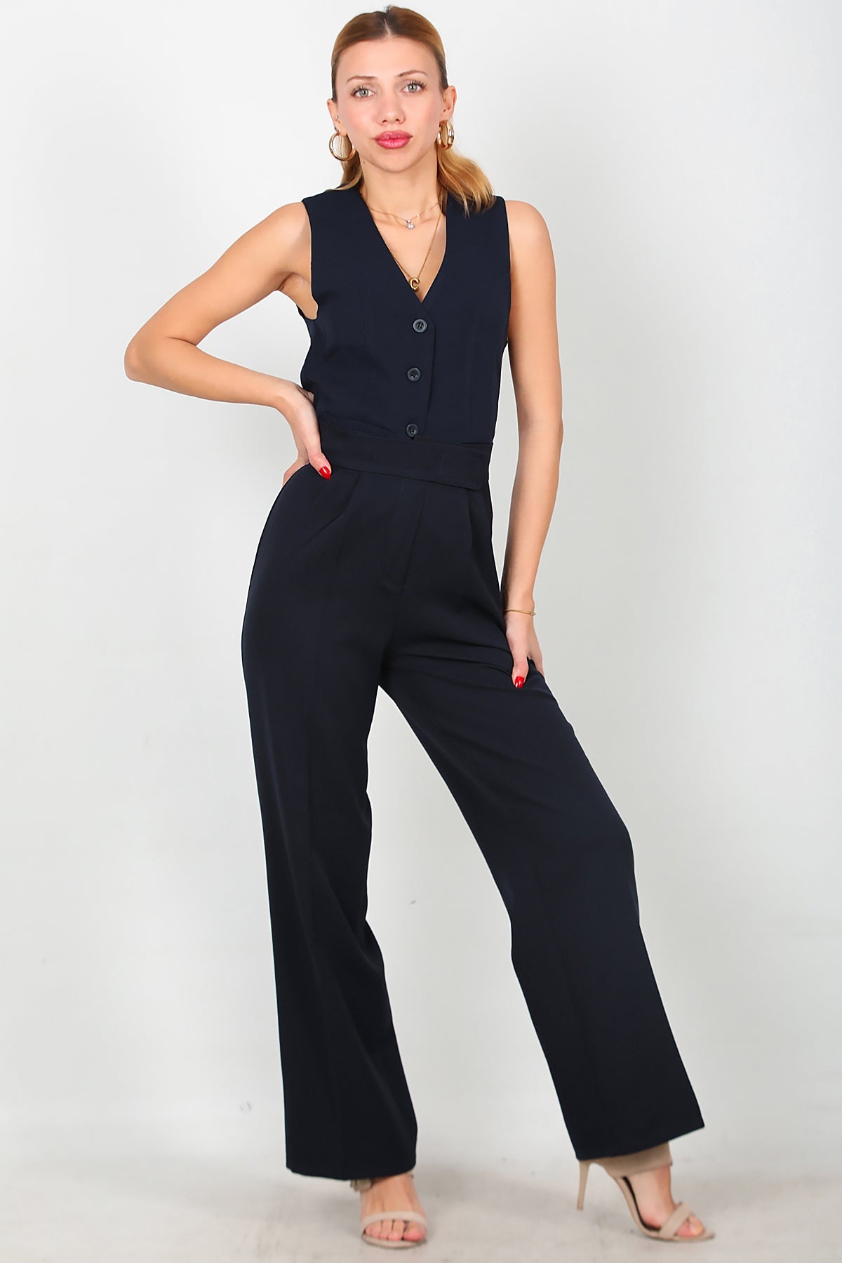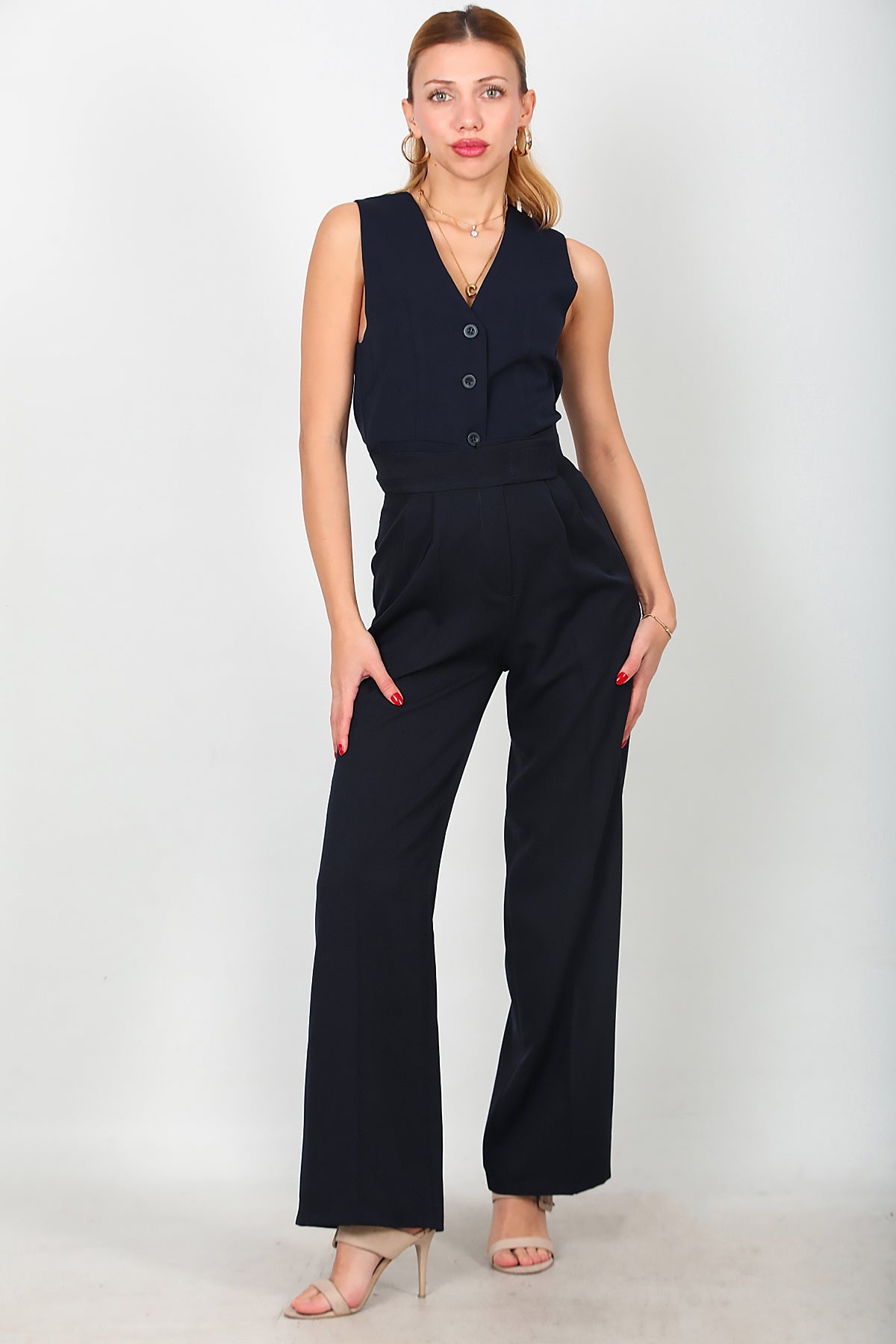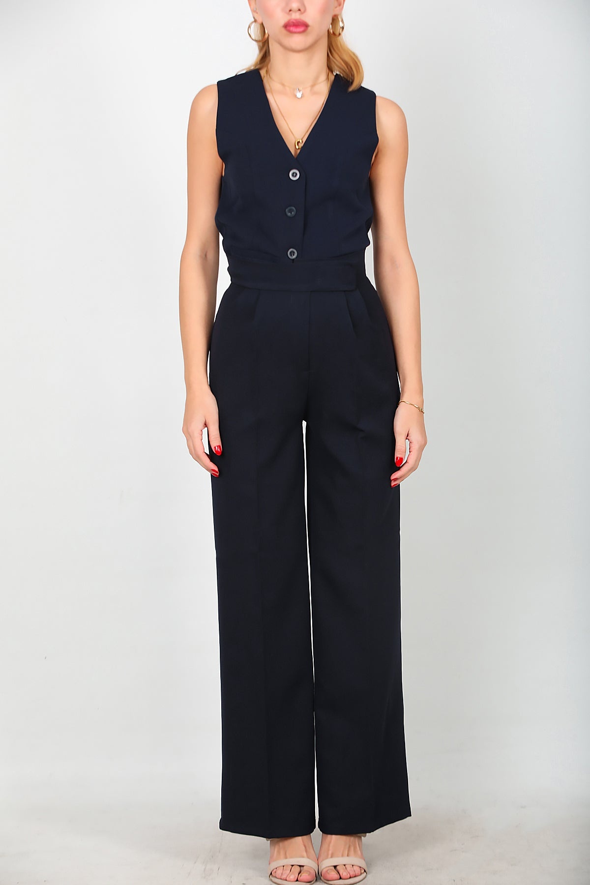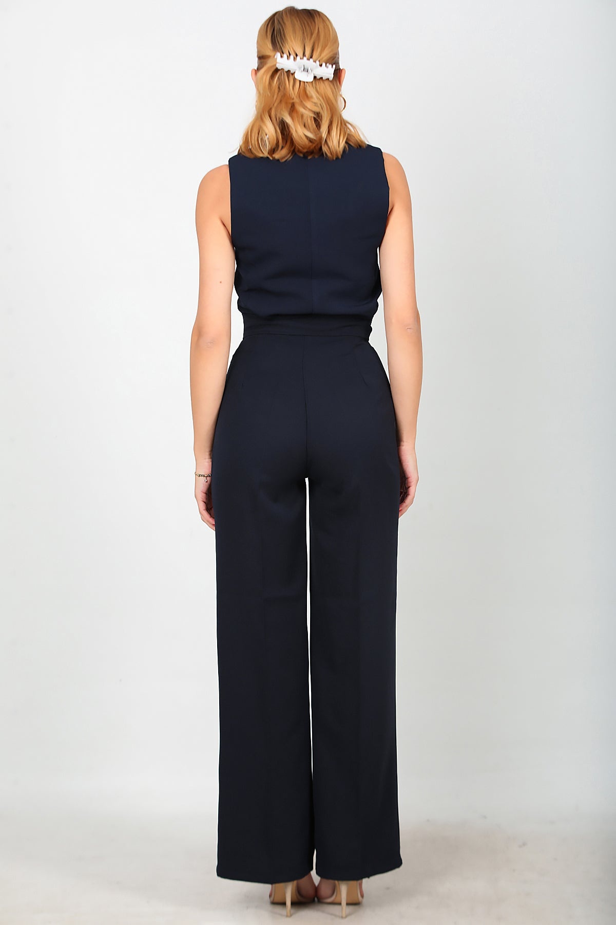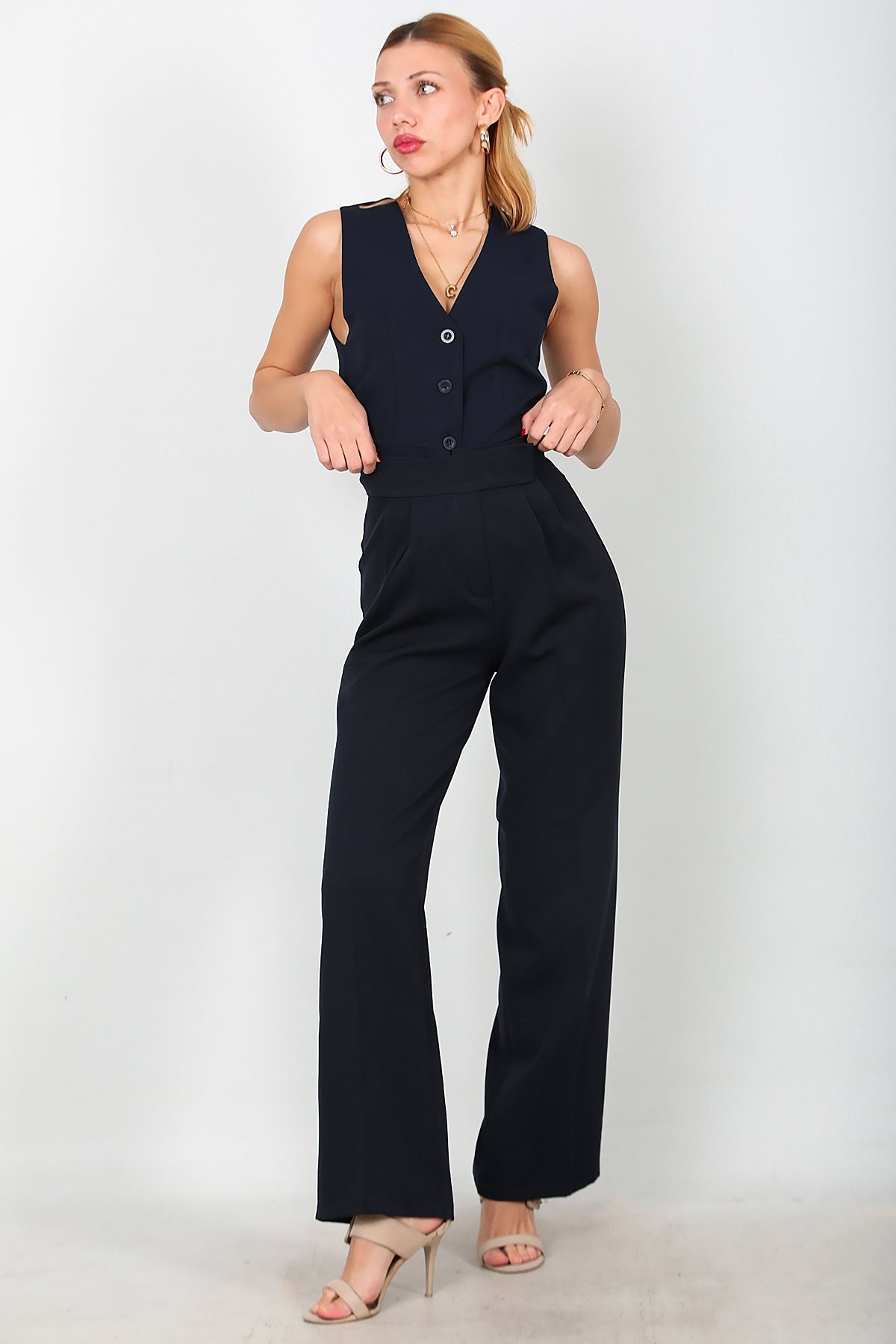 Kadın Bel Cırtlı Geniş Pantolon Lacivert Lacivert