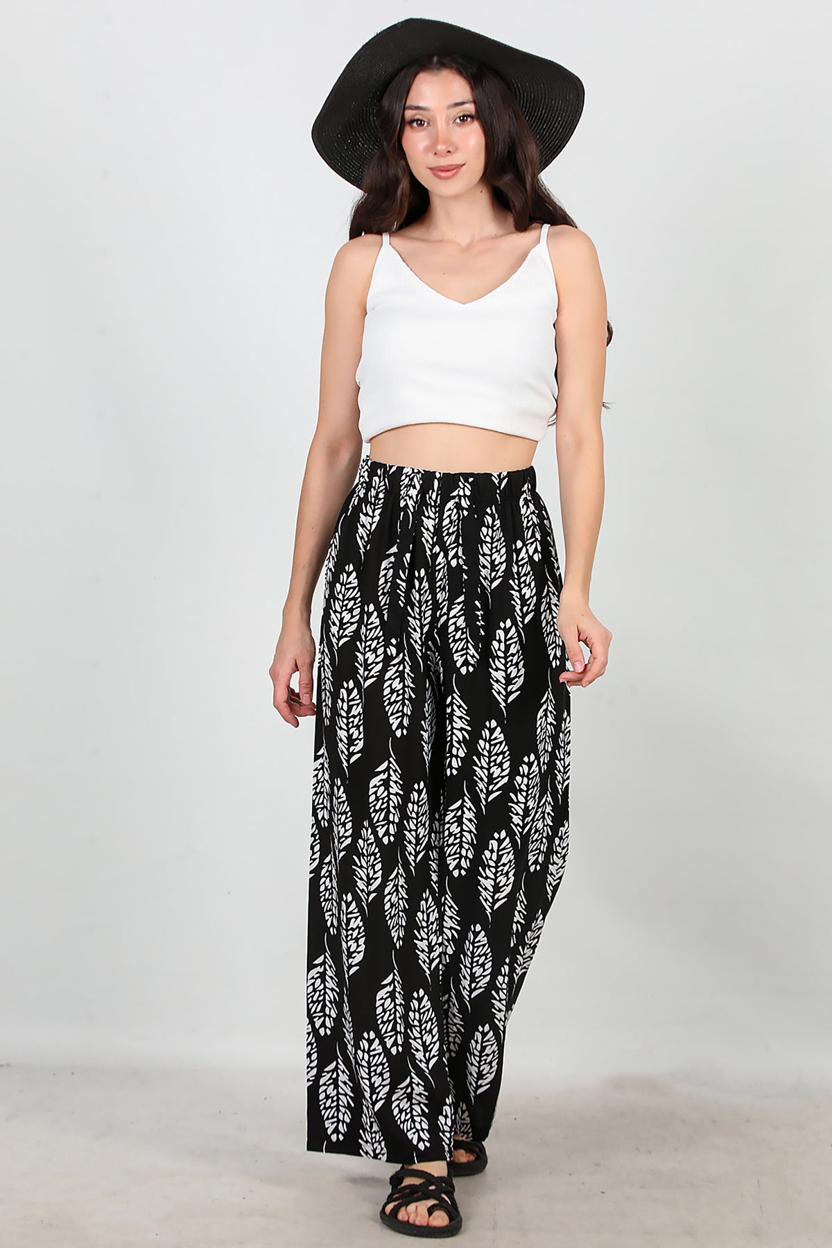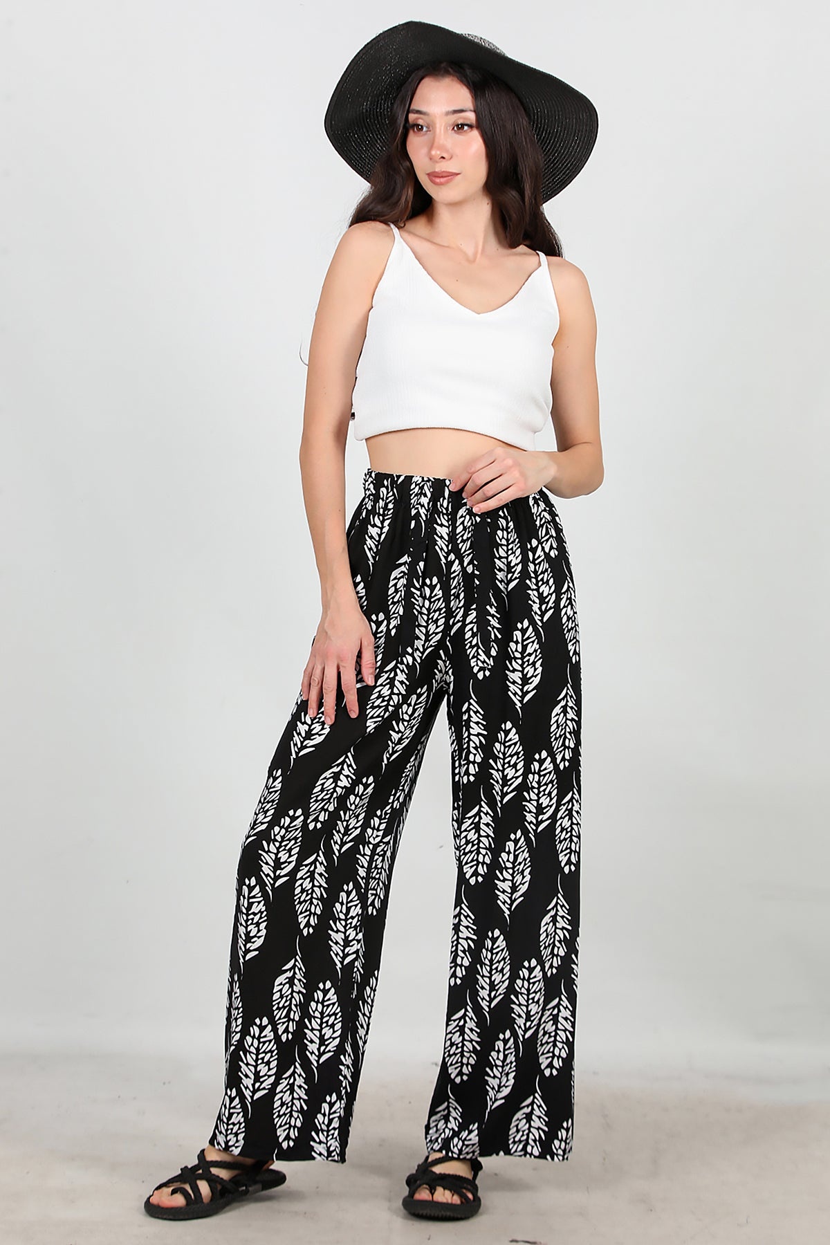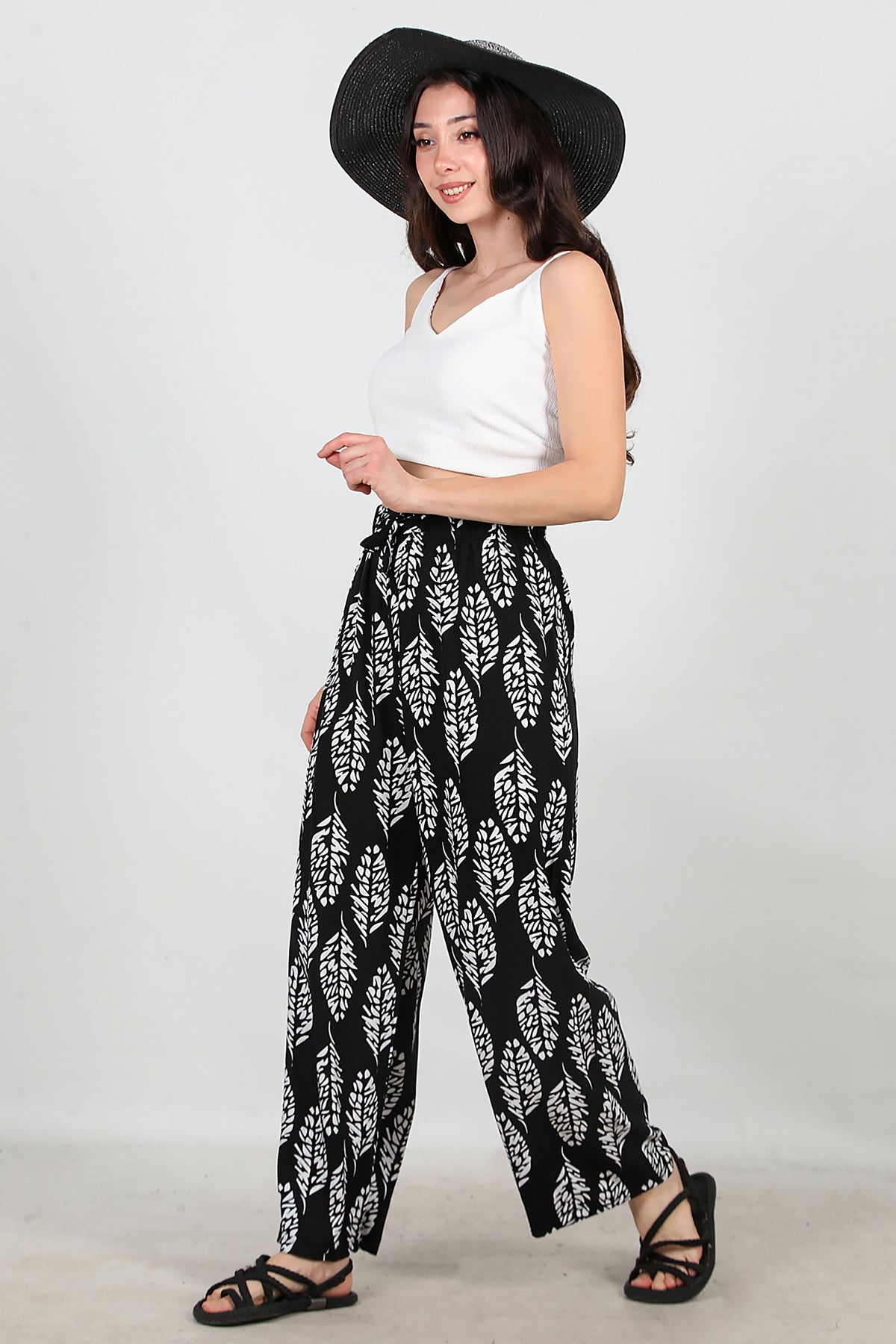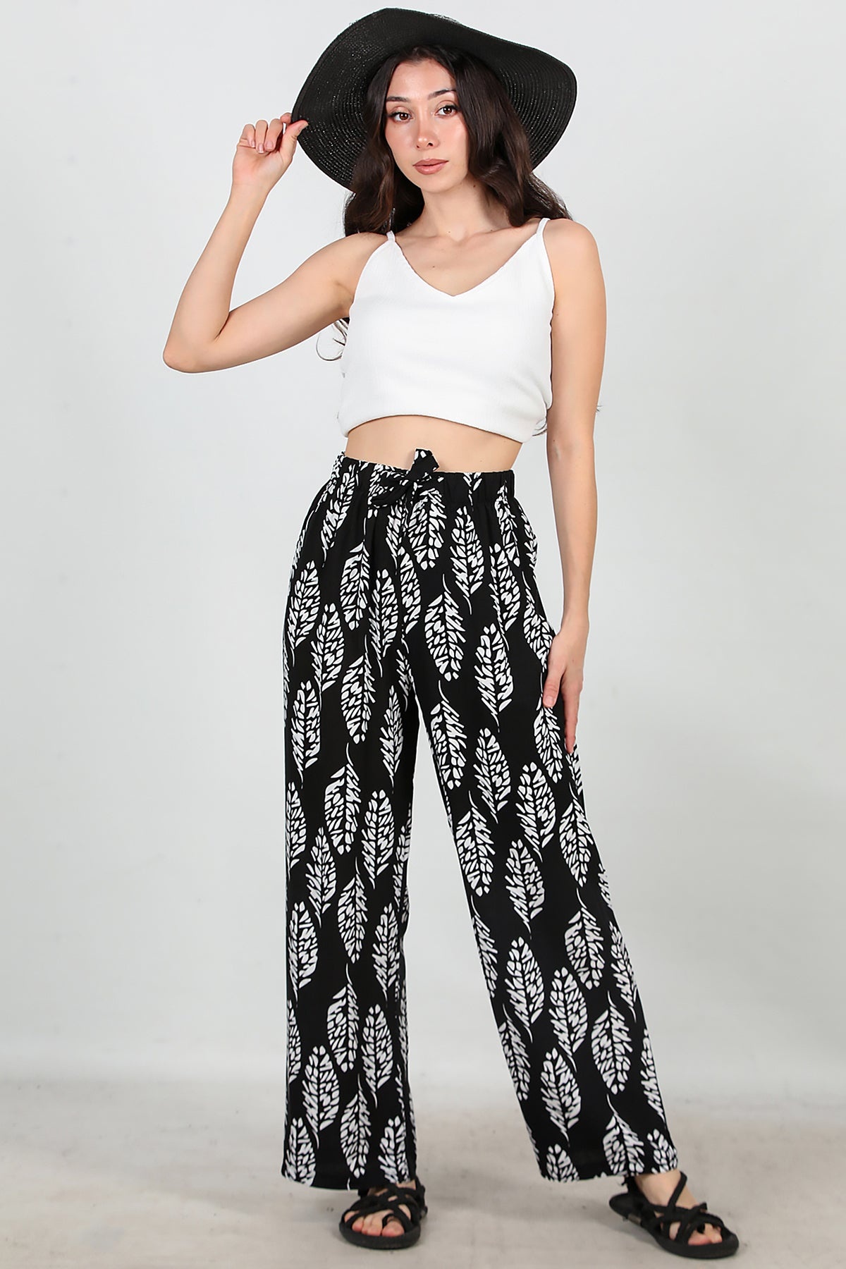 Kadın Bol Paça Desenli Pantolon Çok Renkli