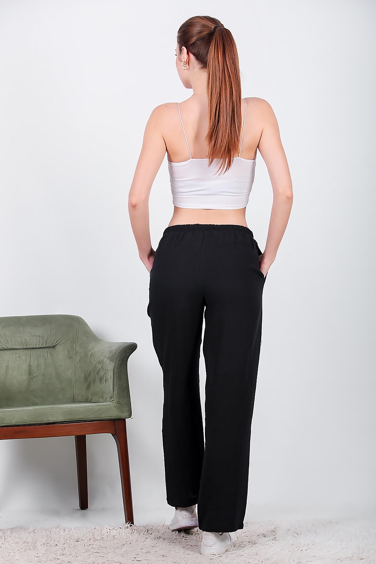 Kadın Bol Paça Keten Pantolon Siyah Siyah