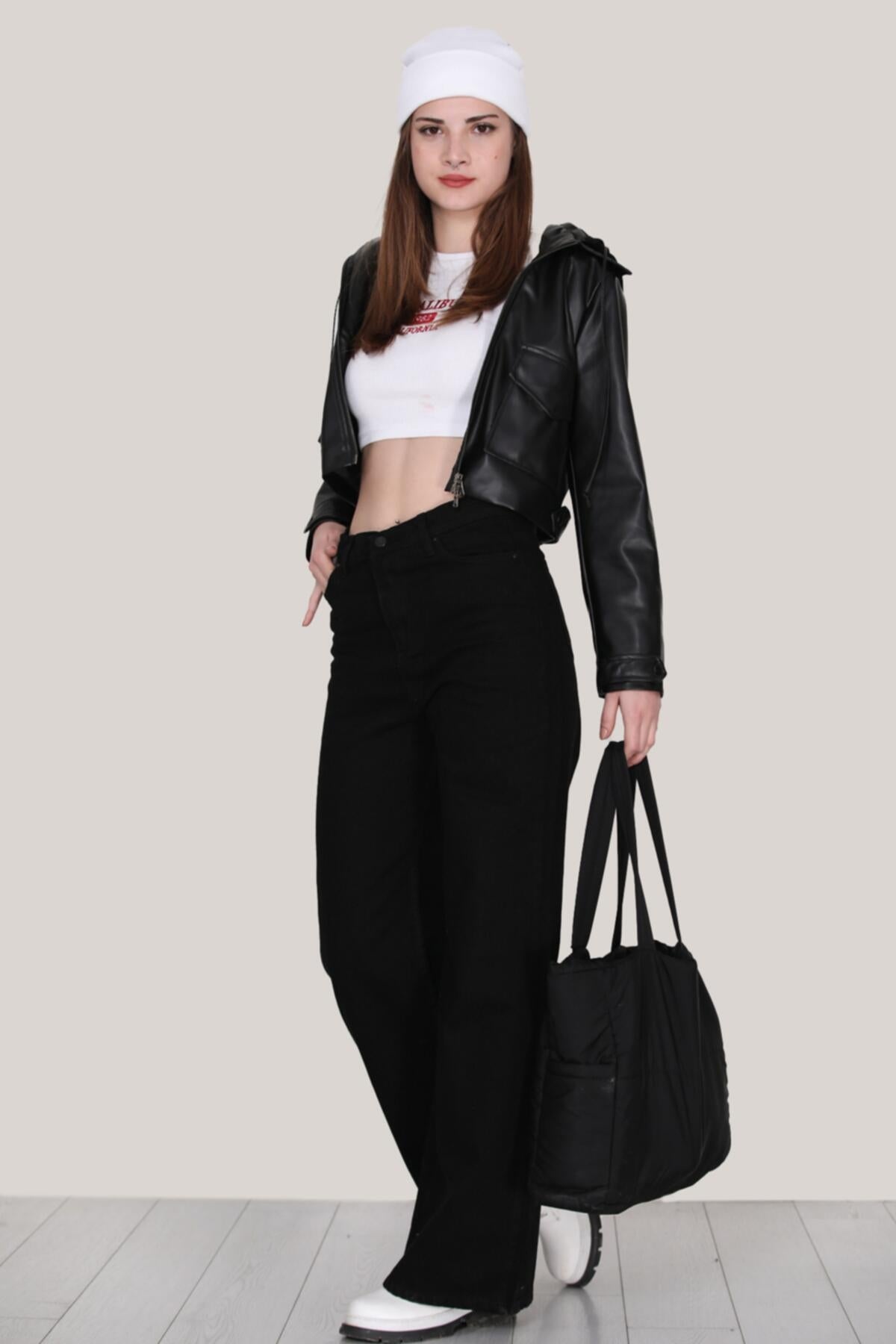 Kadın Kapşonlu Kısa Şişme Mont