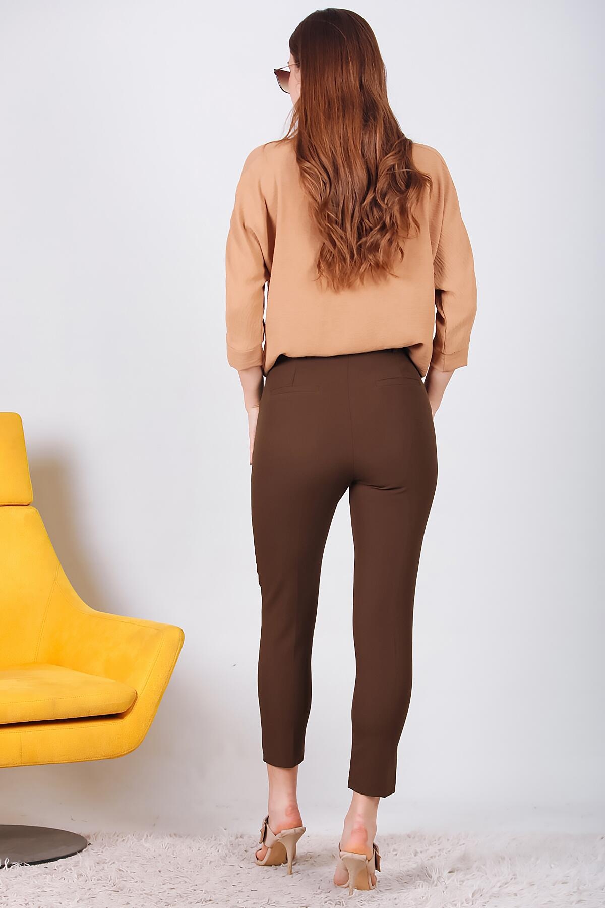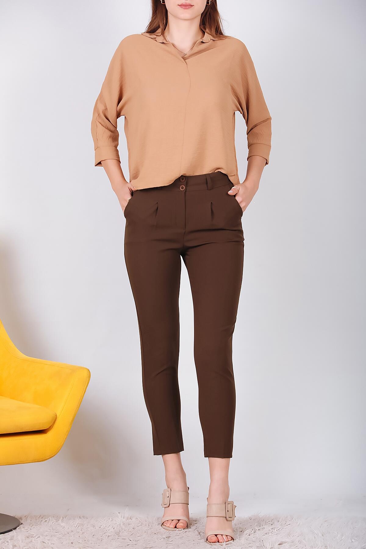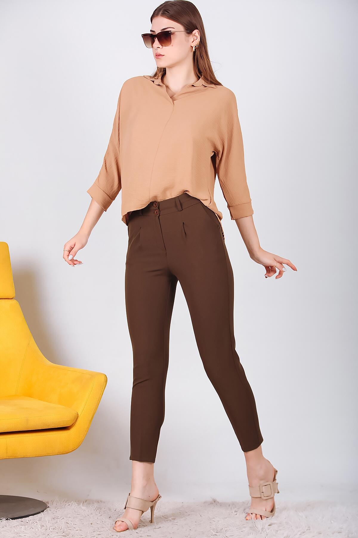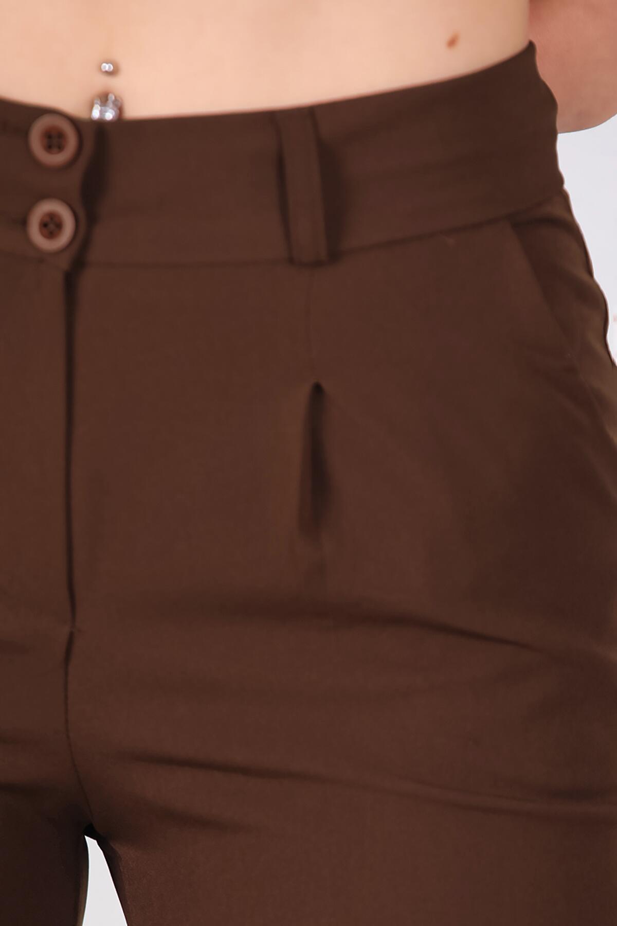 Kadın Çift Düğmeli Pantolon Kahverengi