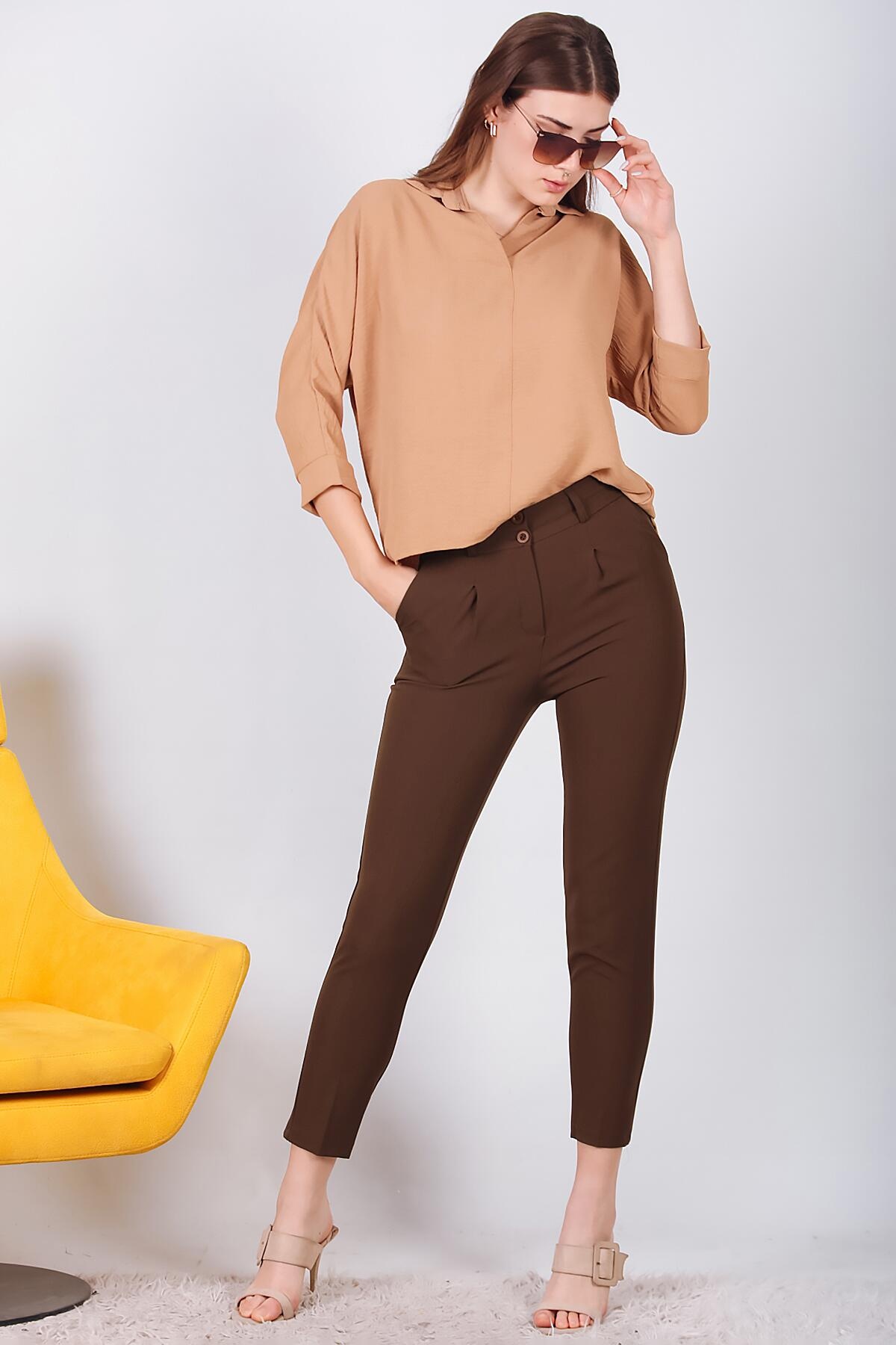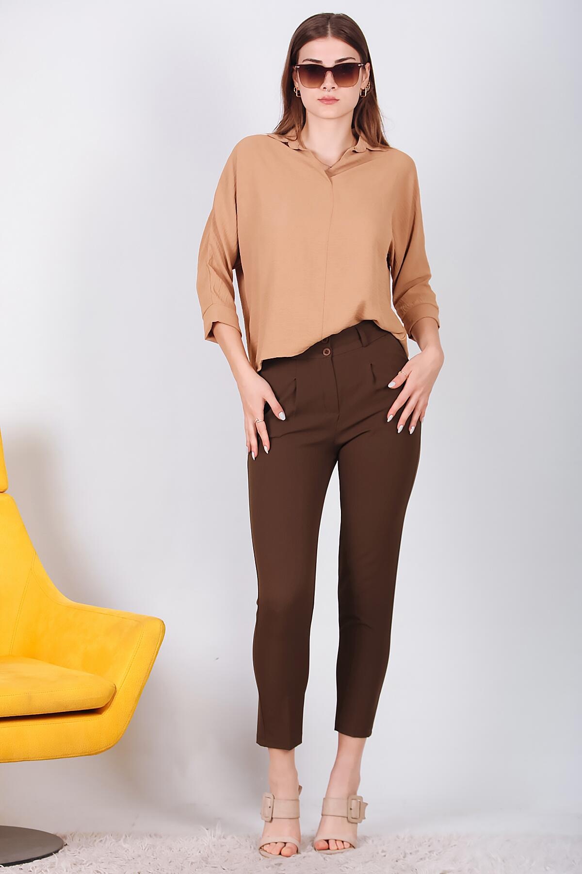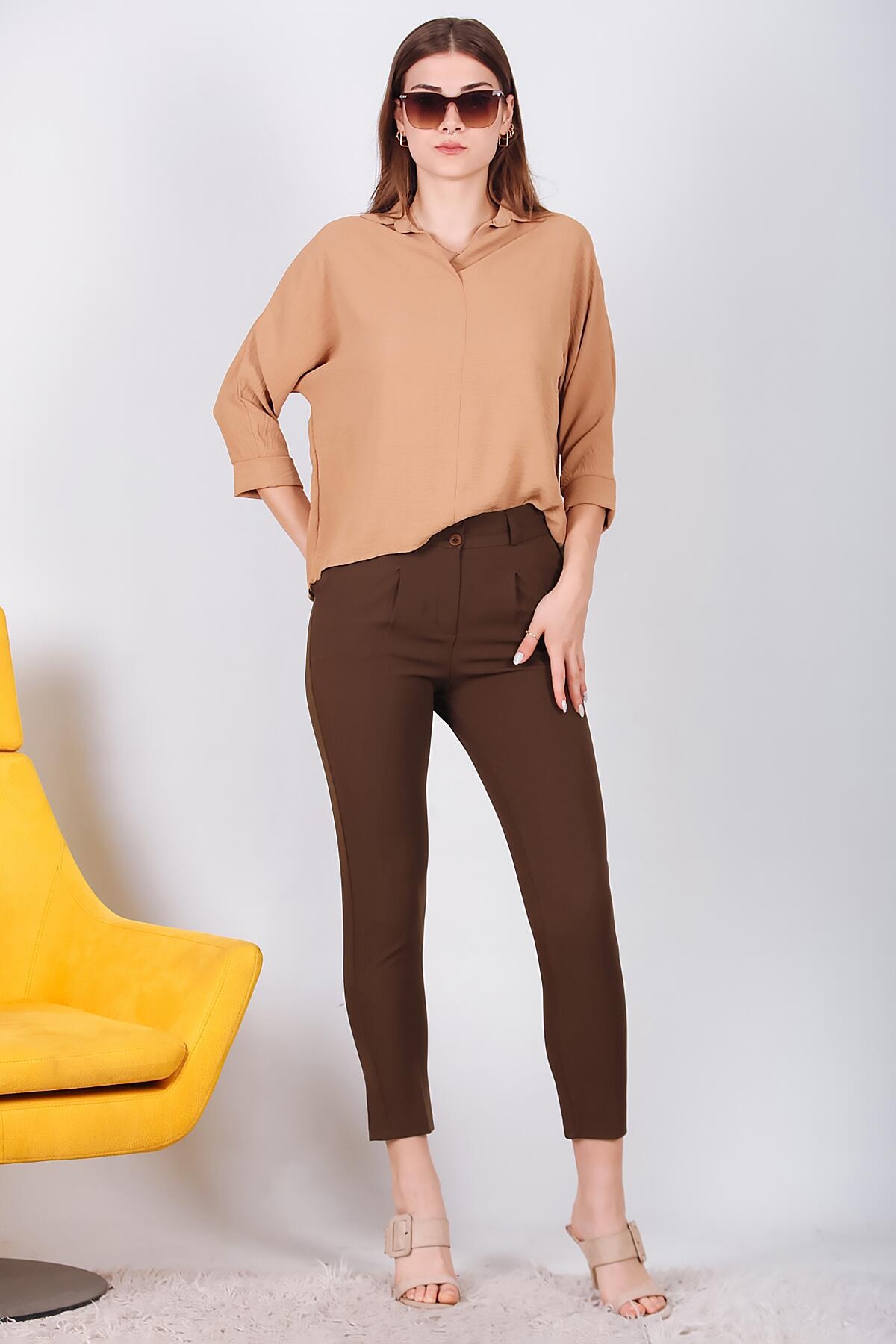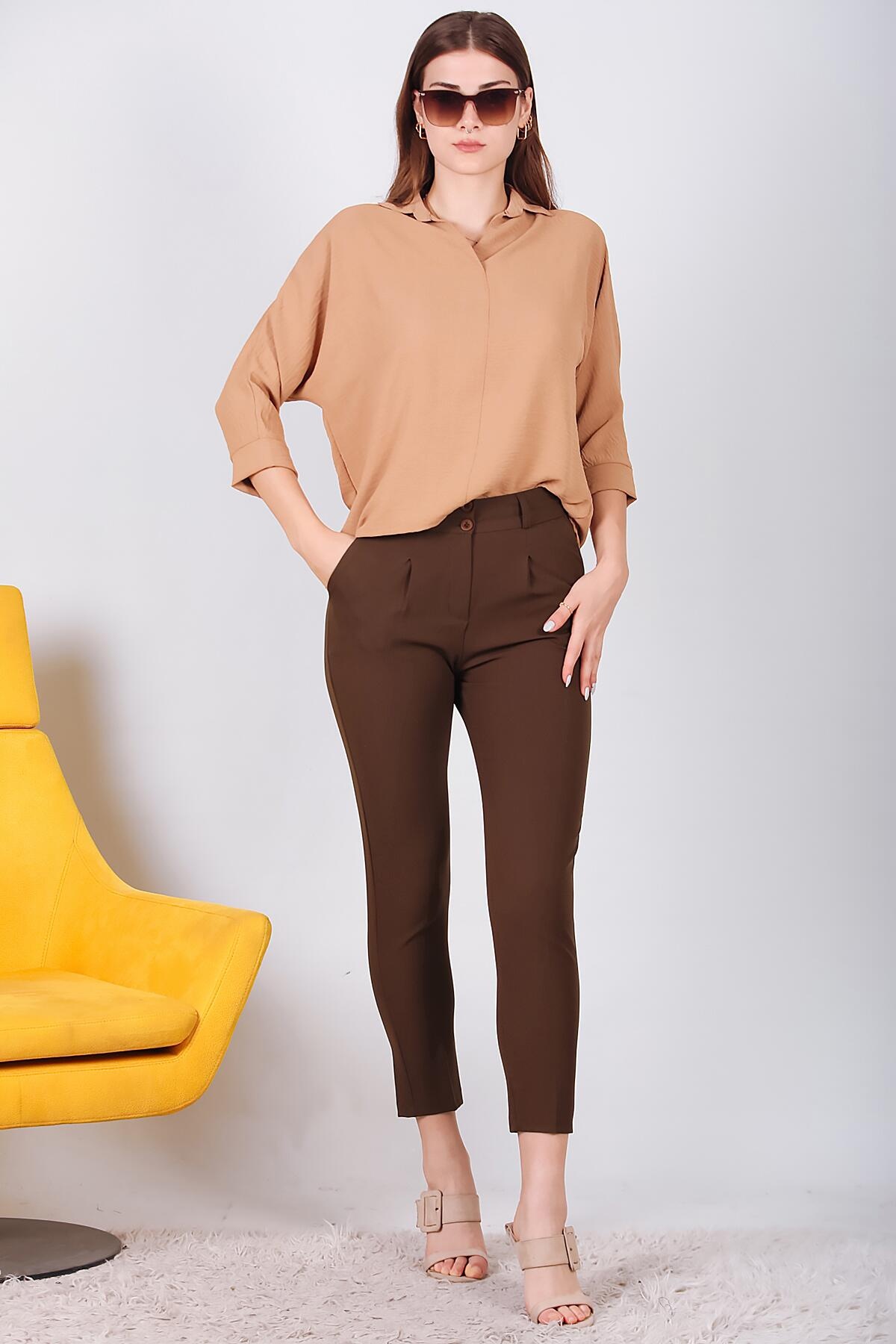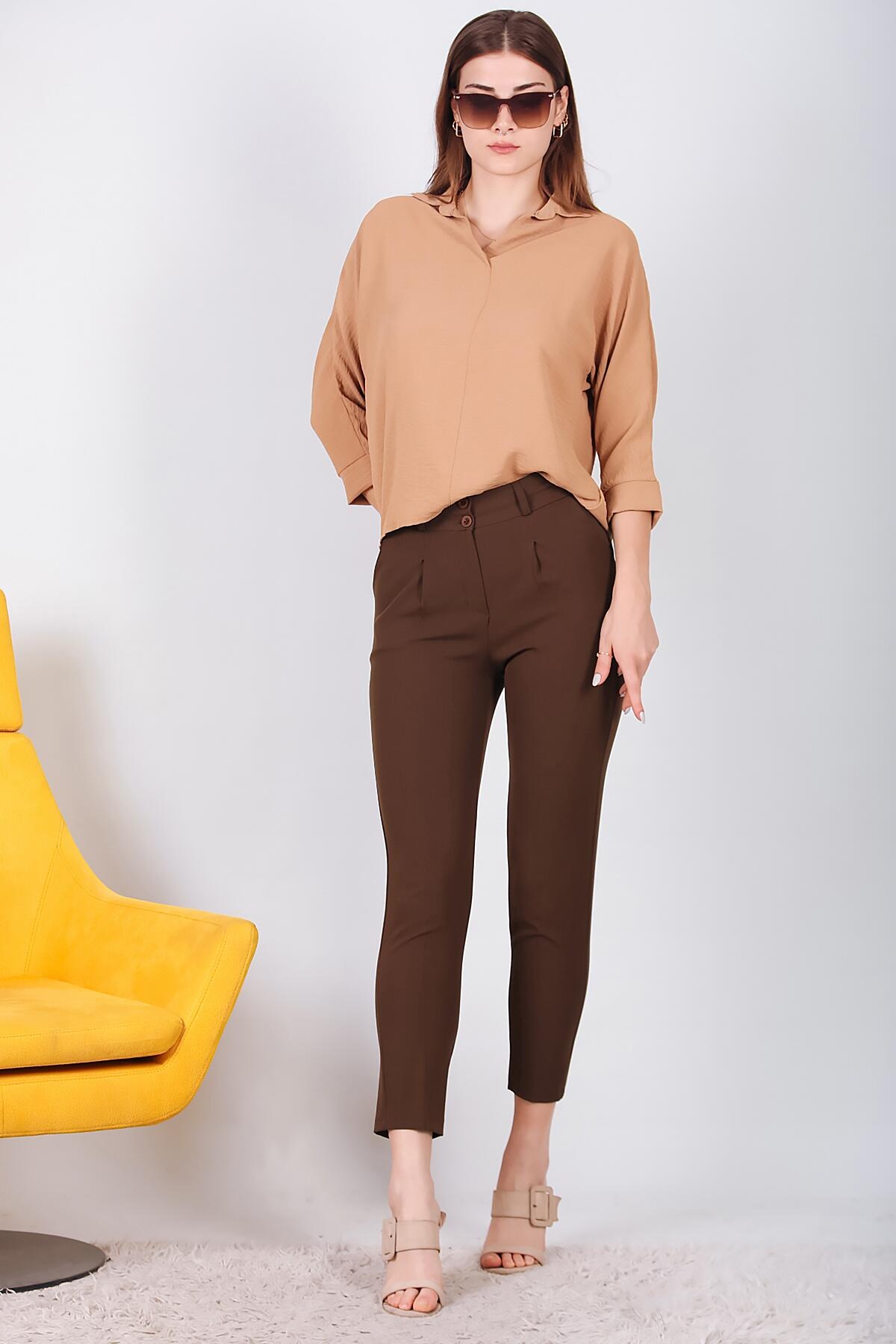 Kadın Çift Düğmeli Pantolon Kahverengi