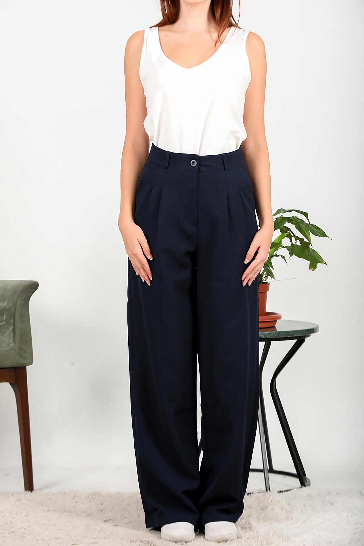 Kadın Çift Pileli Palazzo Pantolon Lacivert