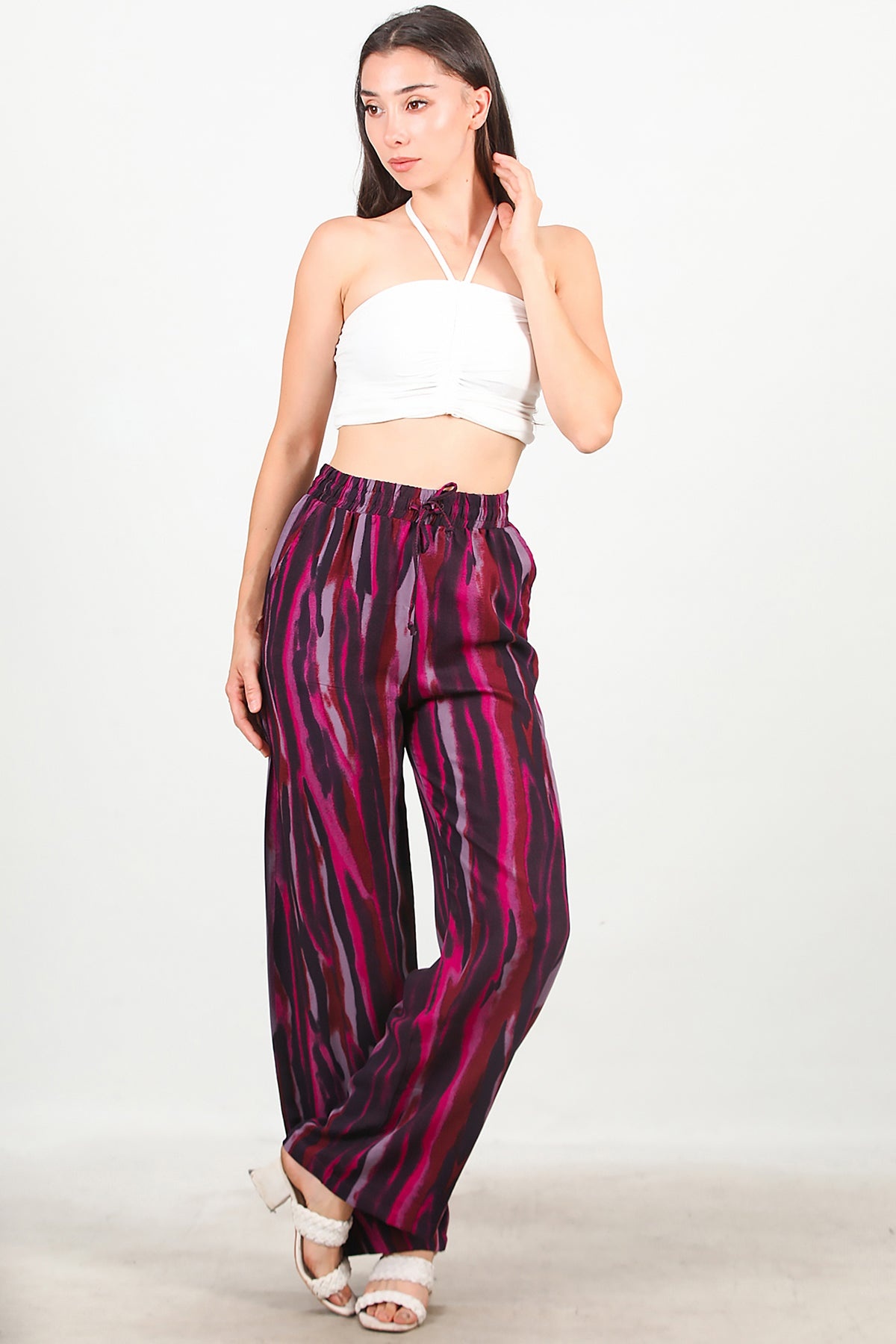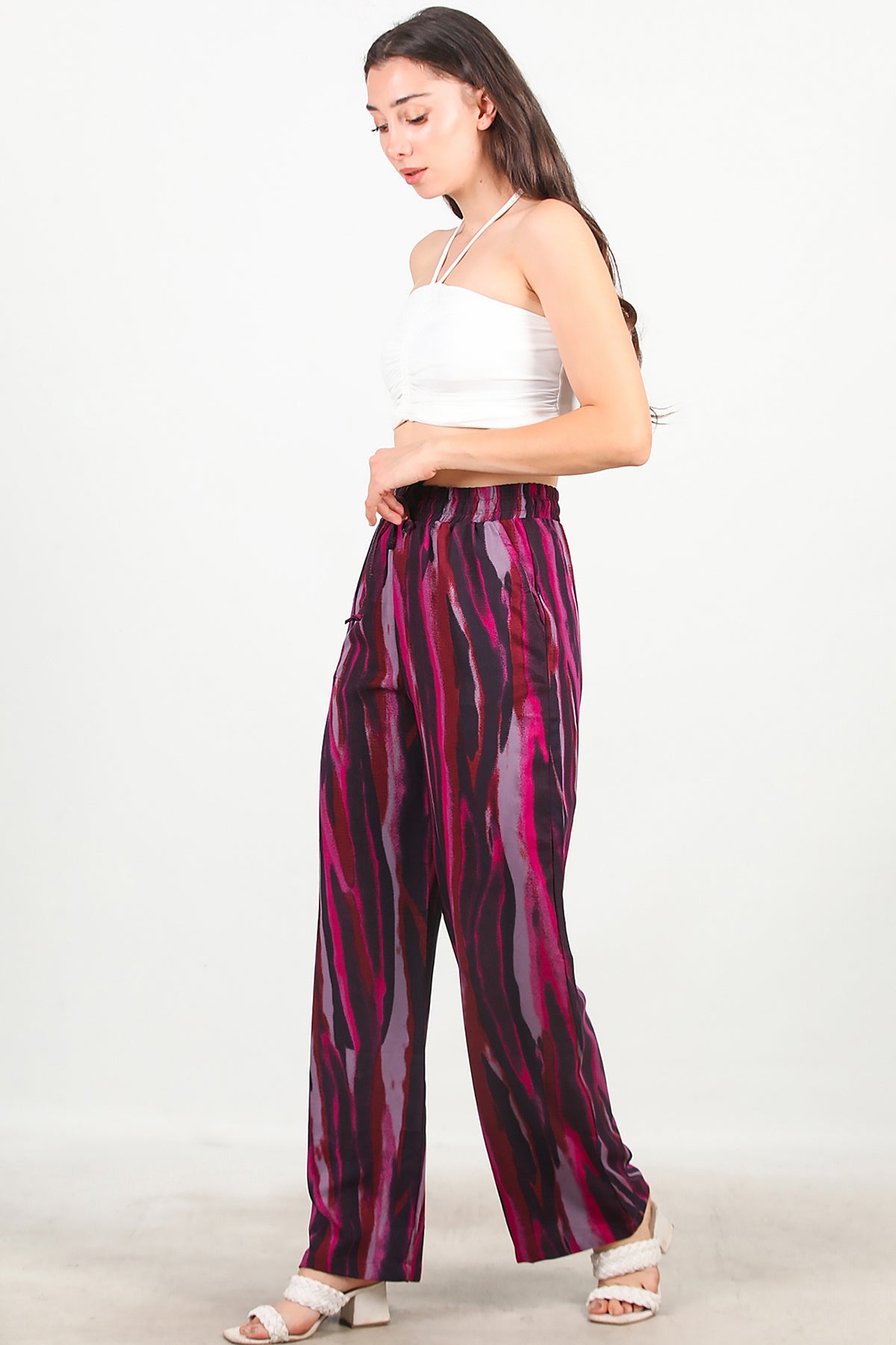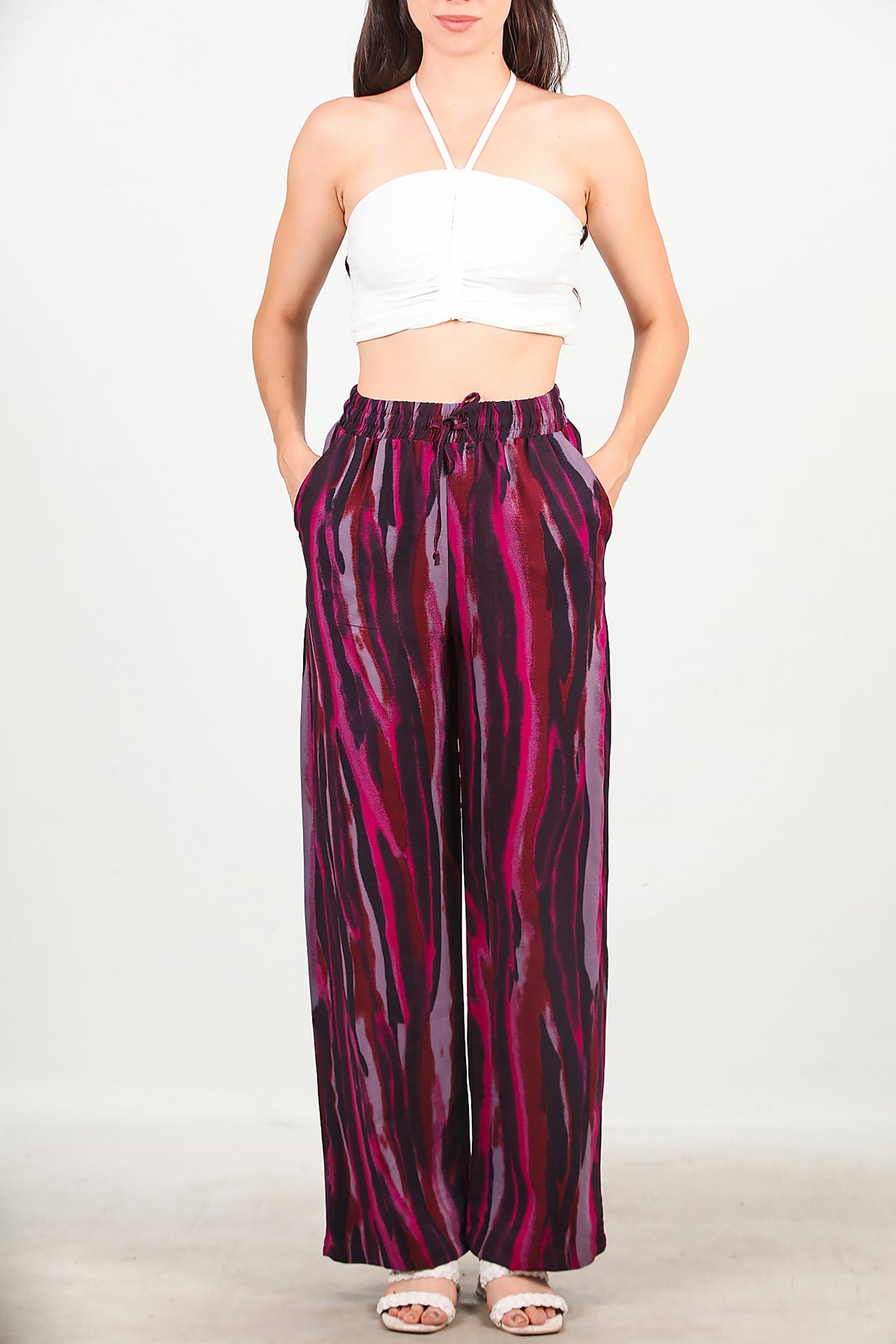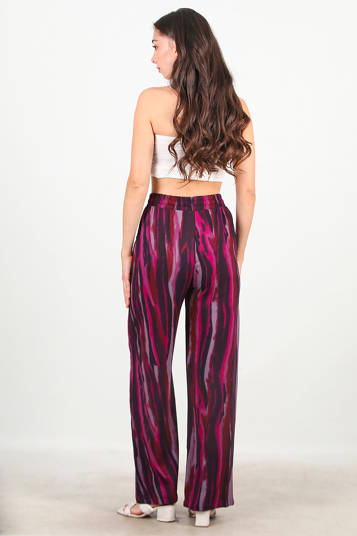 Kadın Desenli Bol Paça Pantolon Mor