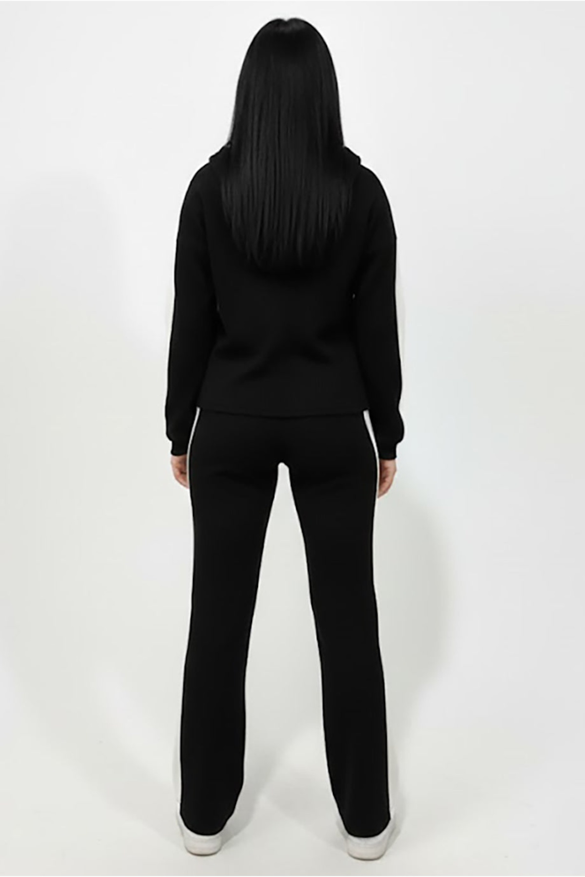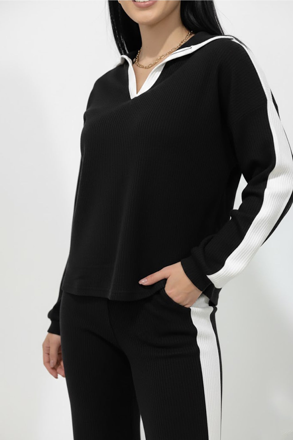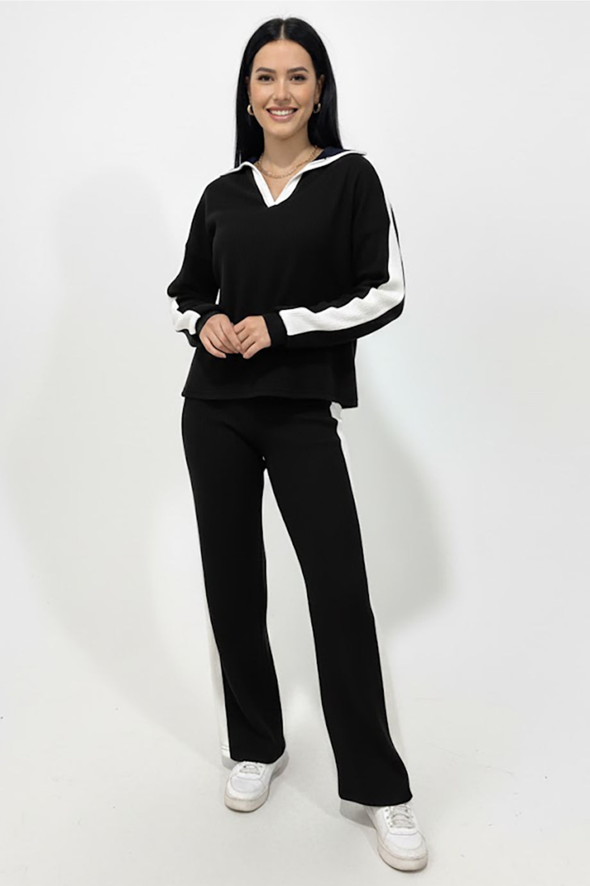 Kadın Garnili Önü V Yakalı Takım Siyah