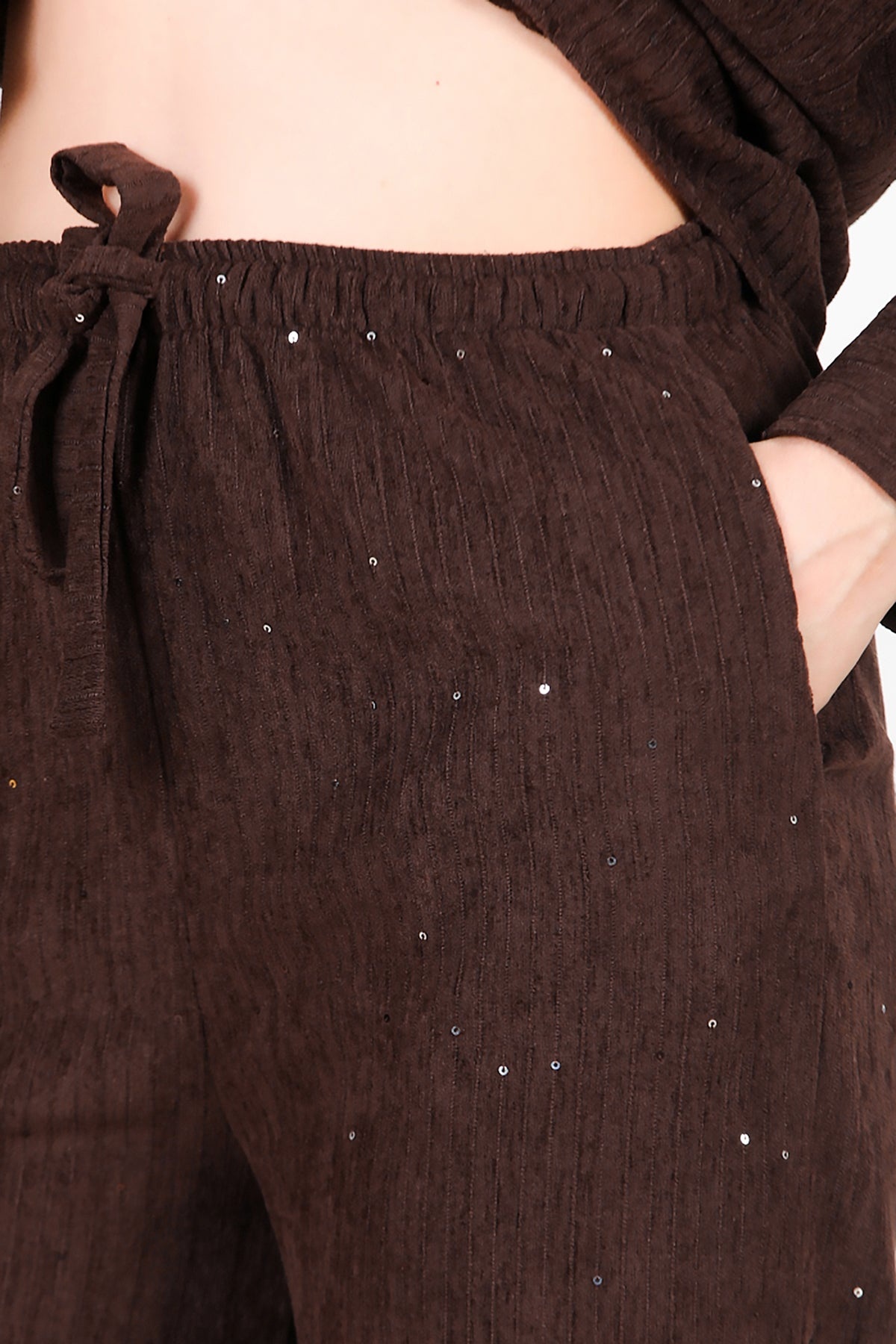 Kadın Kadife Pullu Pantolon Kahverengi