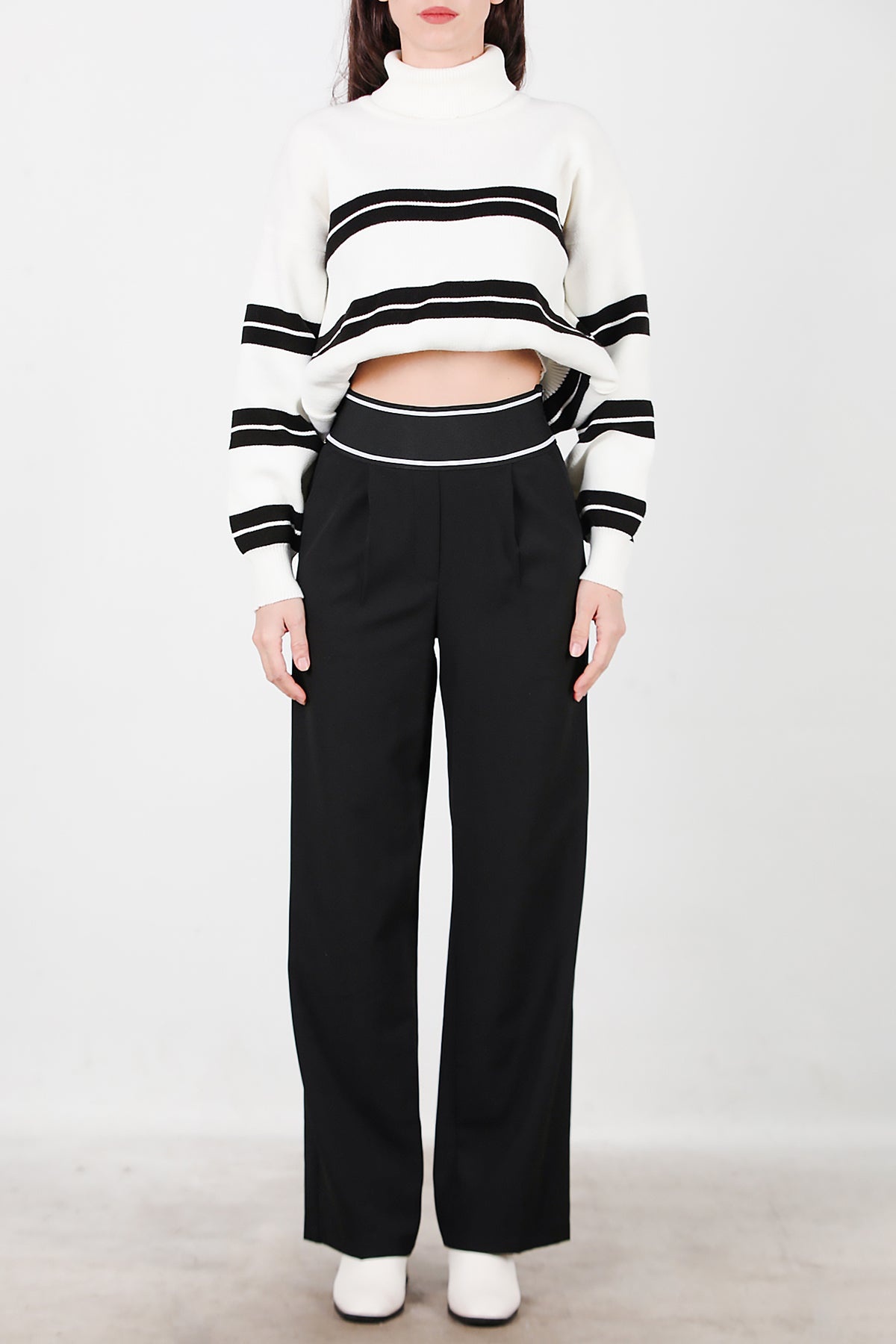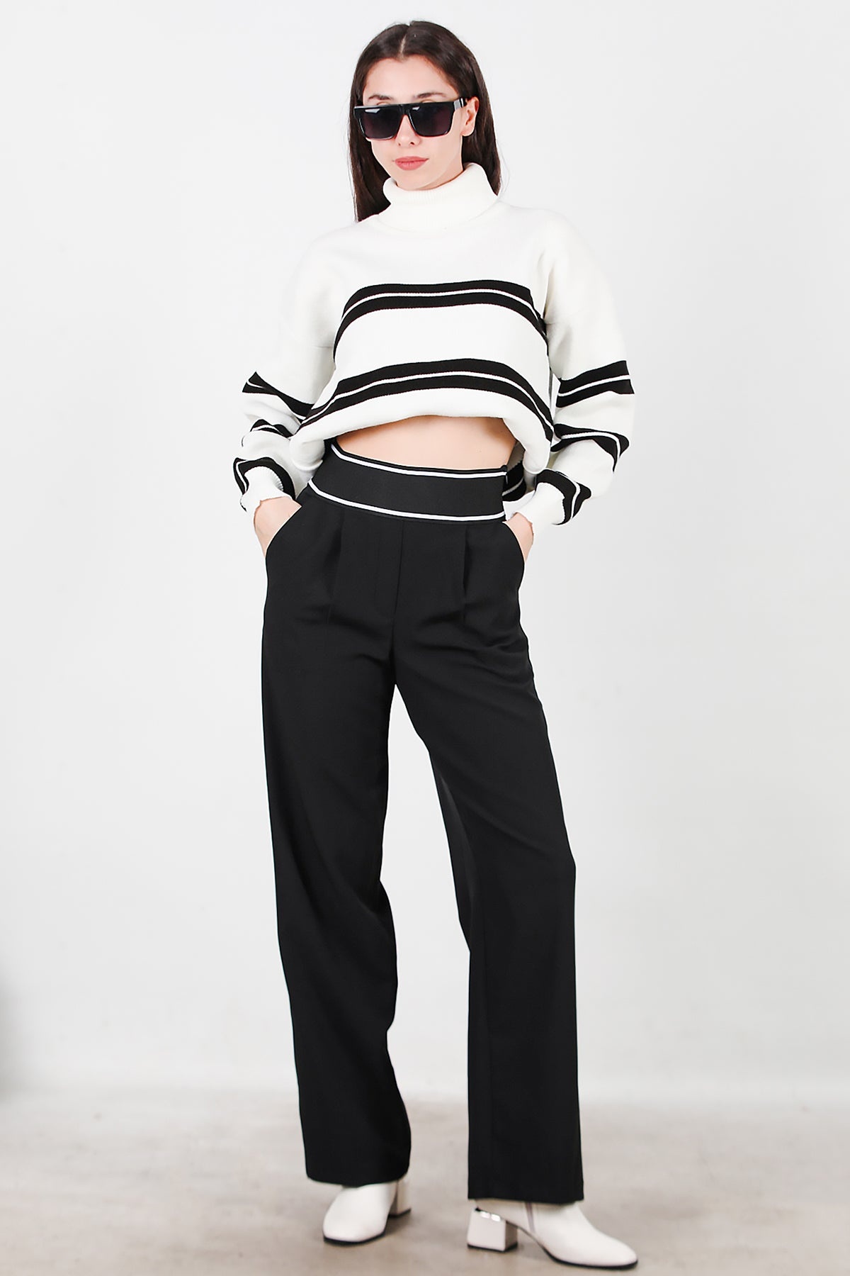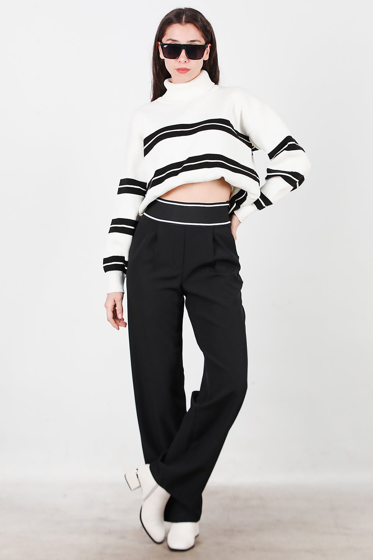 Kadın Kemeri Kalın Lastik Pantolon Siyah