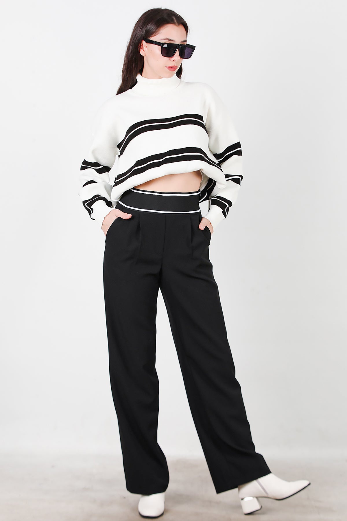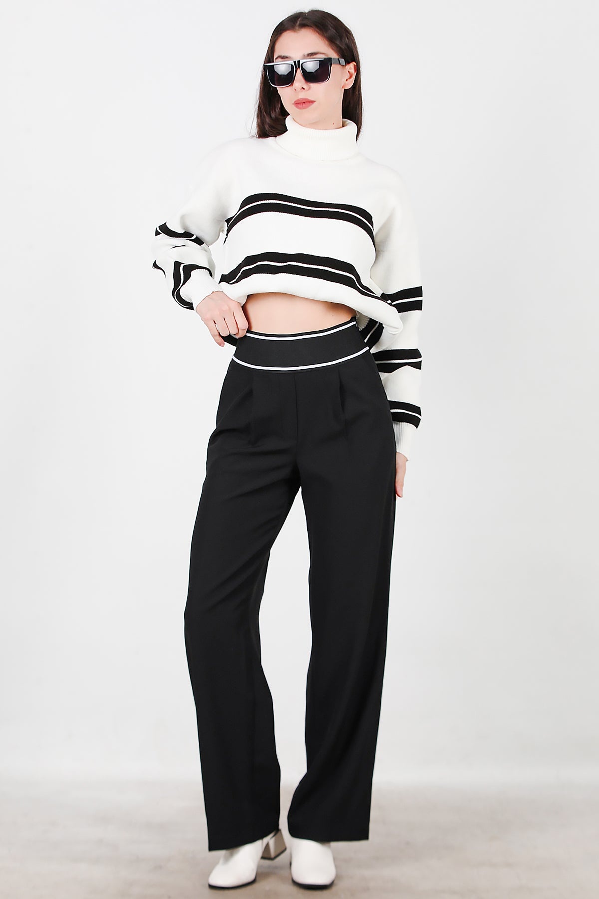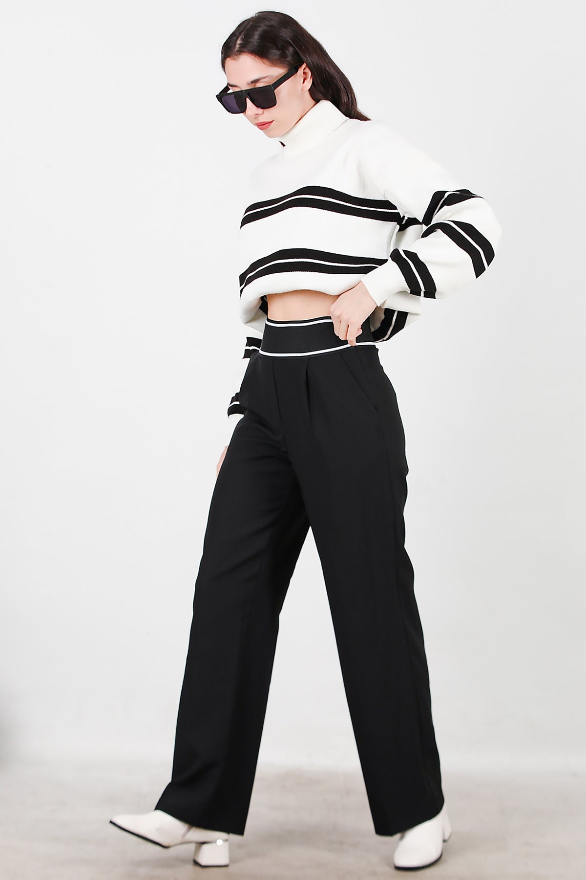 Kadın Kemeri Kalın Lastik Pantolon Siyah