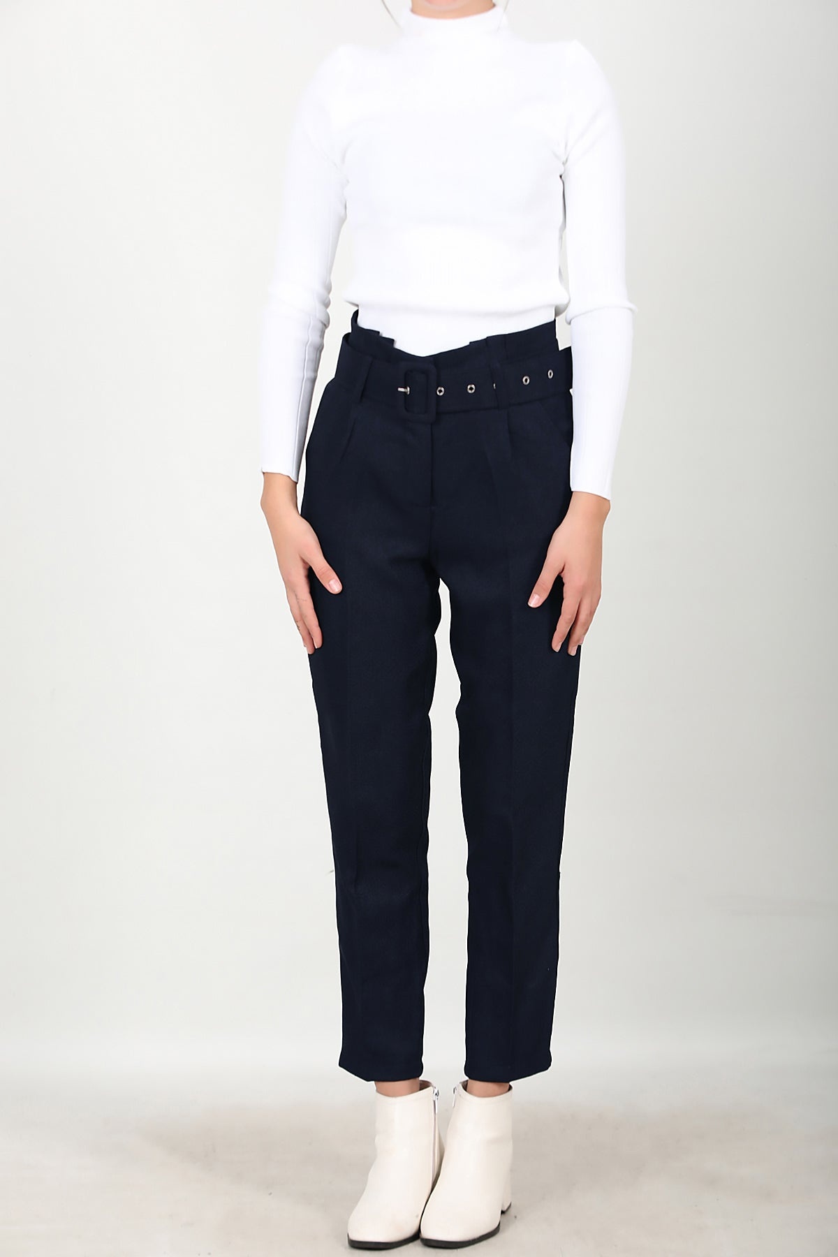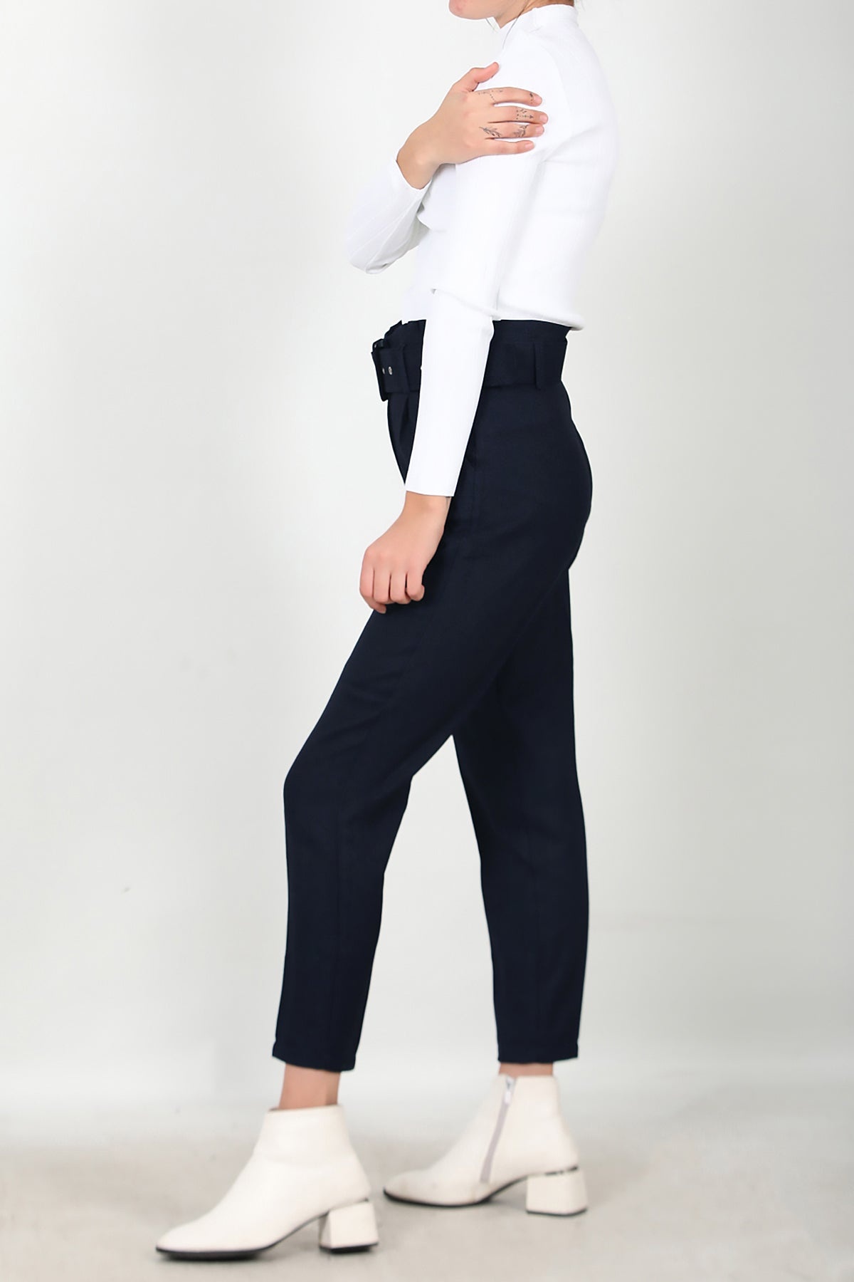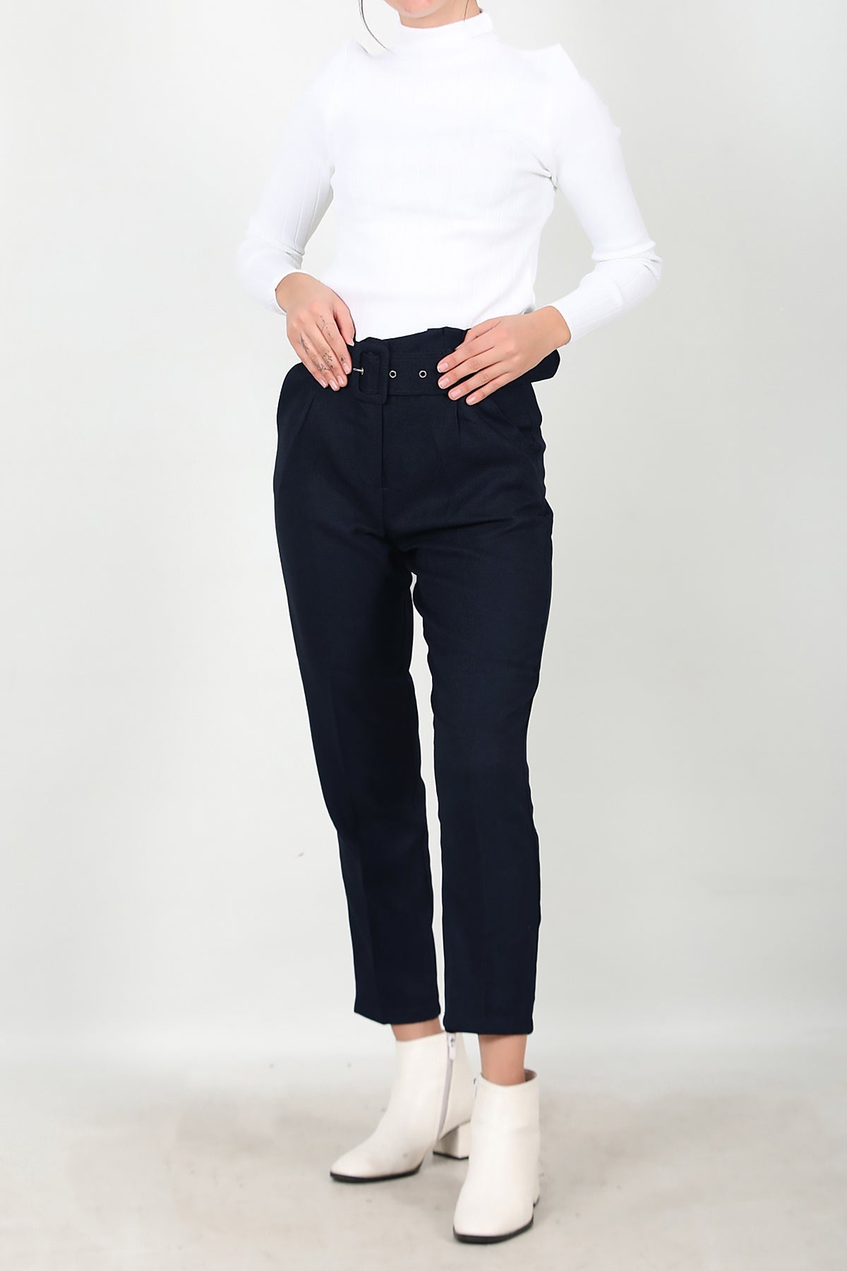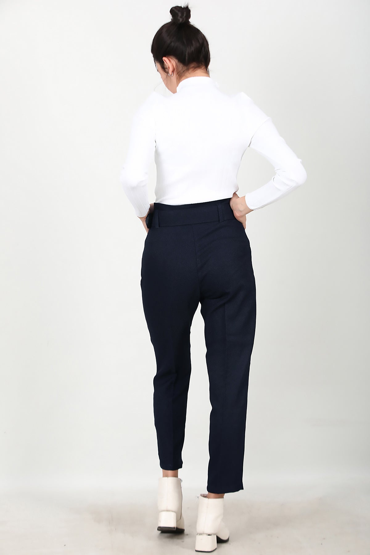 Kadın Kemerli Havuç Pantolon Lacivert Lacivert