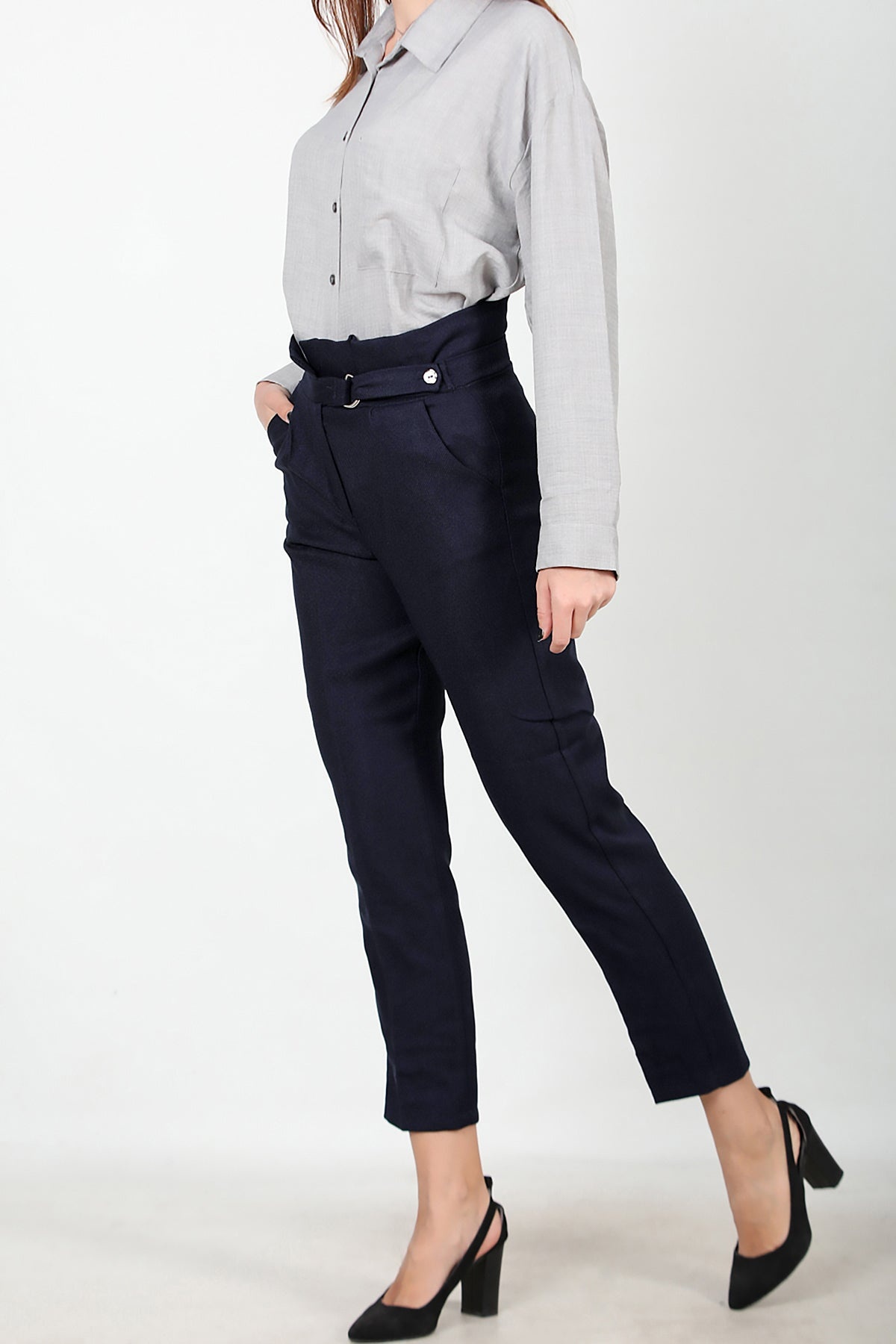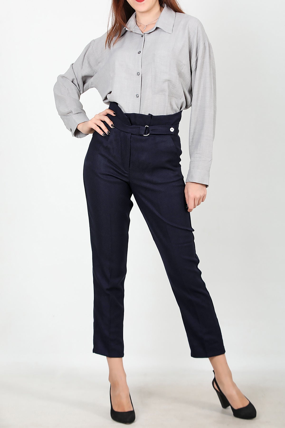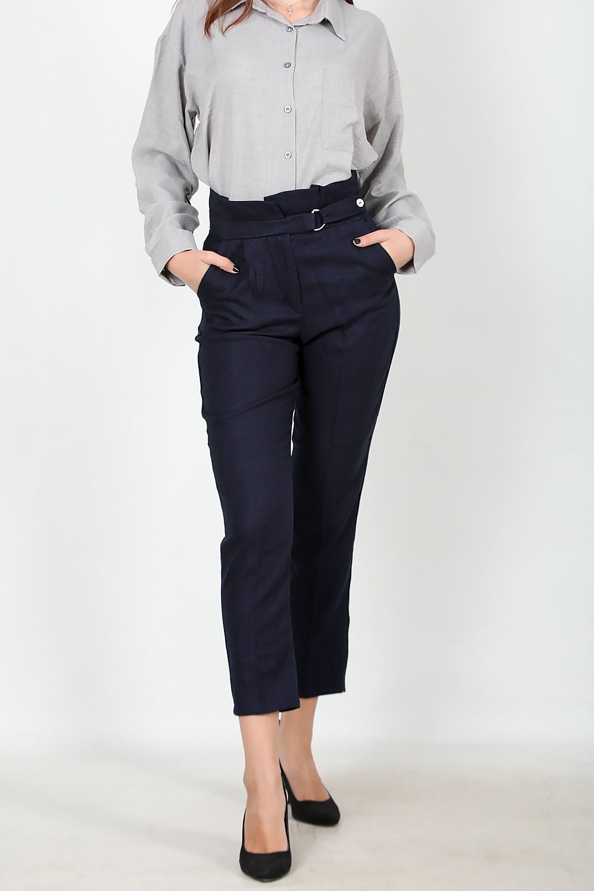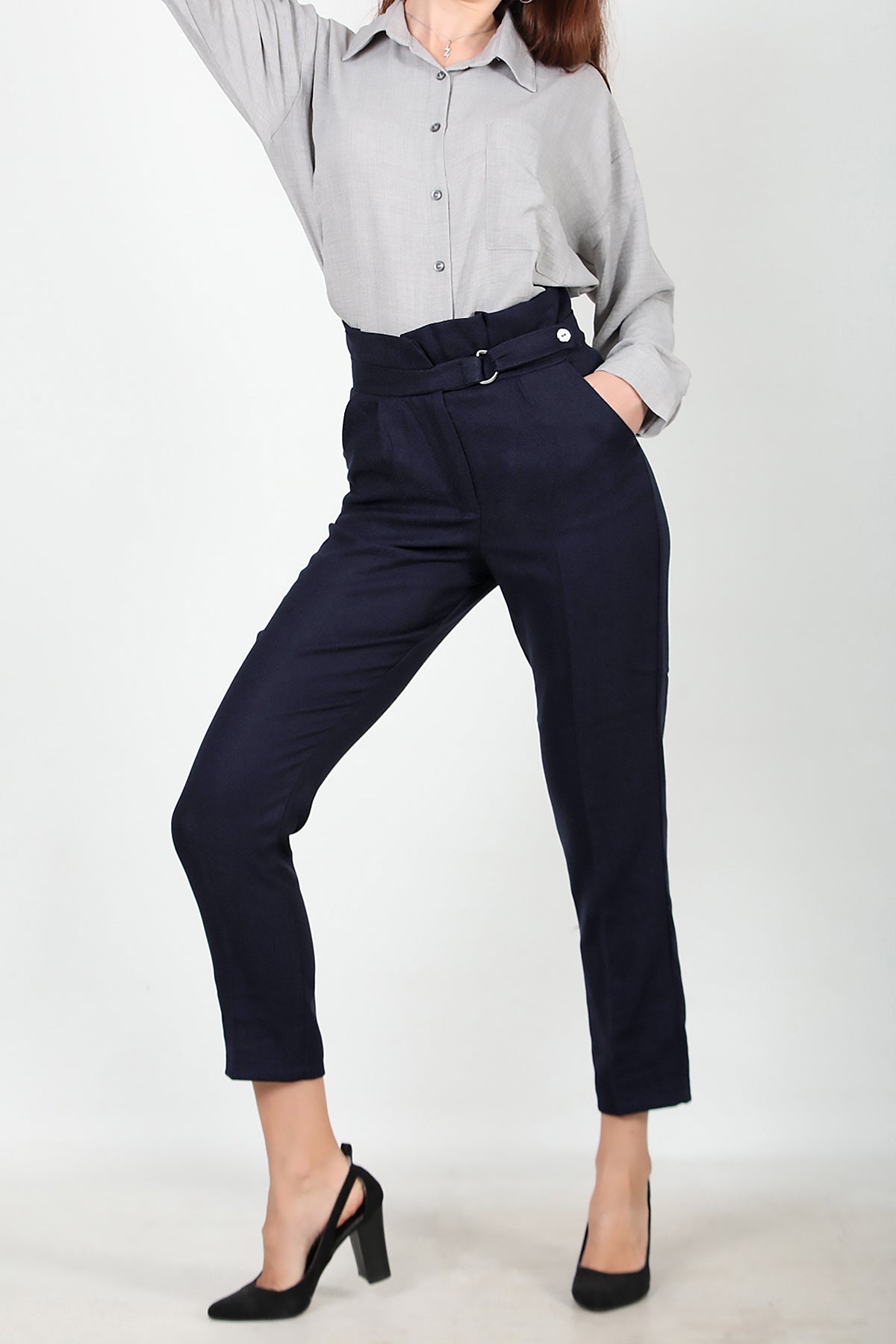 Kadın Kendinden Kemerli Pantolon Lacivert Lacivert