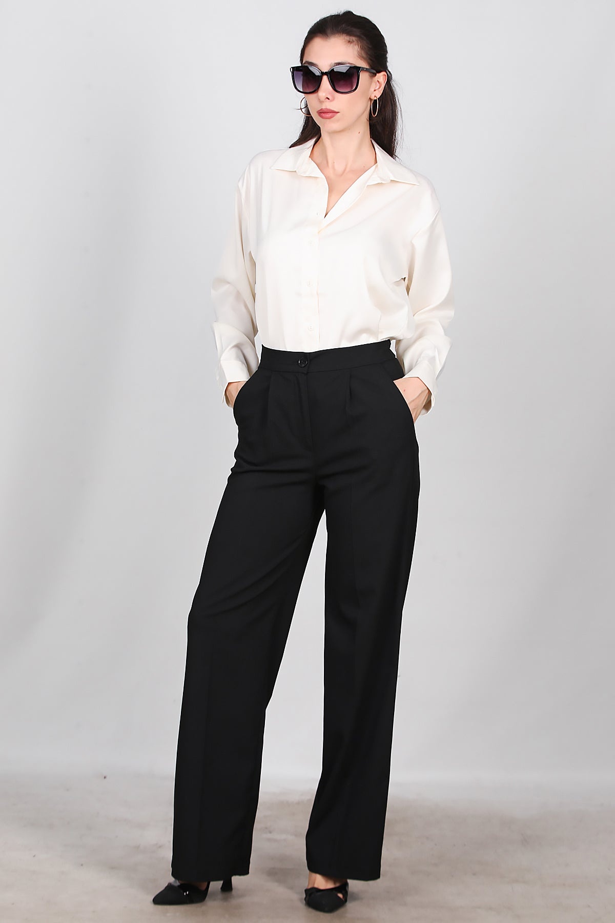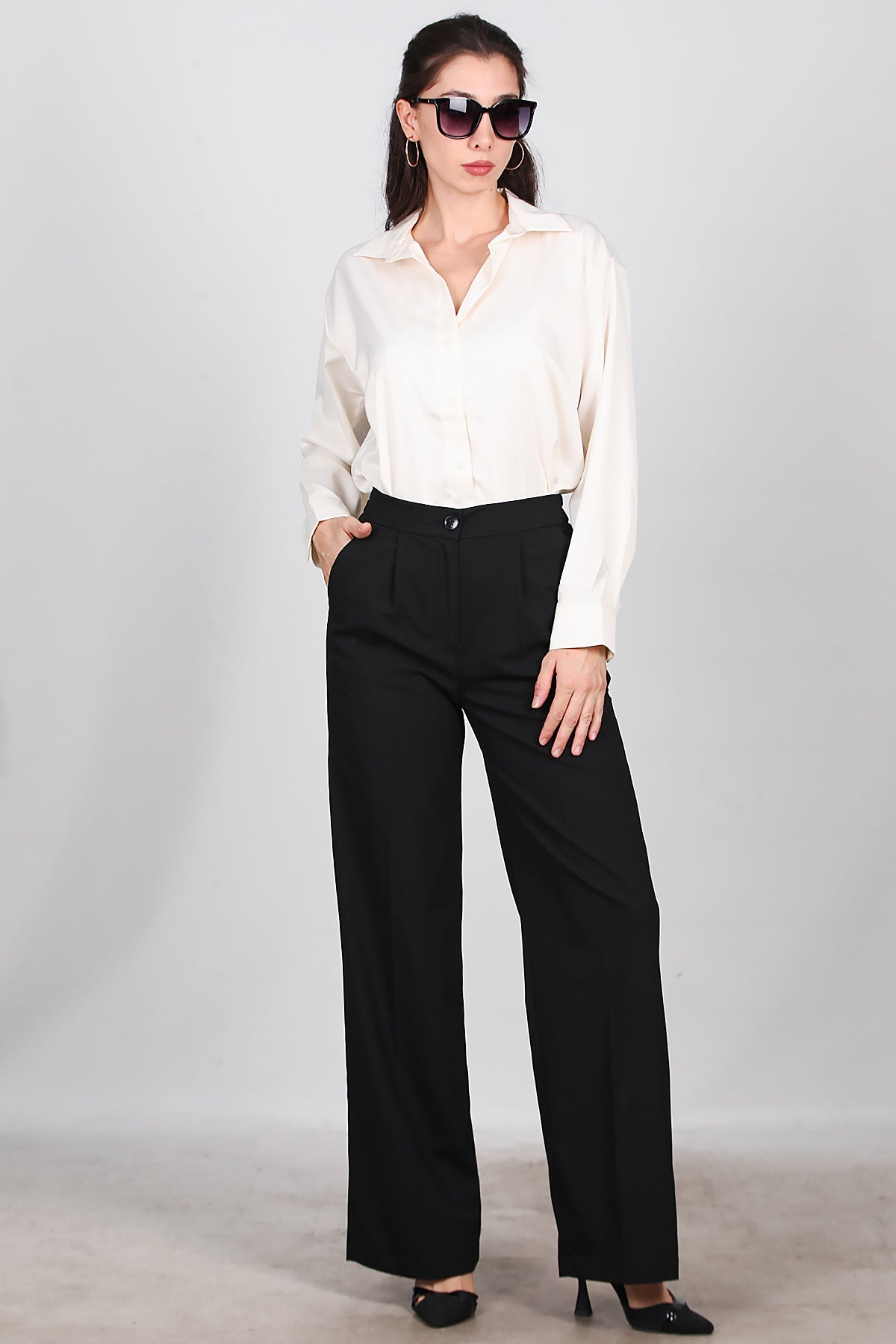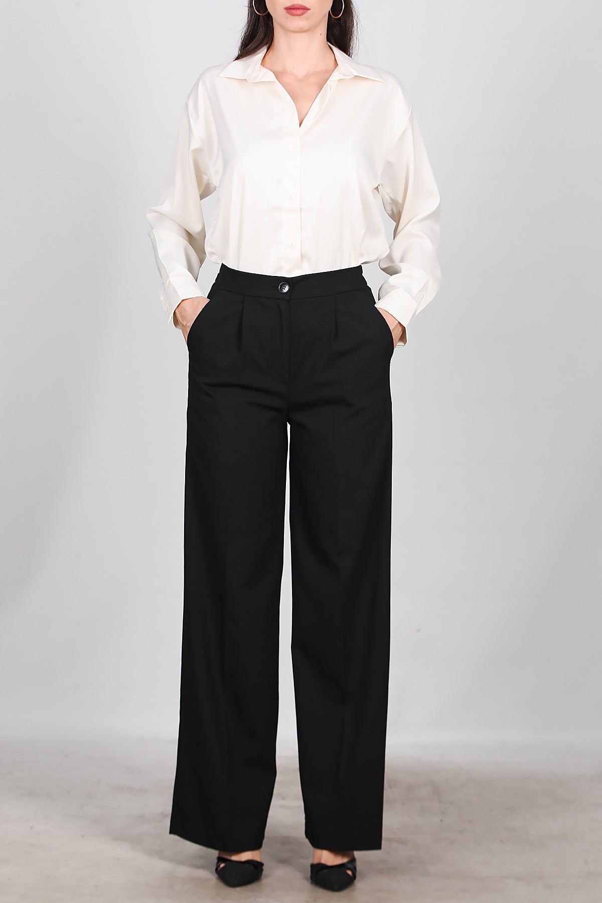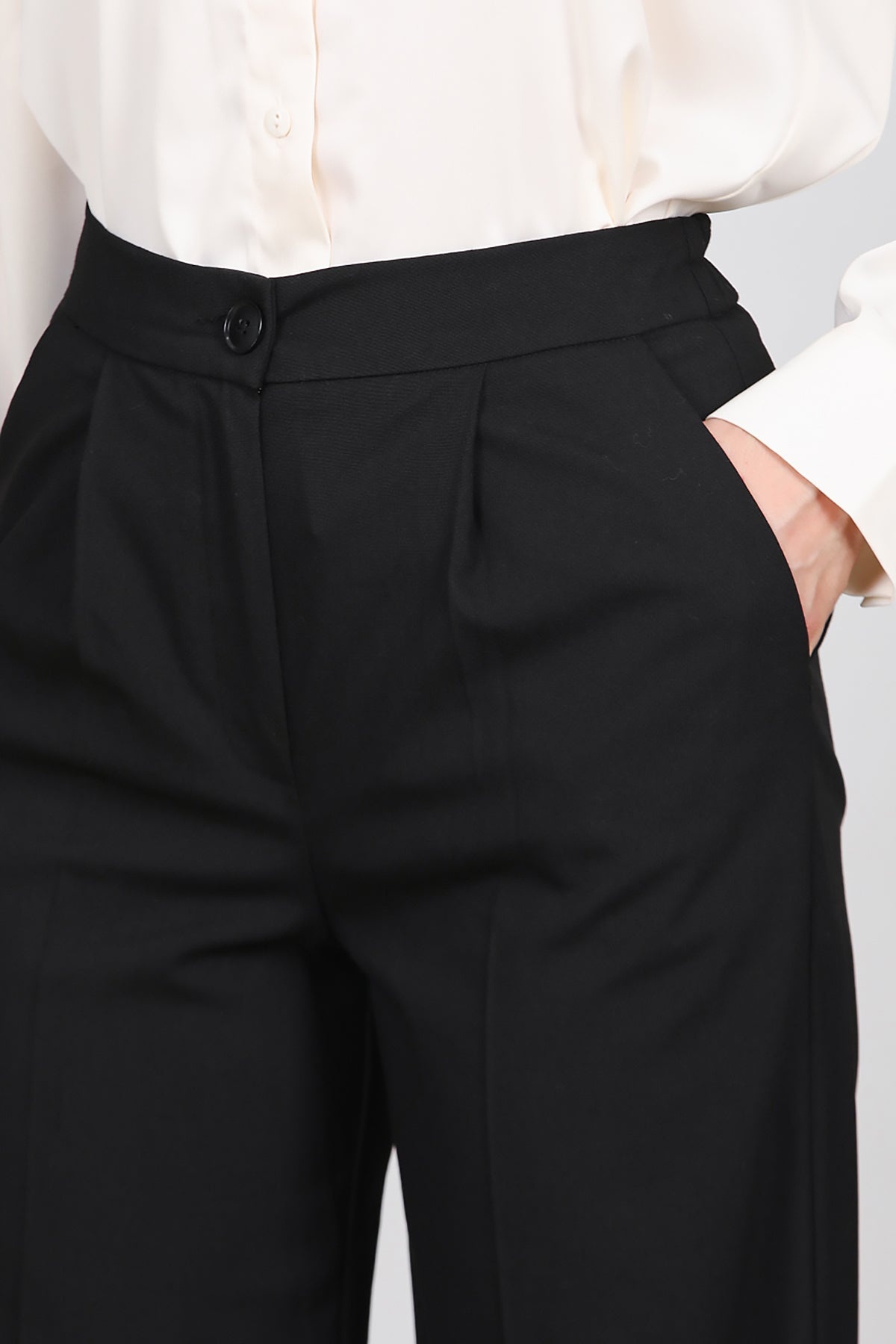 Kadın Önü Pileli Kumaş Pantolon Siyah