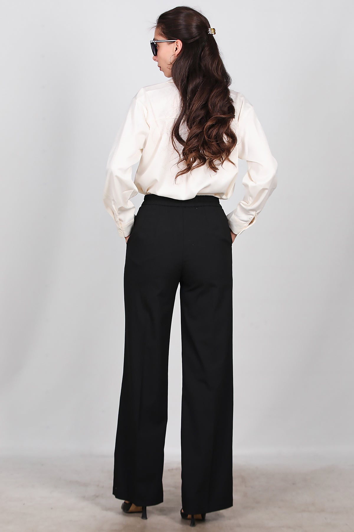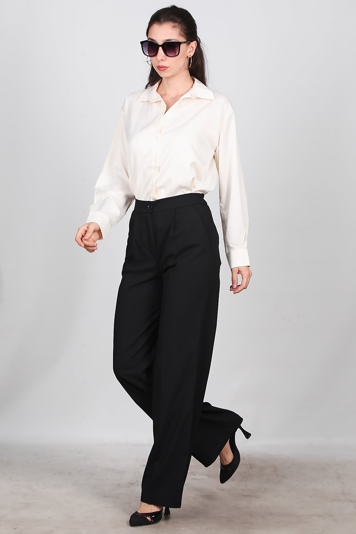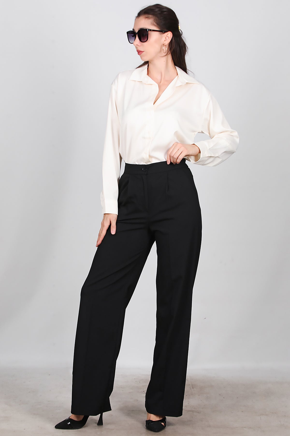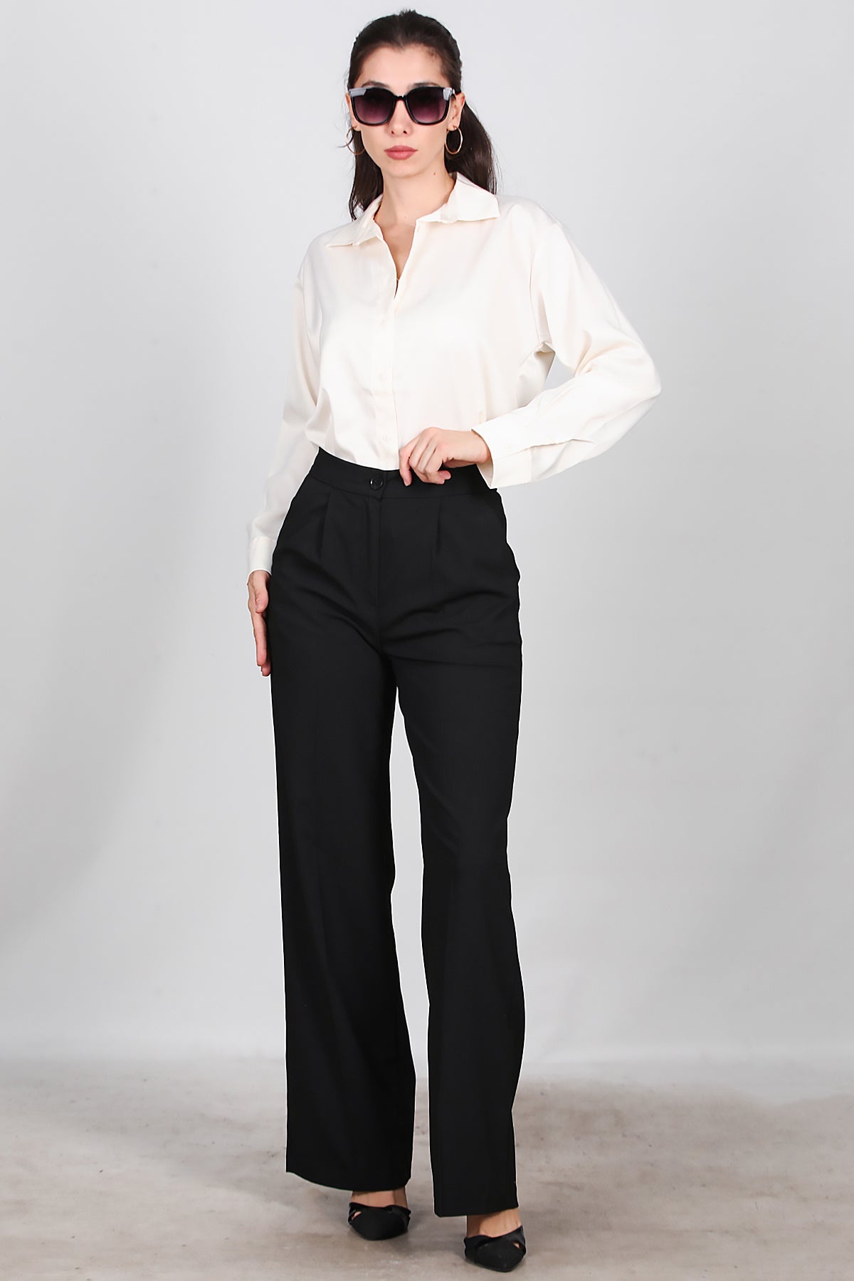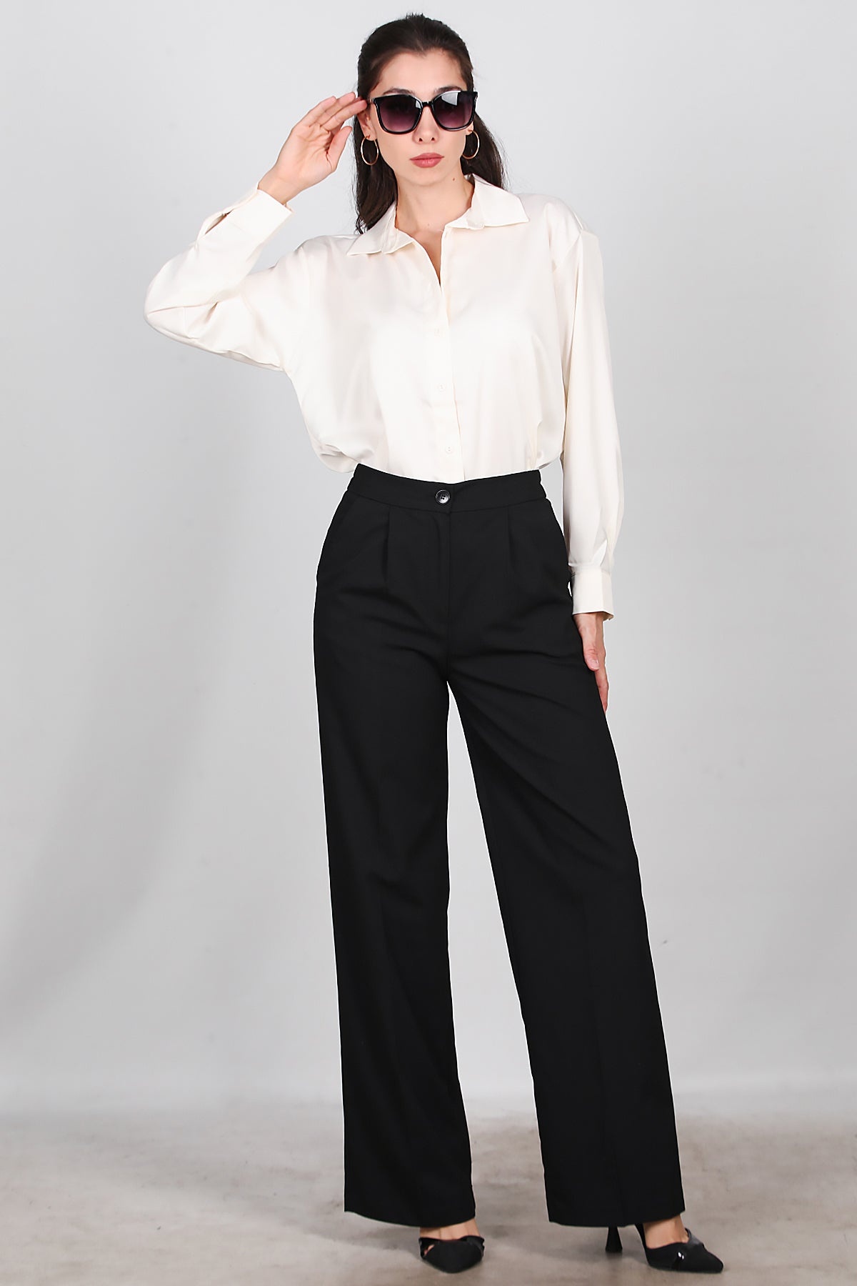 Kadın Önü Pileli Kumaş Pantolon Siyah