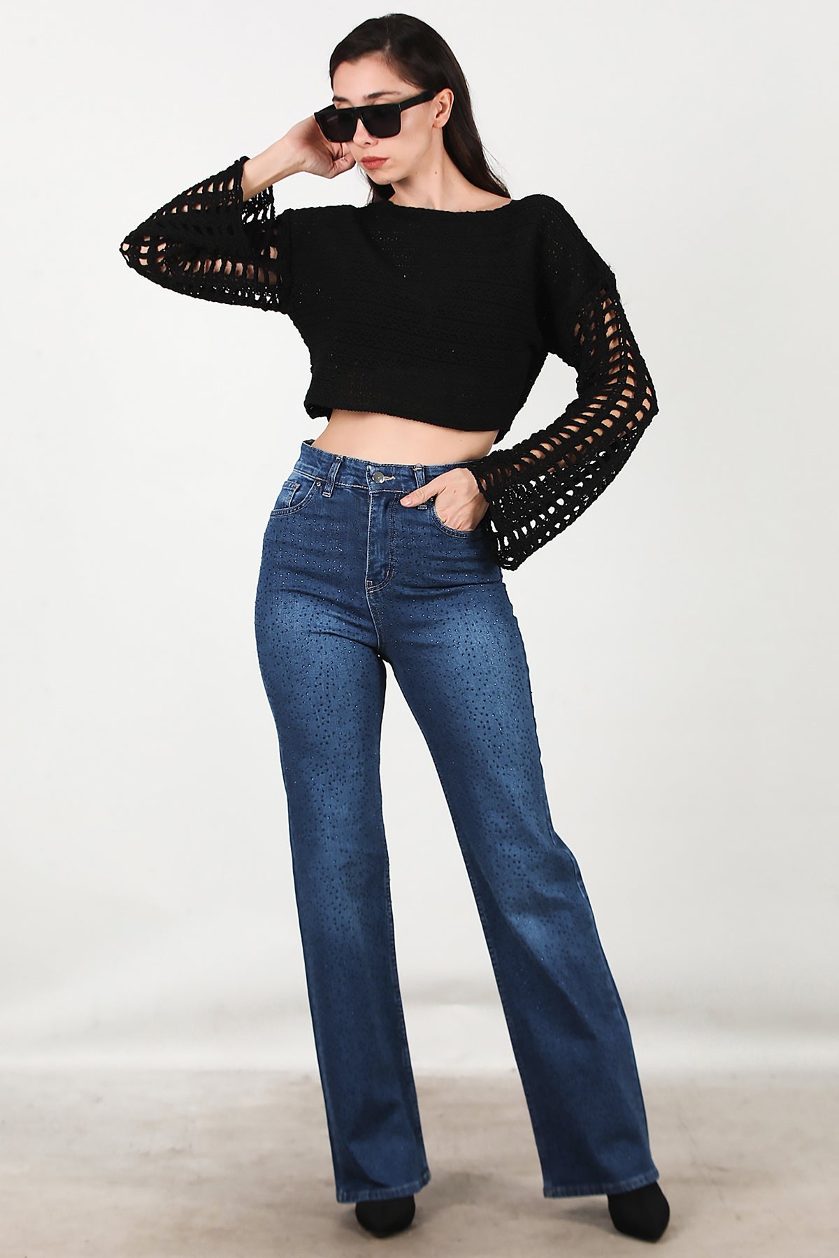 Kadın Taş Detay Kot Pantolon Kot