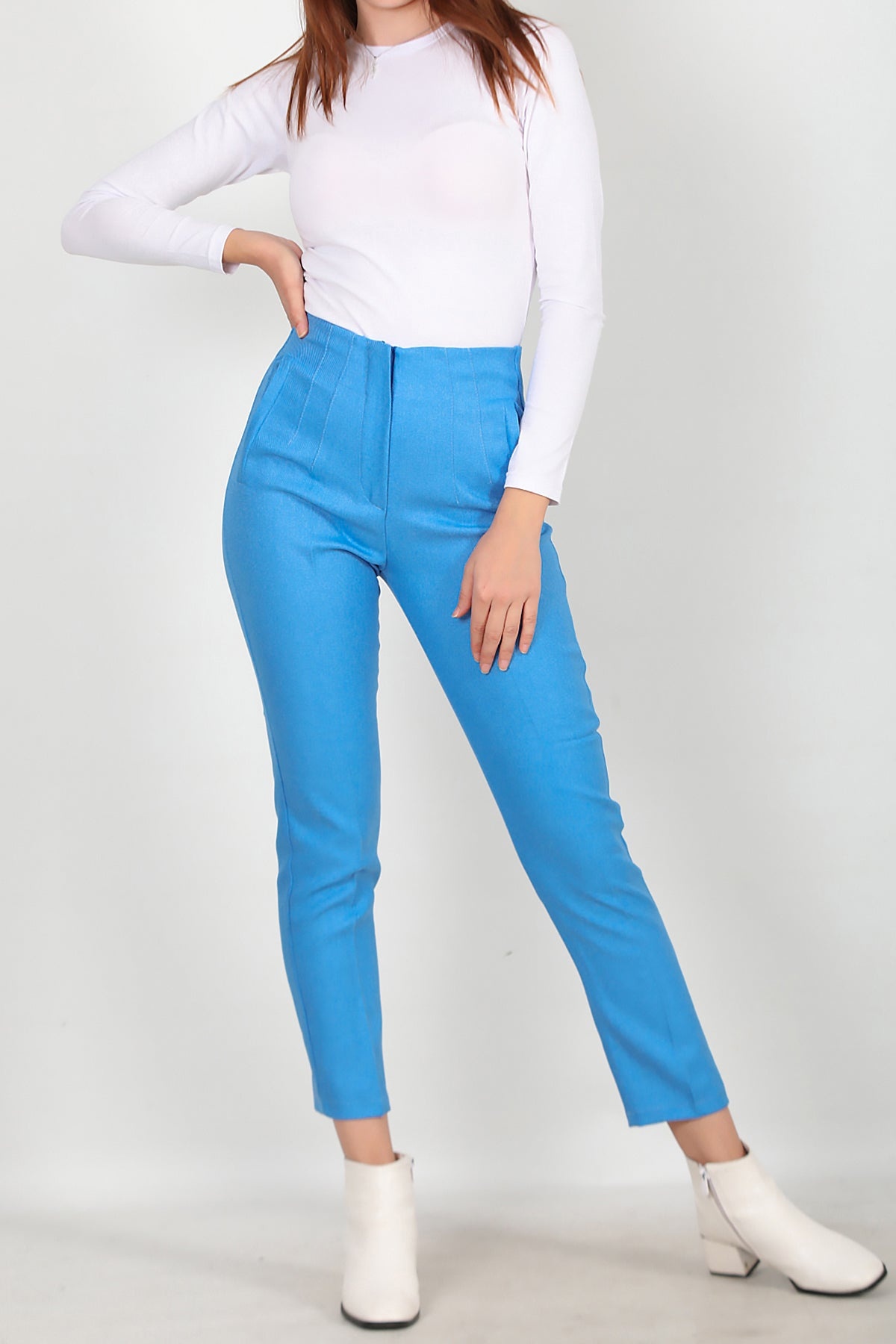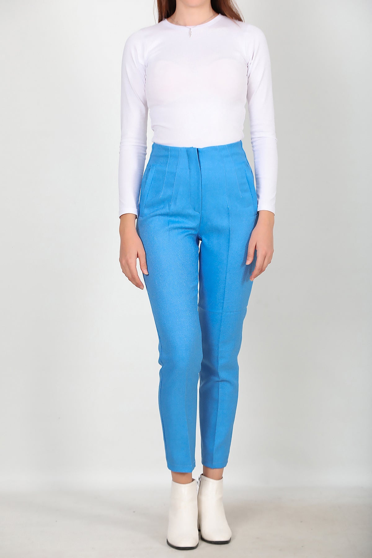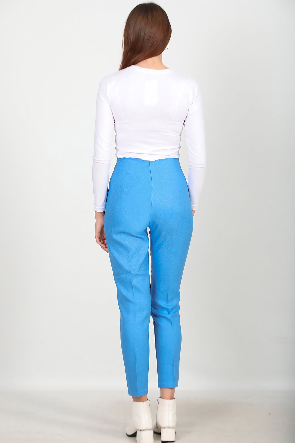 Kadın Yüksek Bel Bilek Boy Pantolon Mavi Mavi