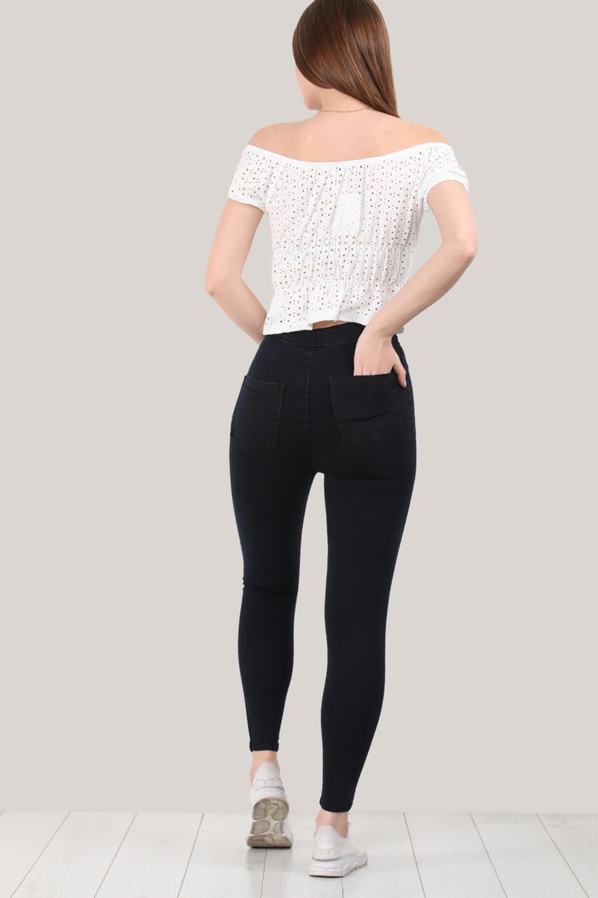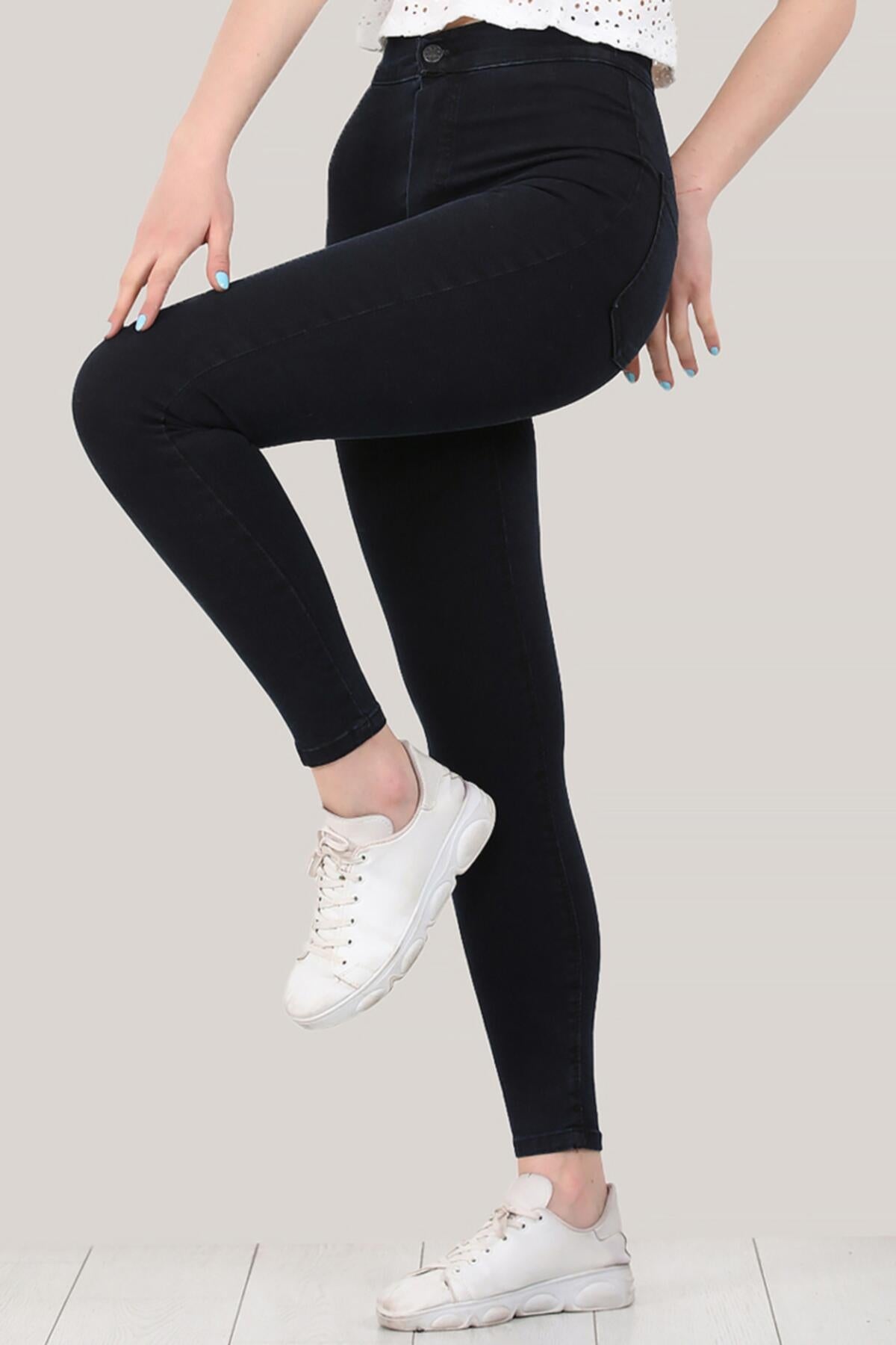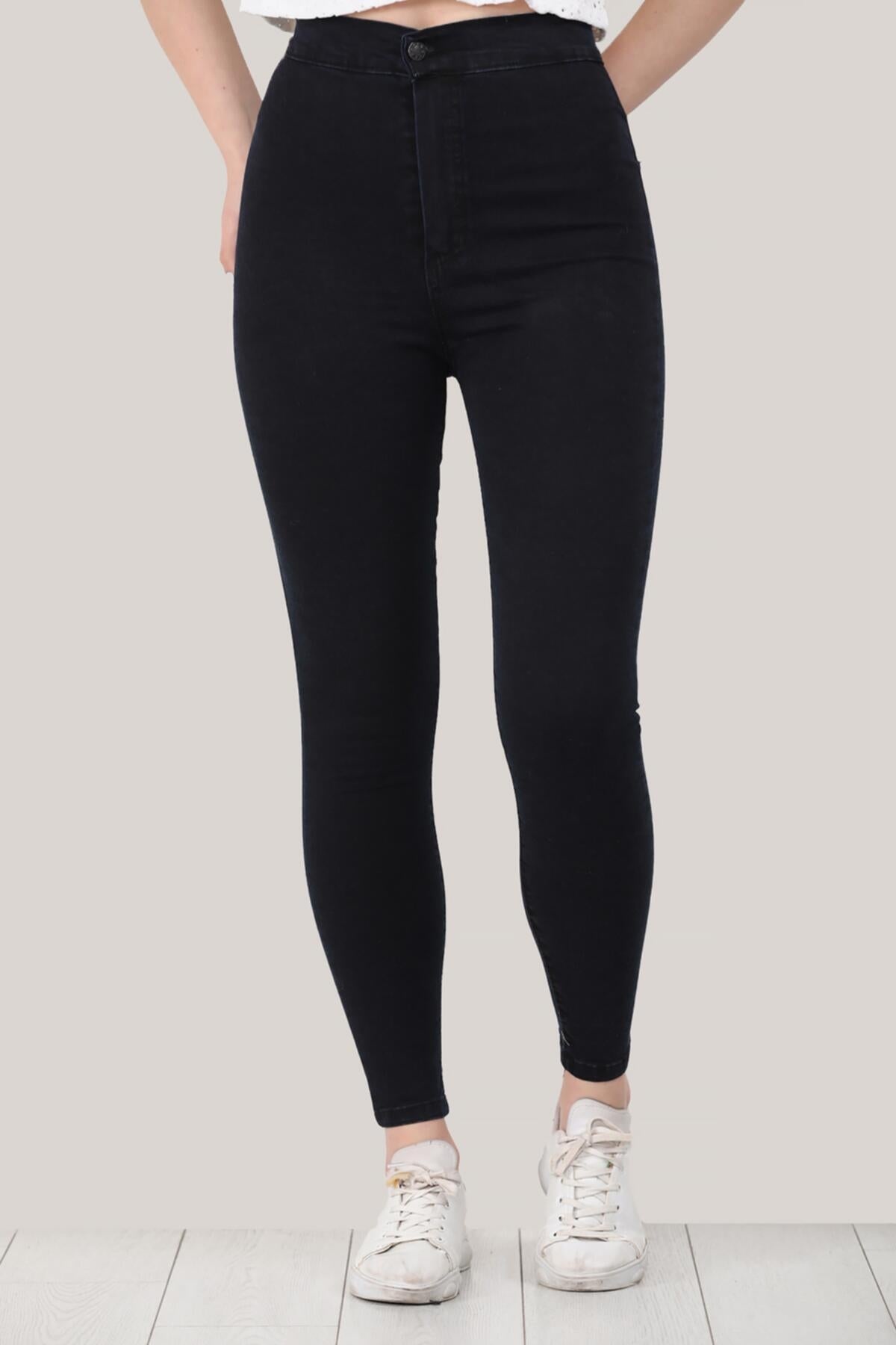 Kadın Yüksek Bel Kot Pantolon Koyu Lacivert Lacivert