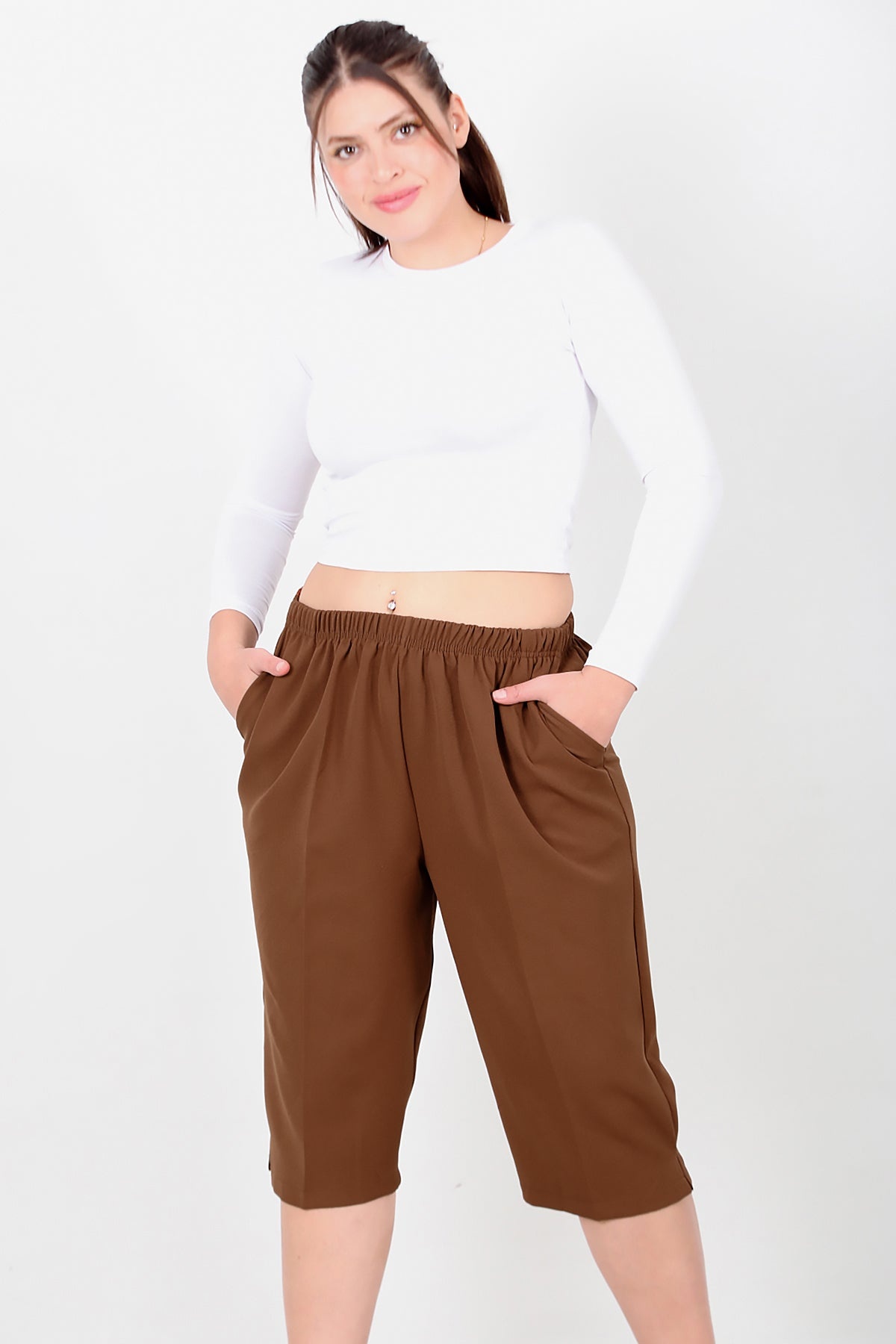 Büyük Beden Kapri Kahverengi Kahverengi