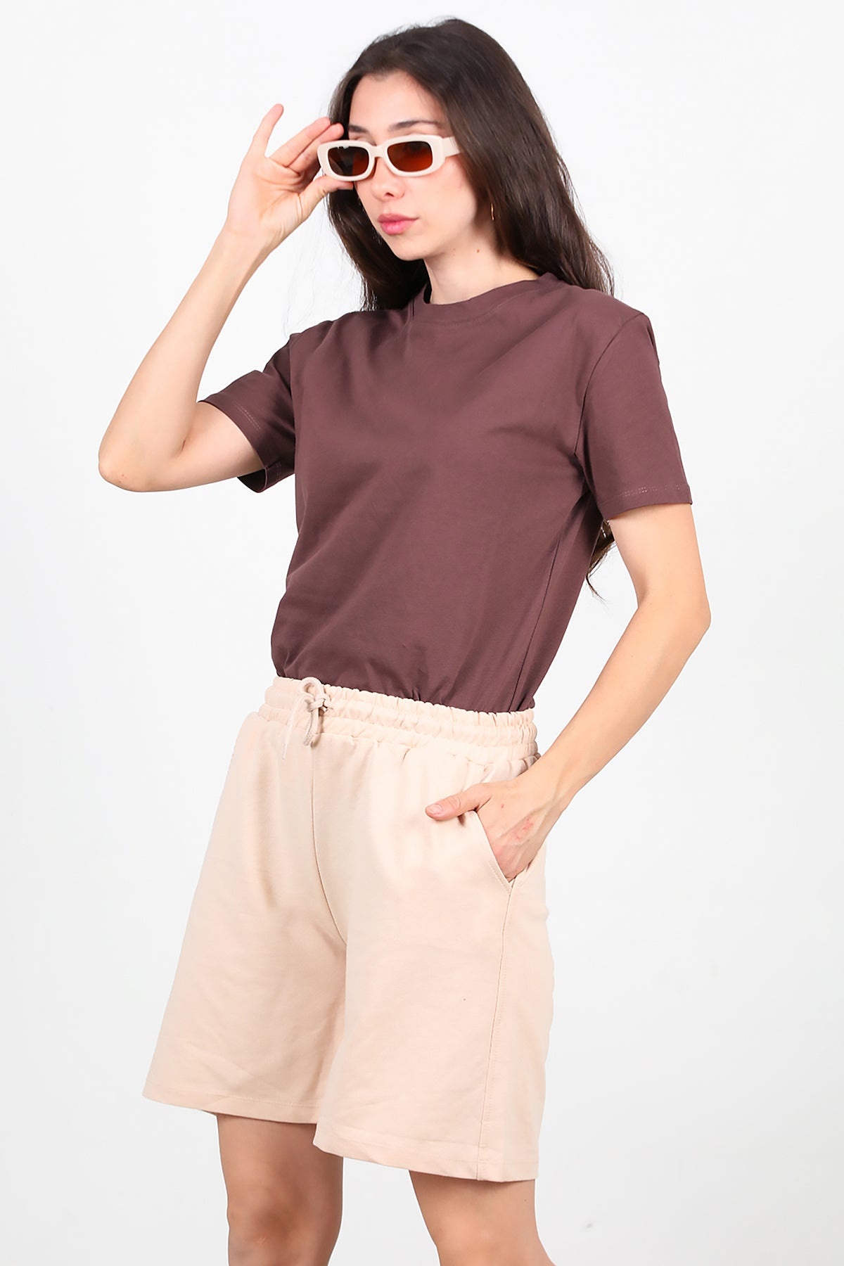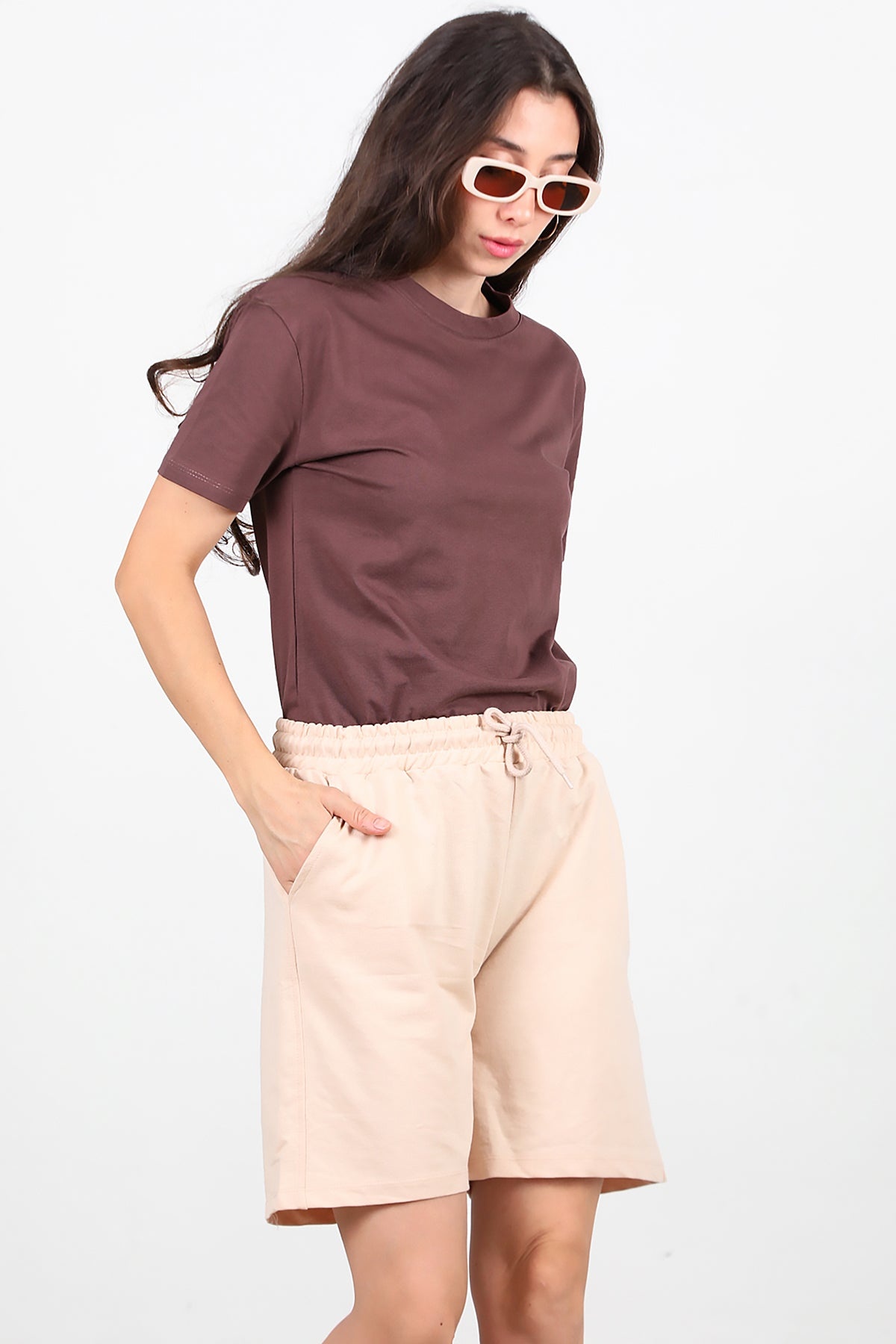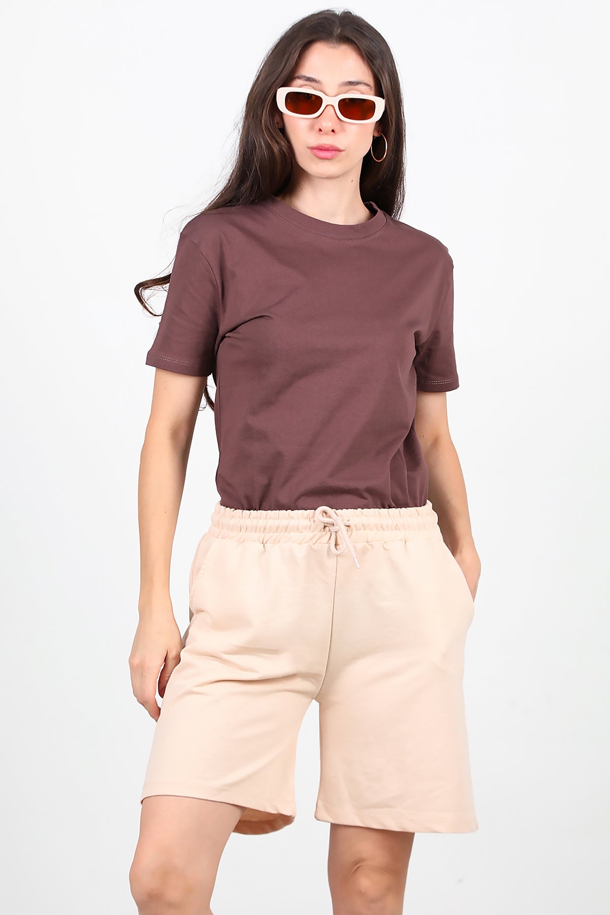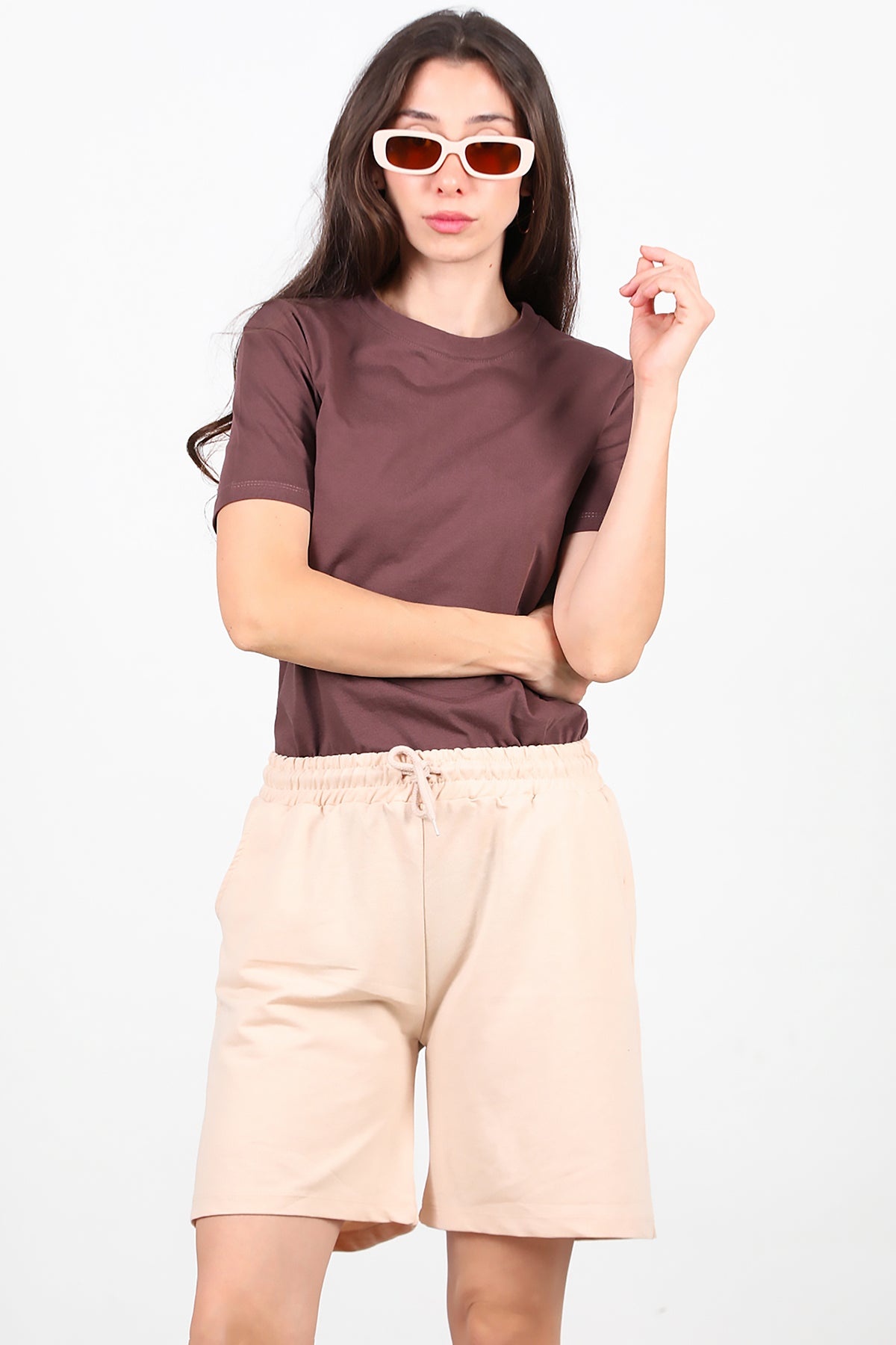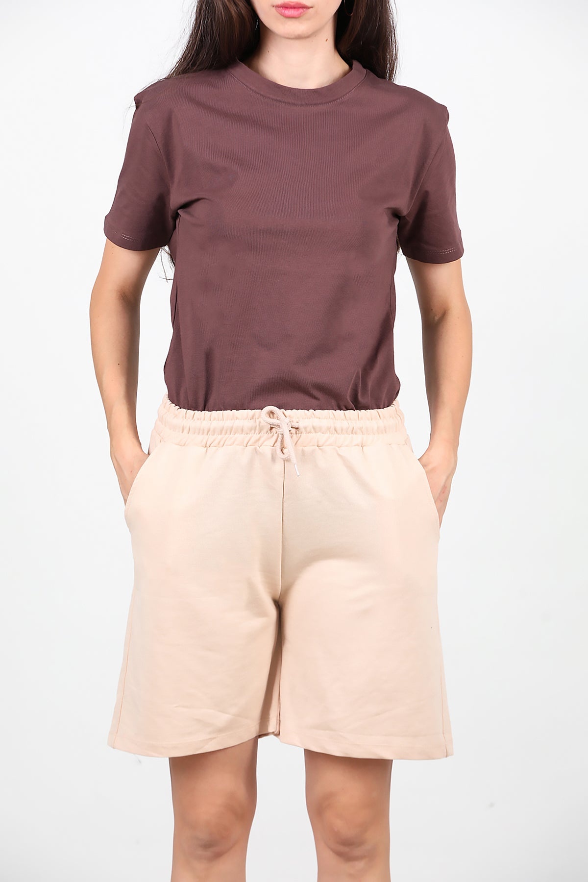 Kadın İki İplik Şort Taş