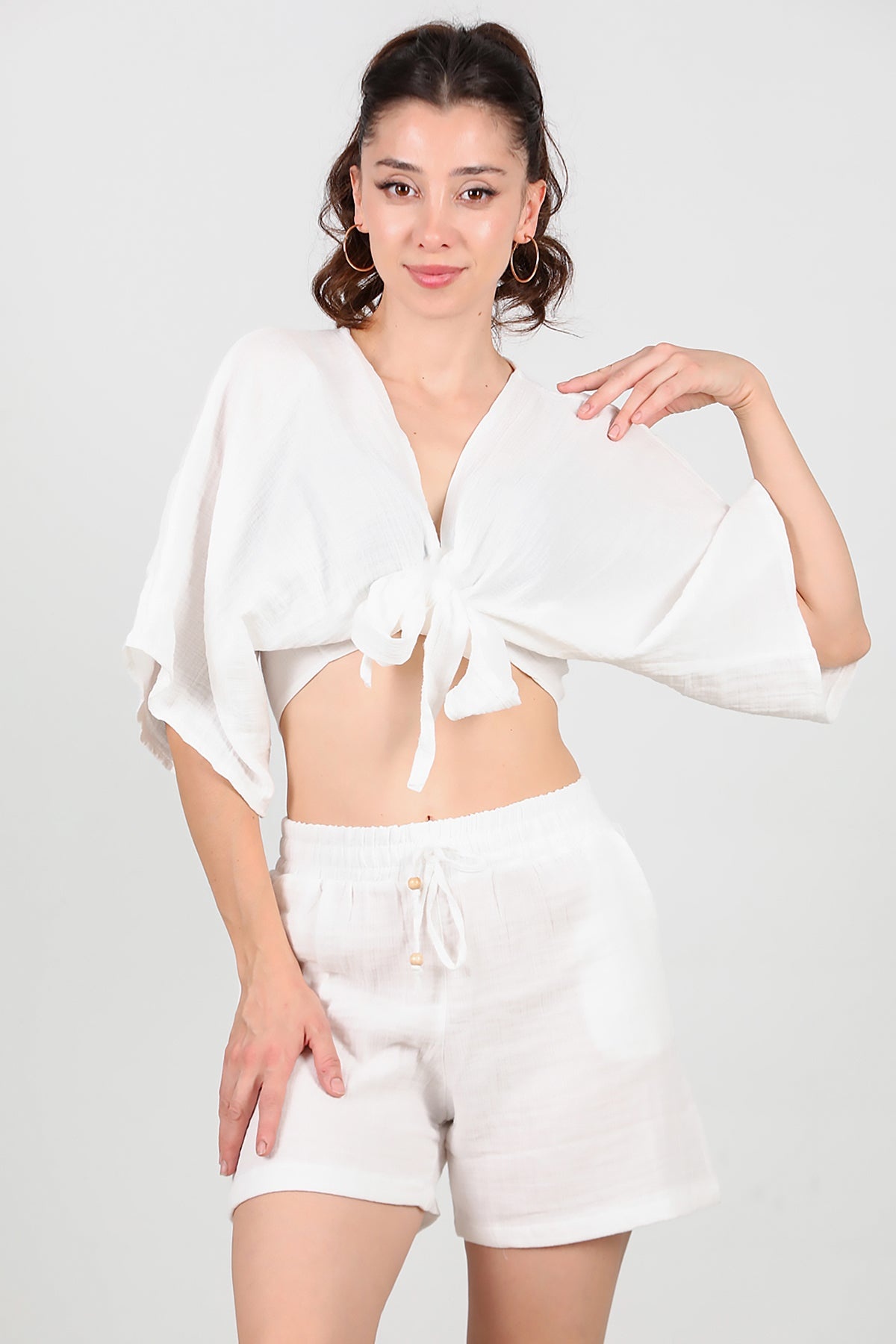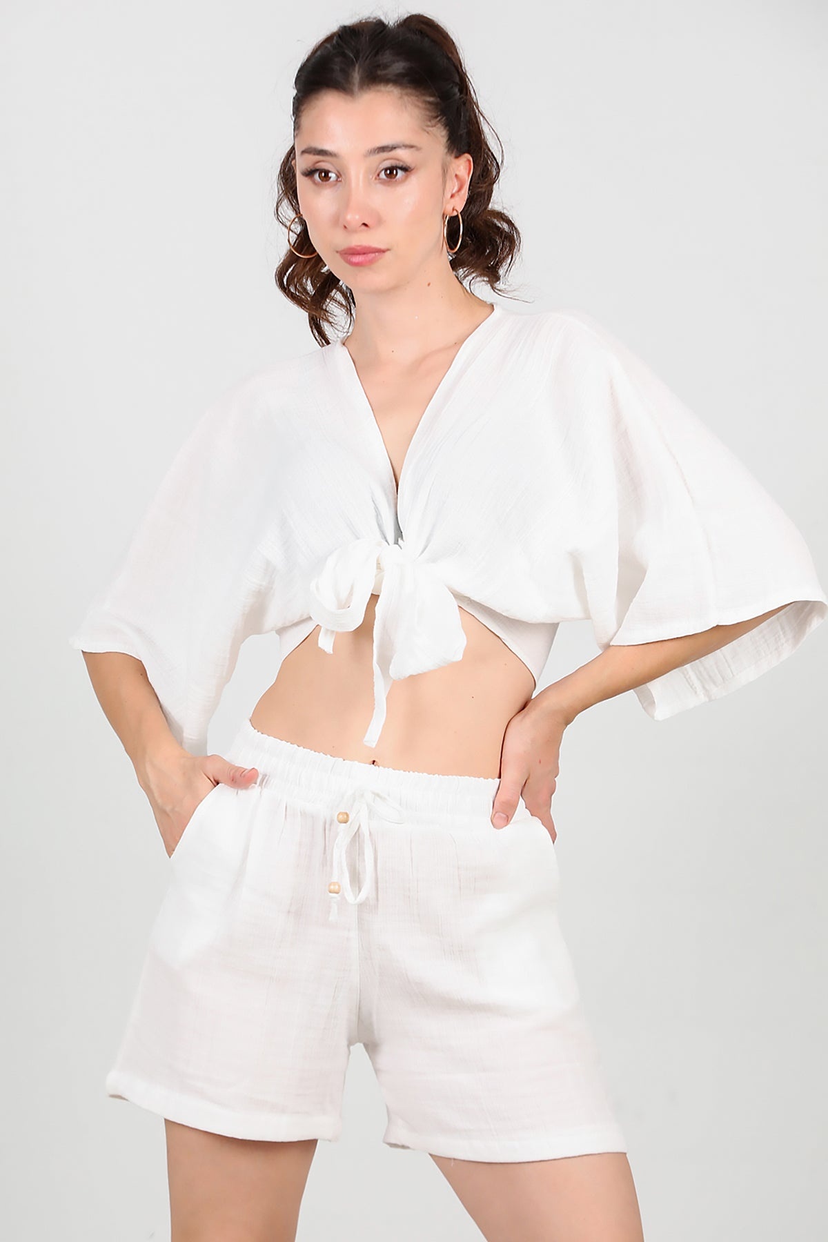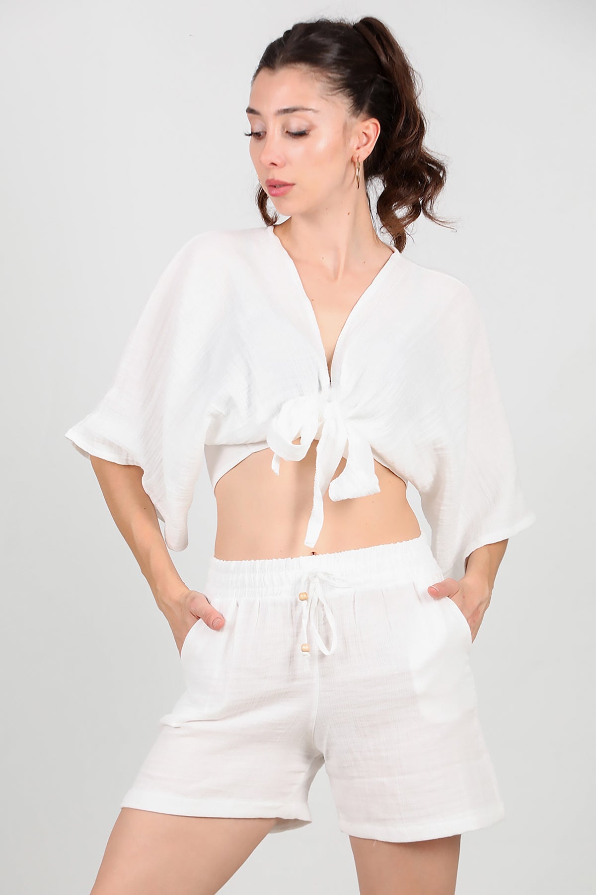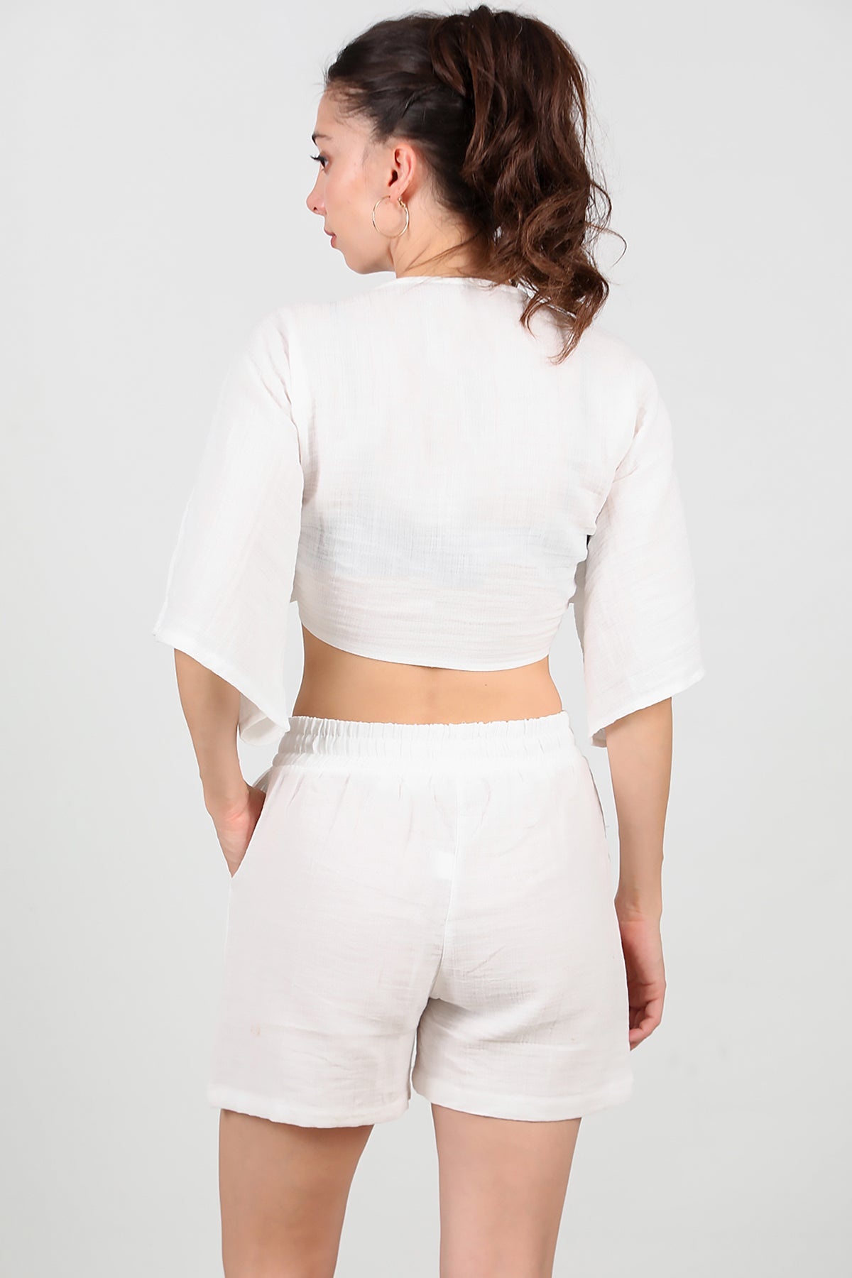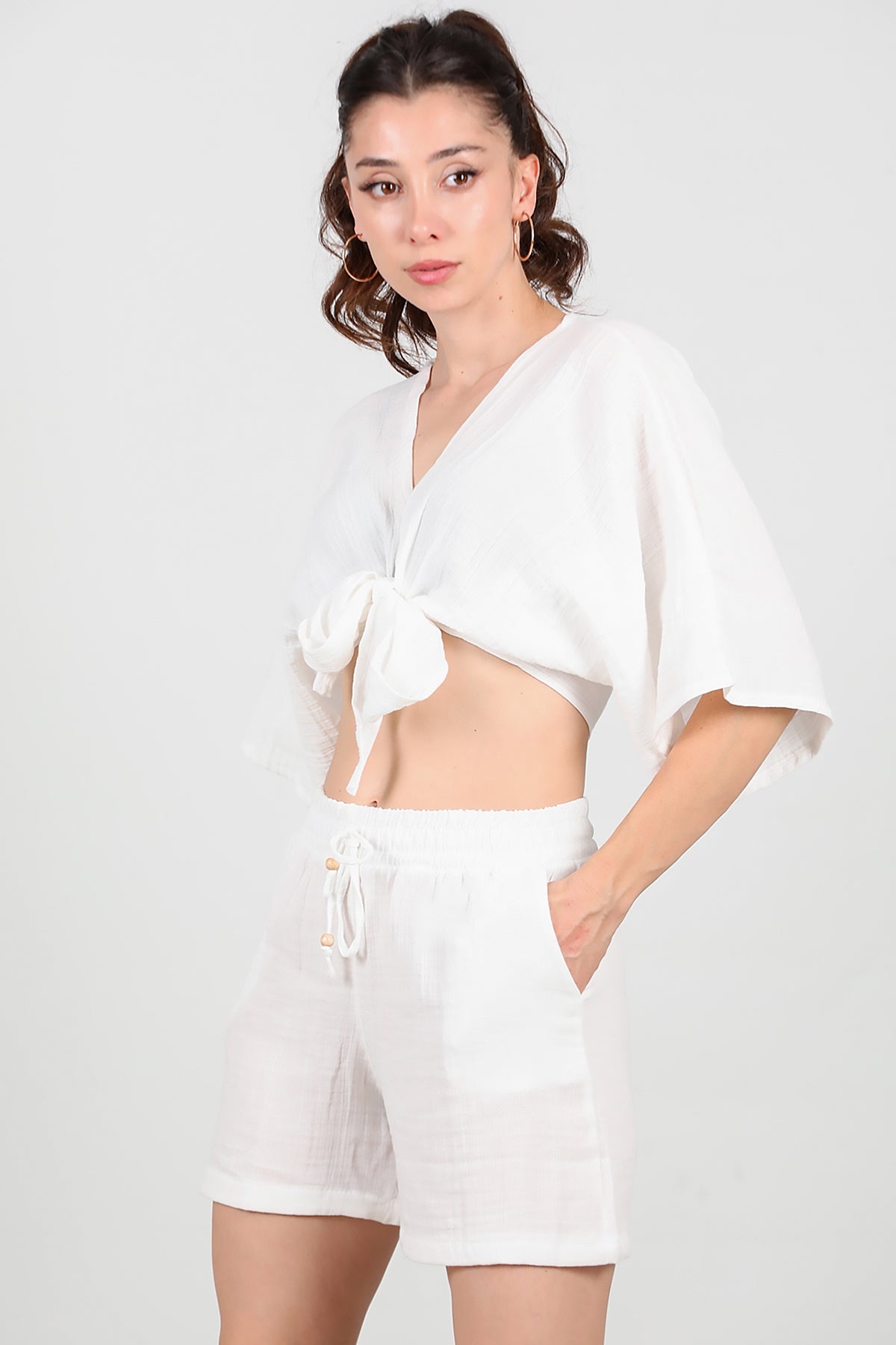 Kadın Keten Şort Ekru