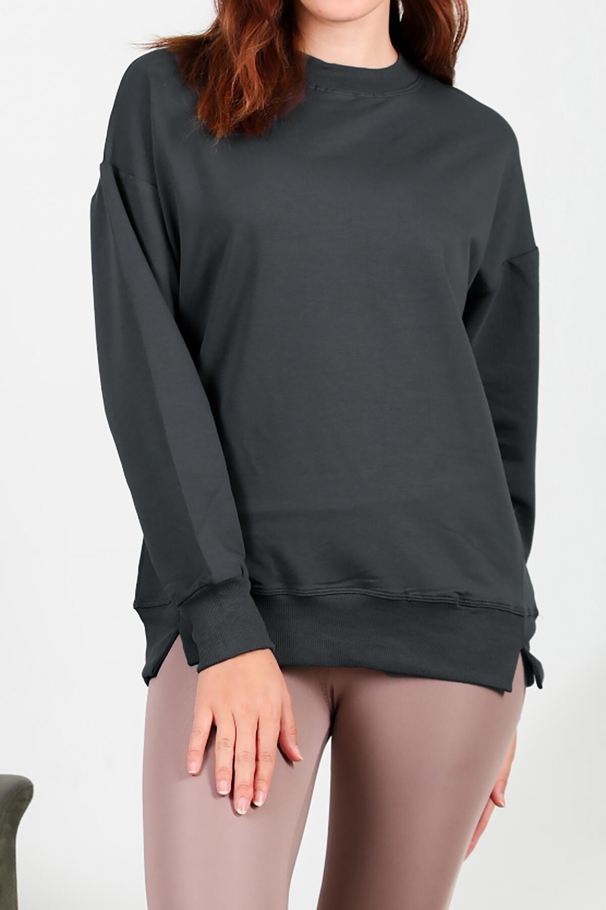 Kadın İki İplik Sıfır Yaka Sweat Füme
