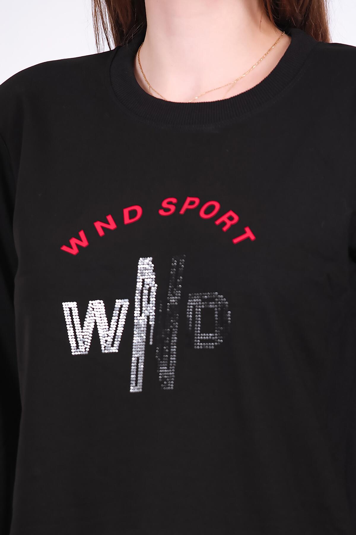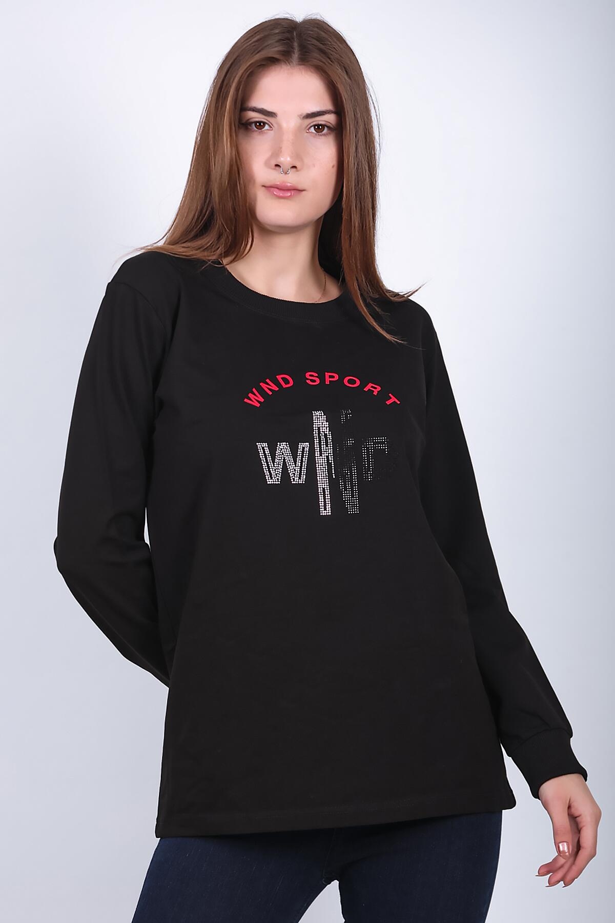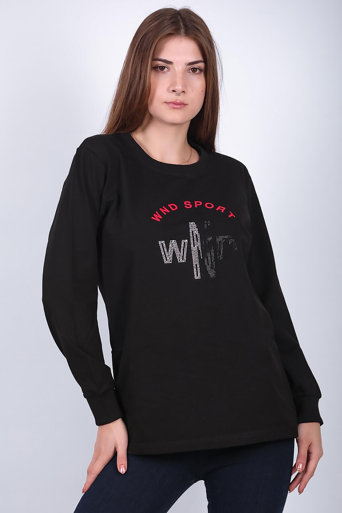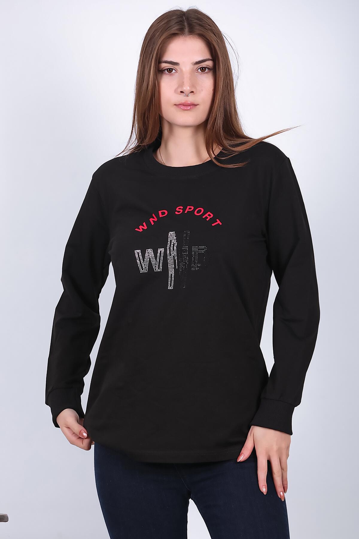Kadın Bisiklet Yaka Baskılı Sweat Siyah