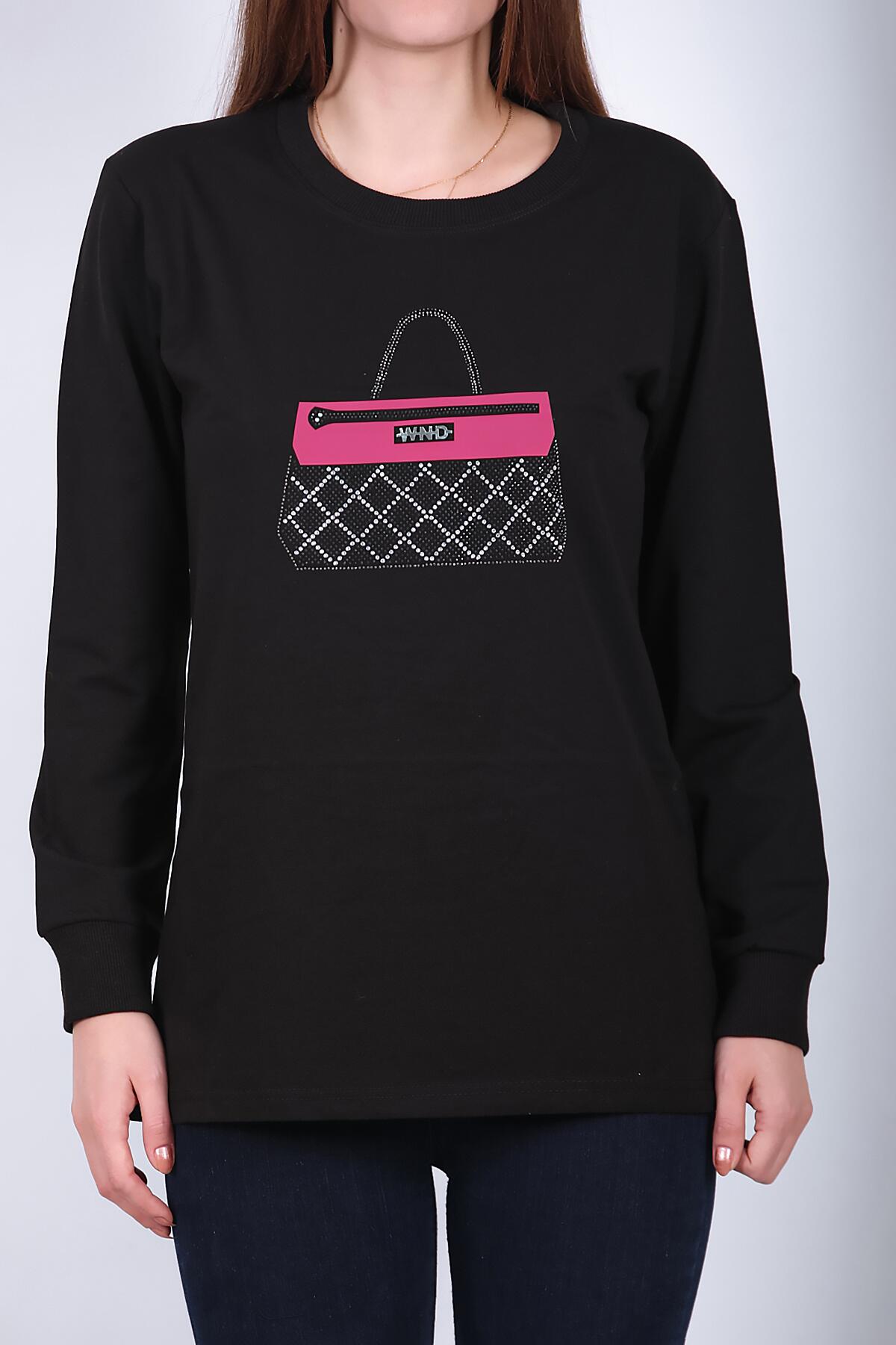Kadın Bisiklet Yaka Baskılı Sweat Siyah
