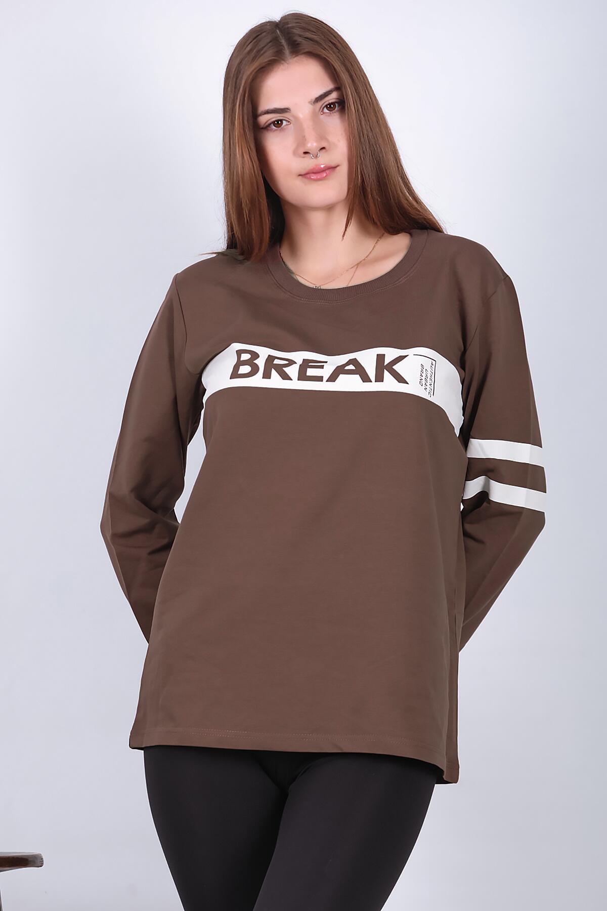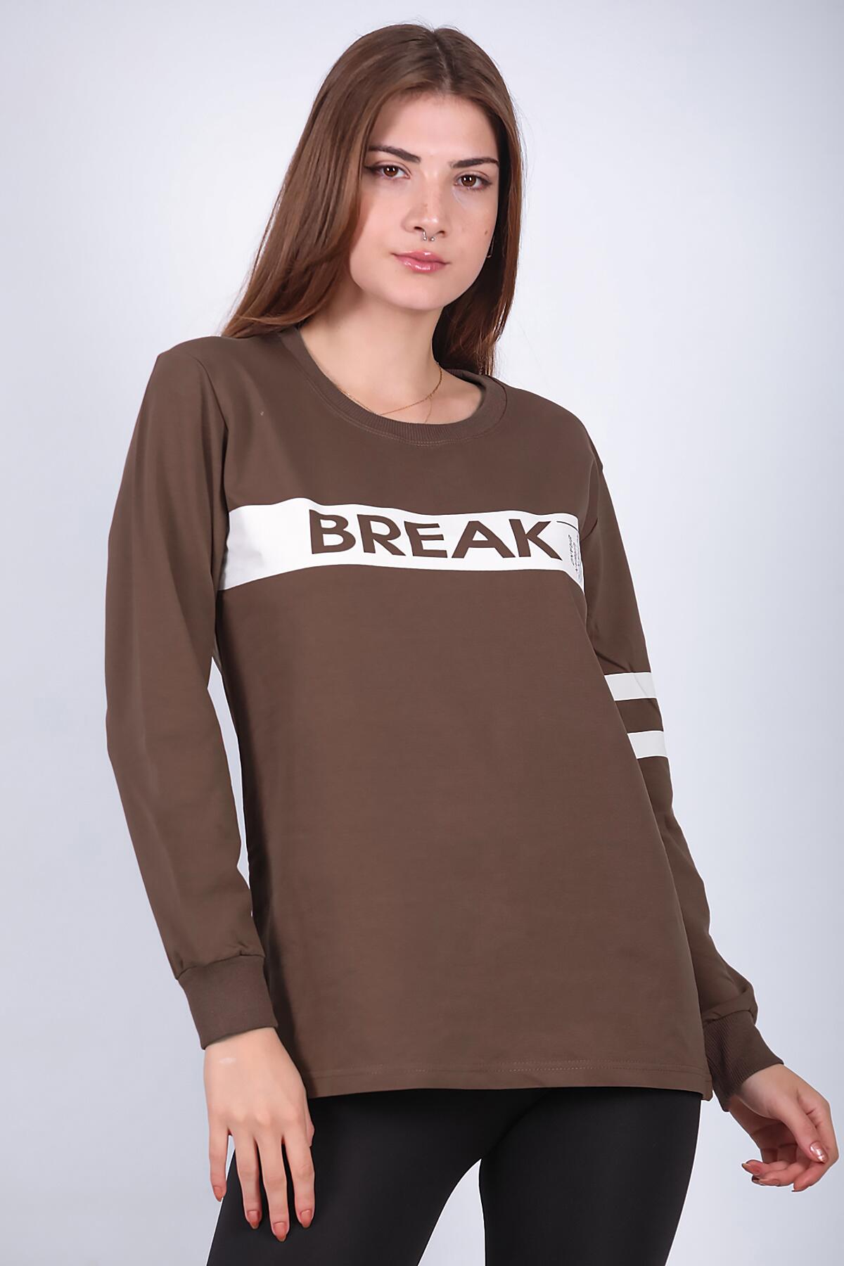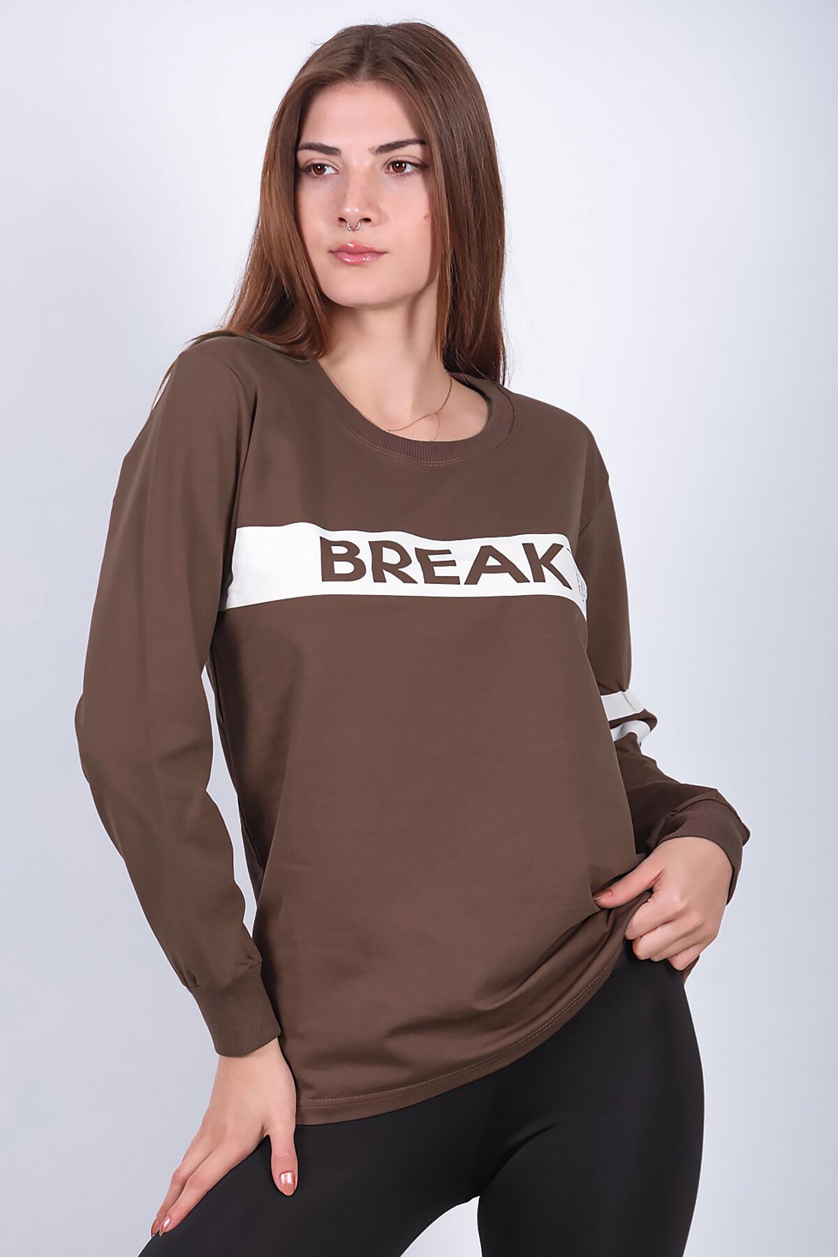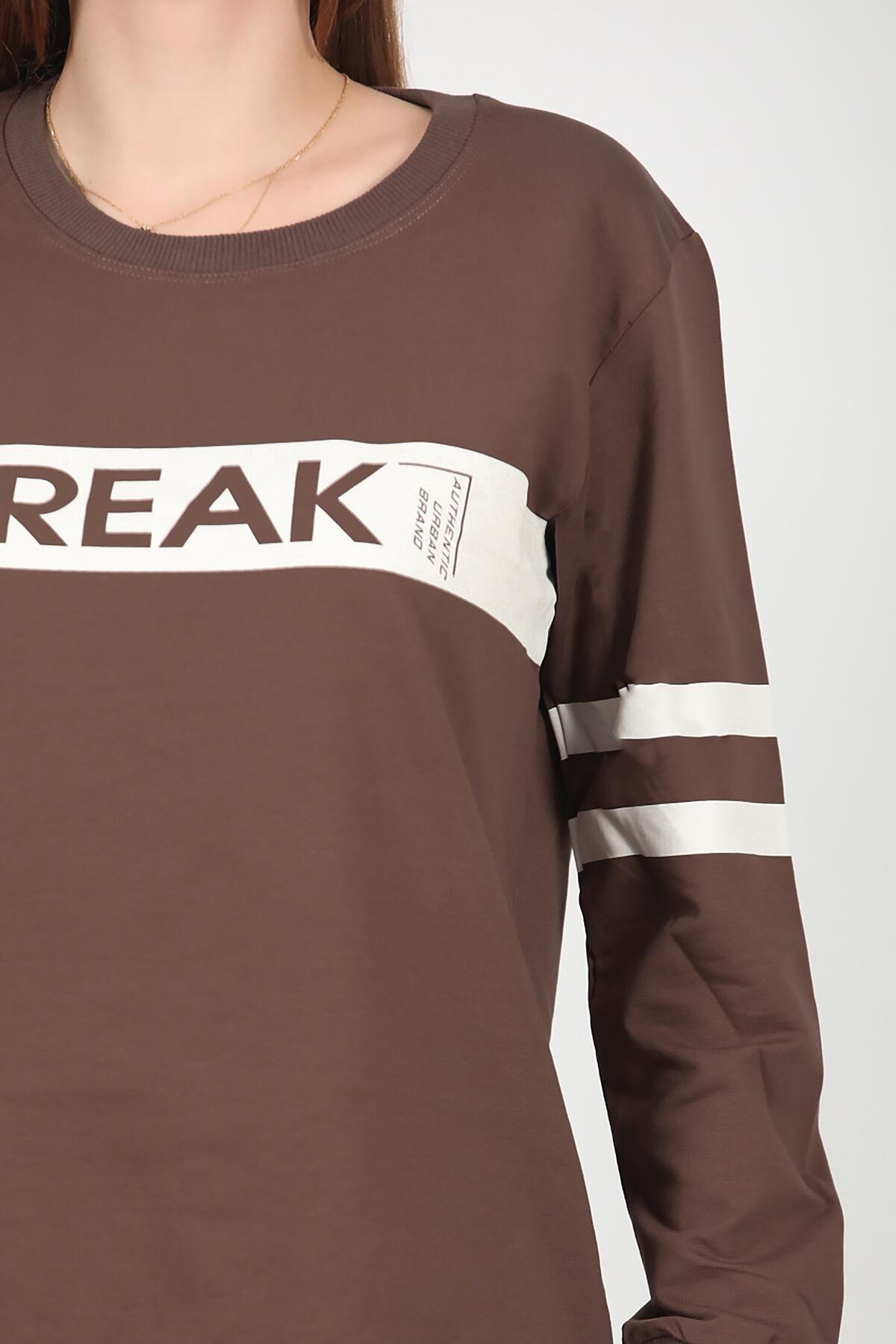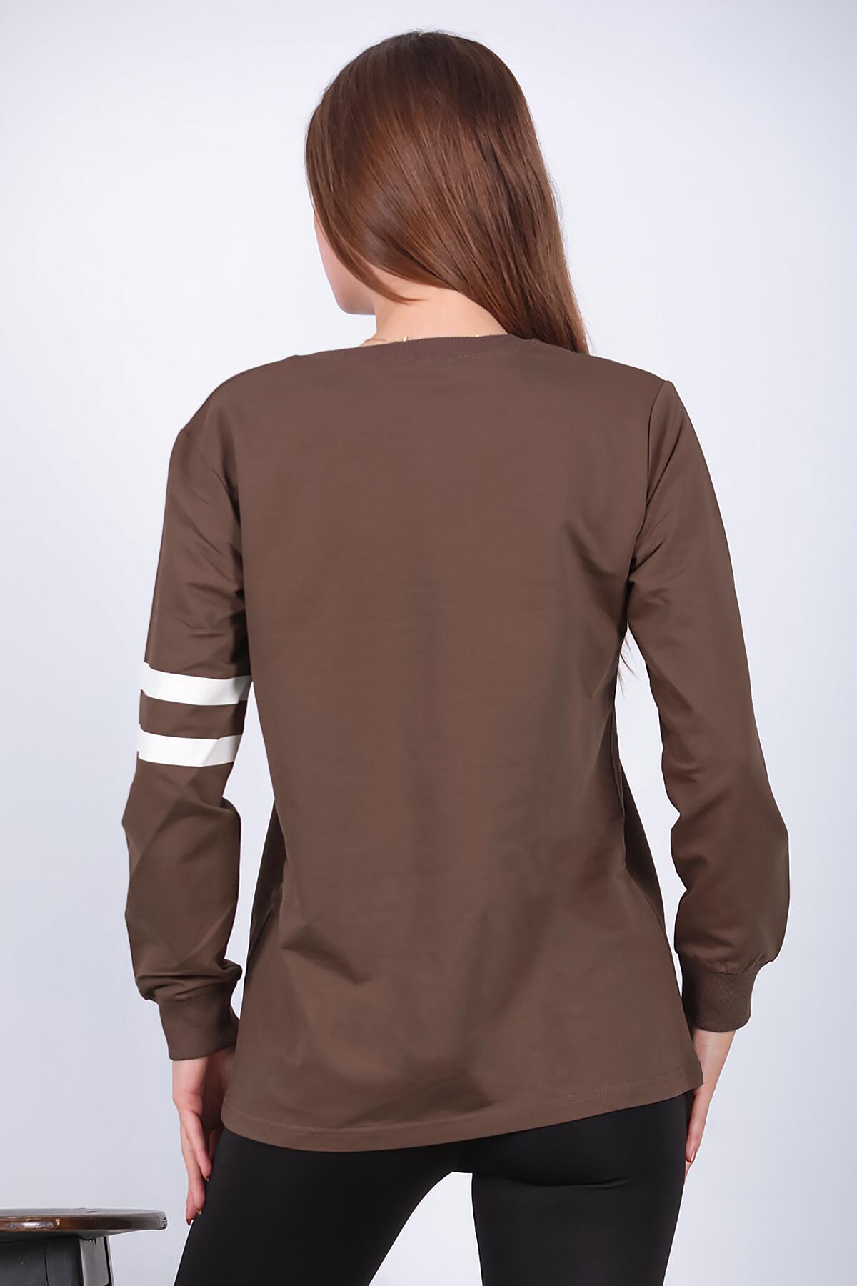Kadın Bisiklet Yaka Sweat Kahverengi