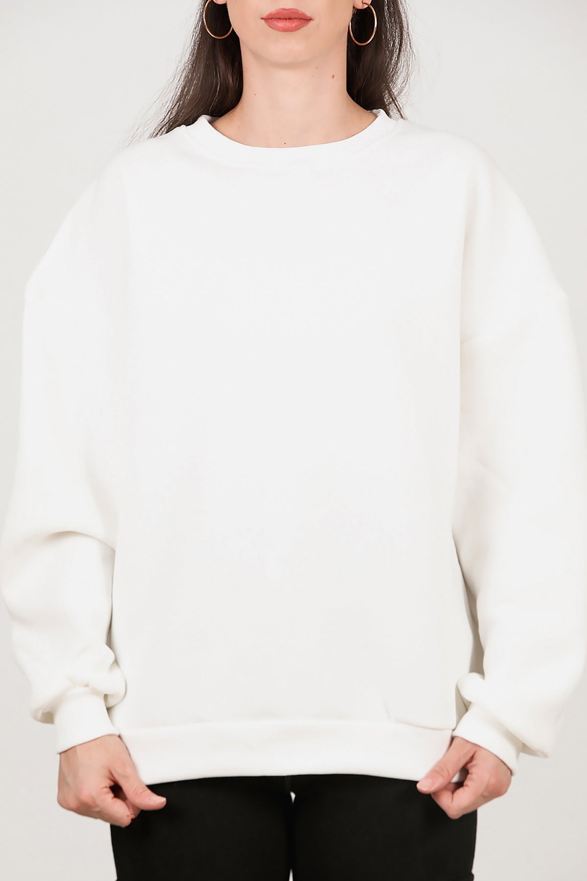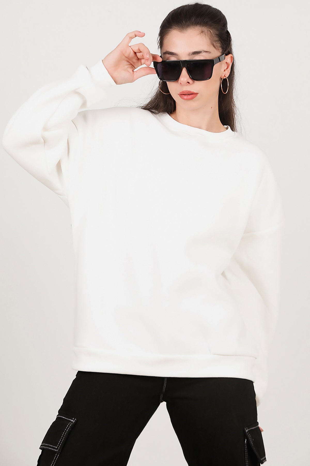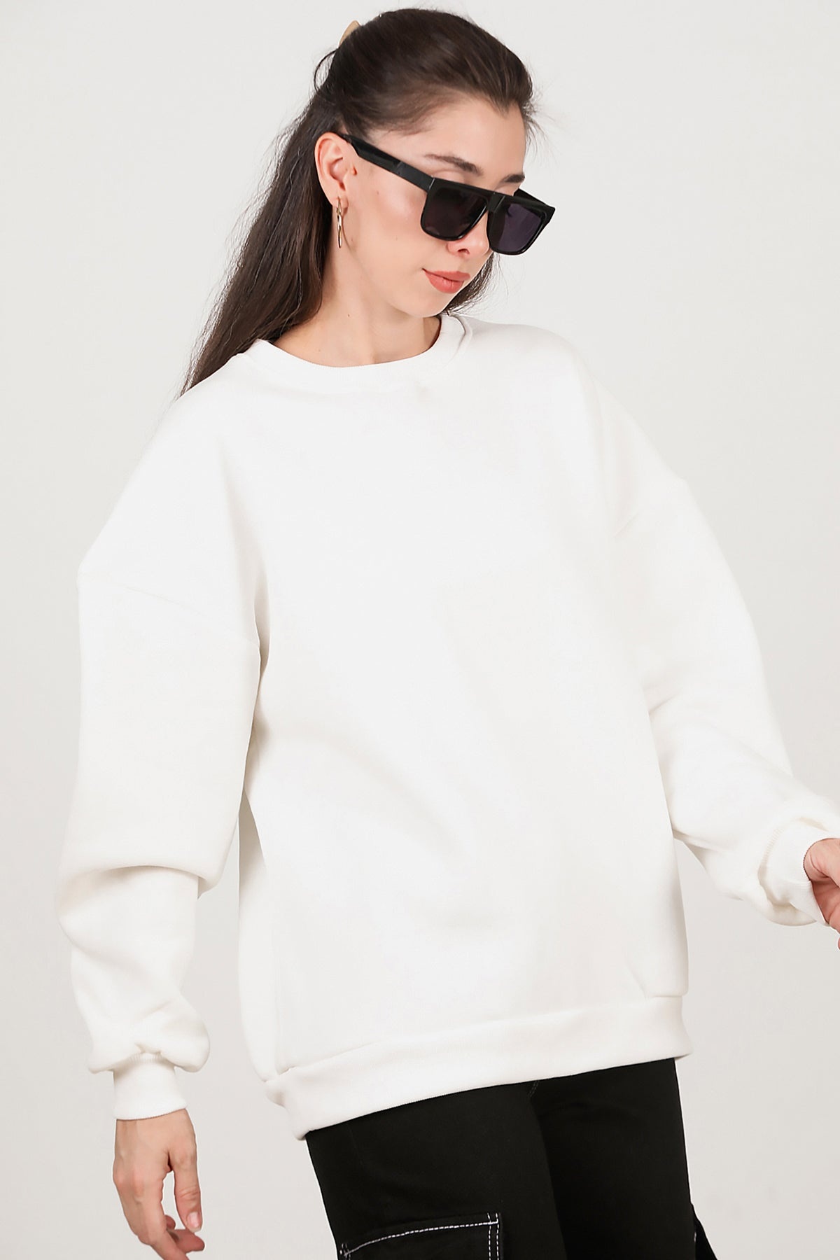 Kadın Bisiklet Yaka Üç İplik Oversize Sweat Ekru
