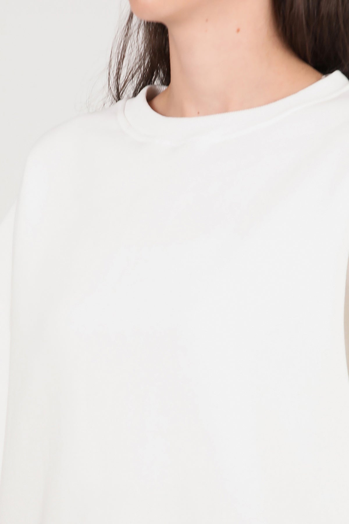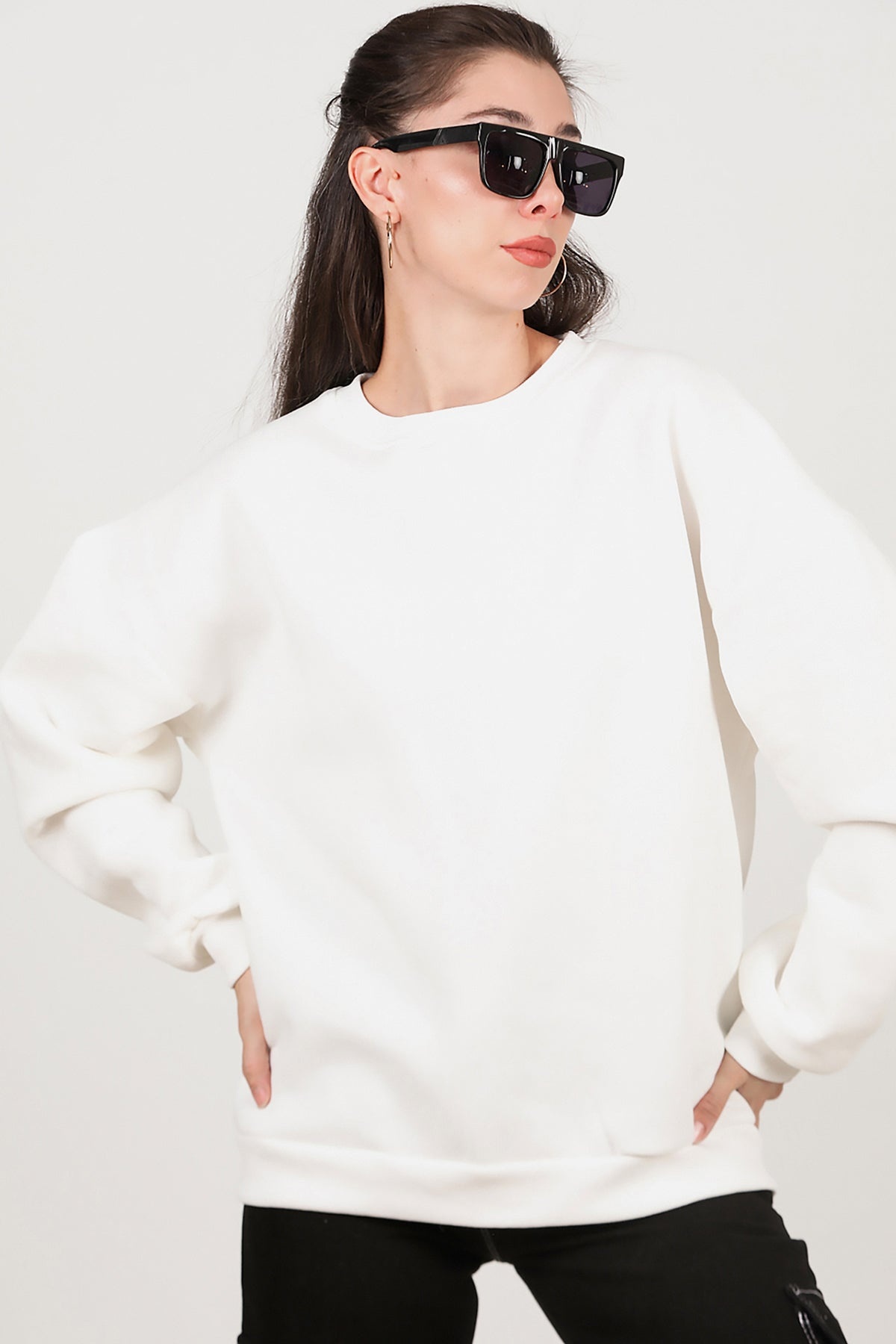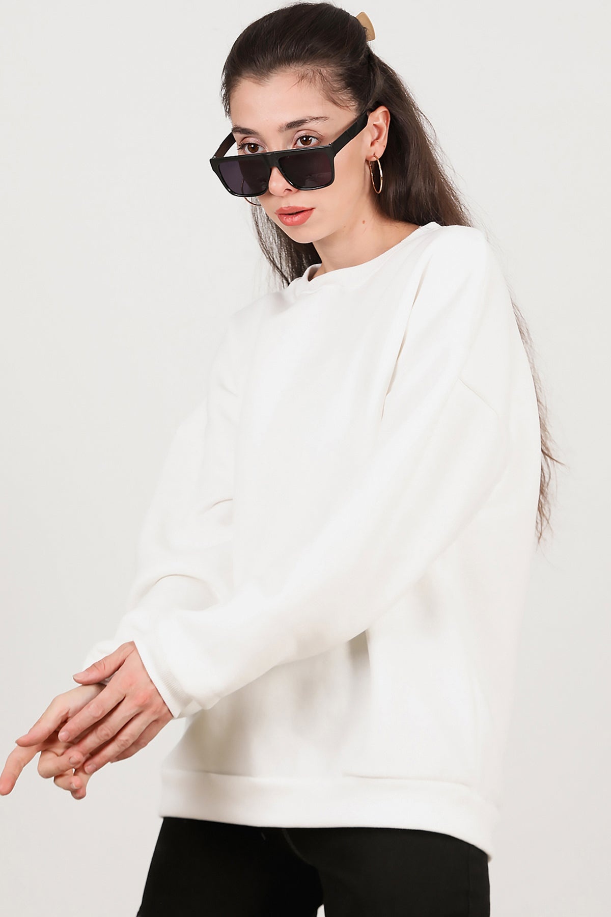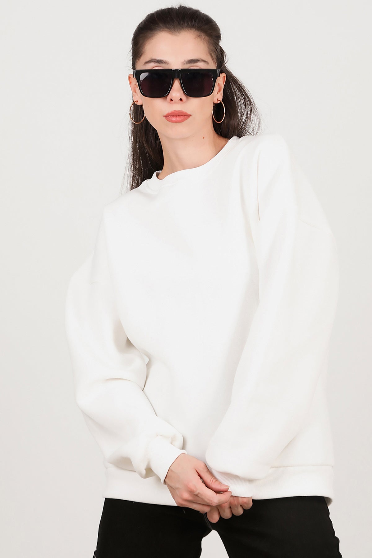 Kadın Bisiklet Yaka Üç İplik Oversize Sweat Ekru