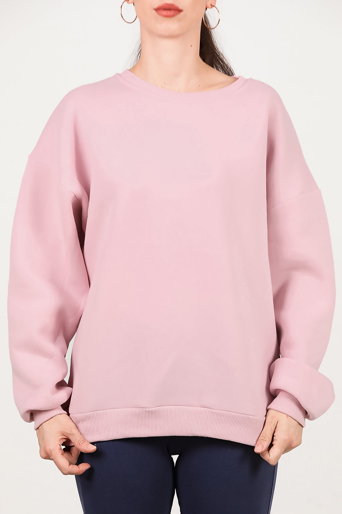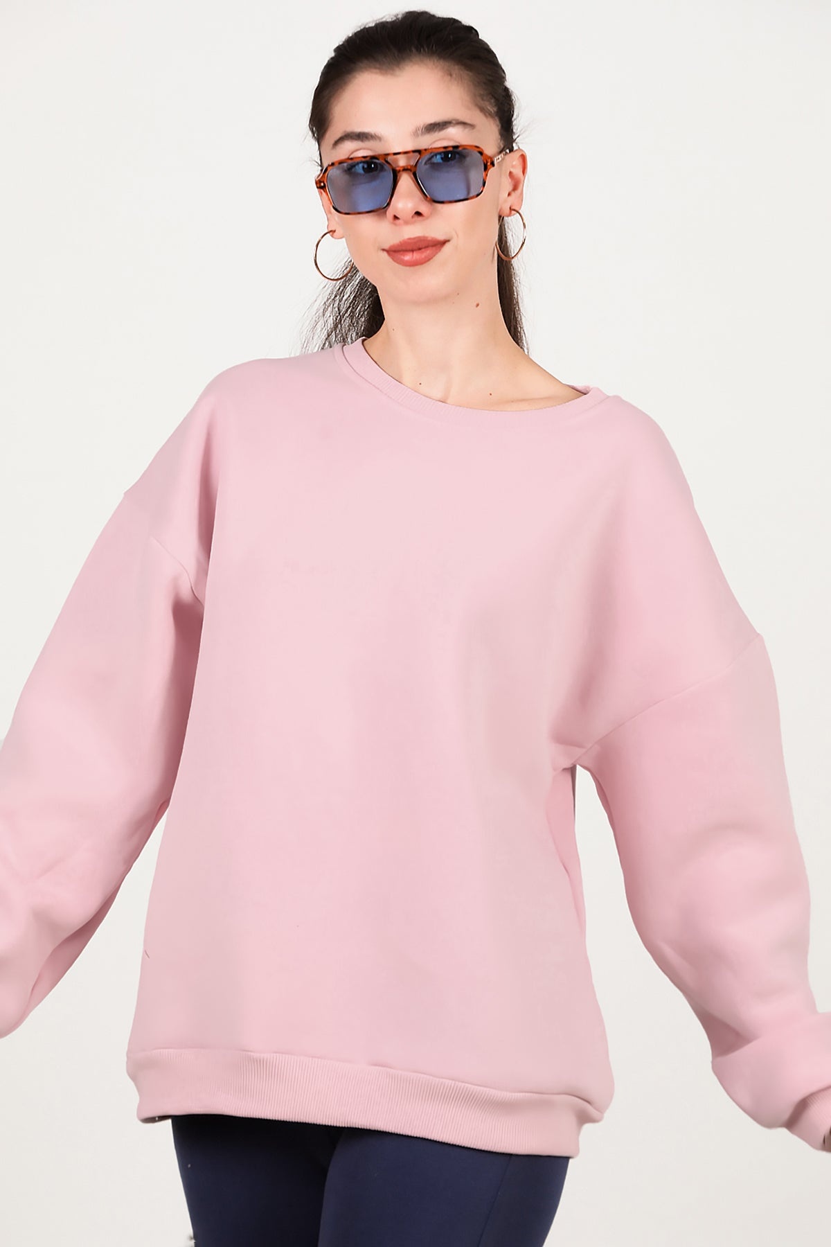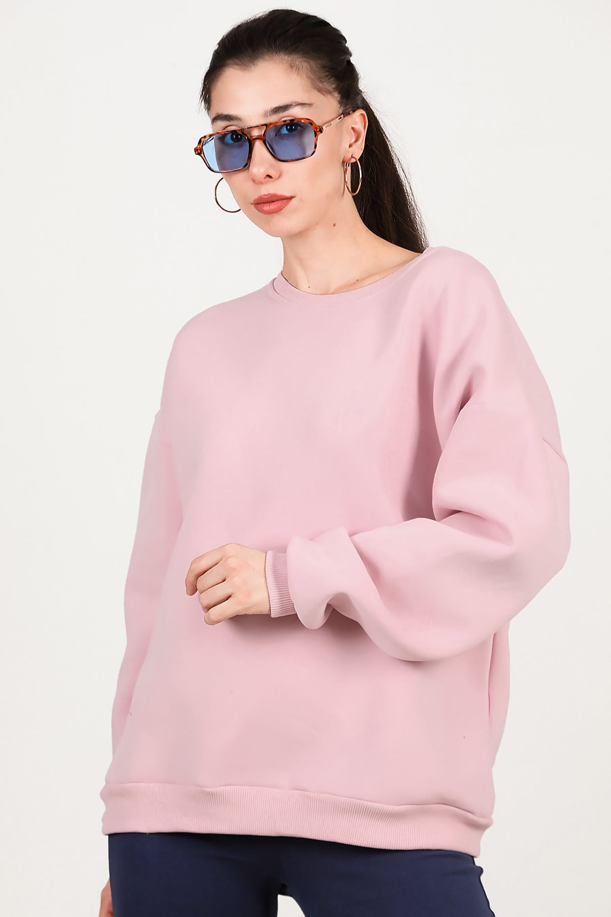 Kadın Bisiklet Yaka Üç İplik Oversize Sweat Pembe