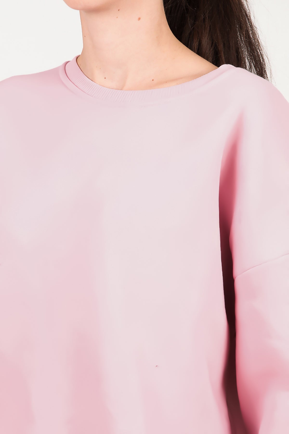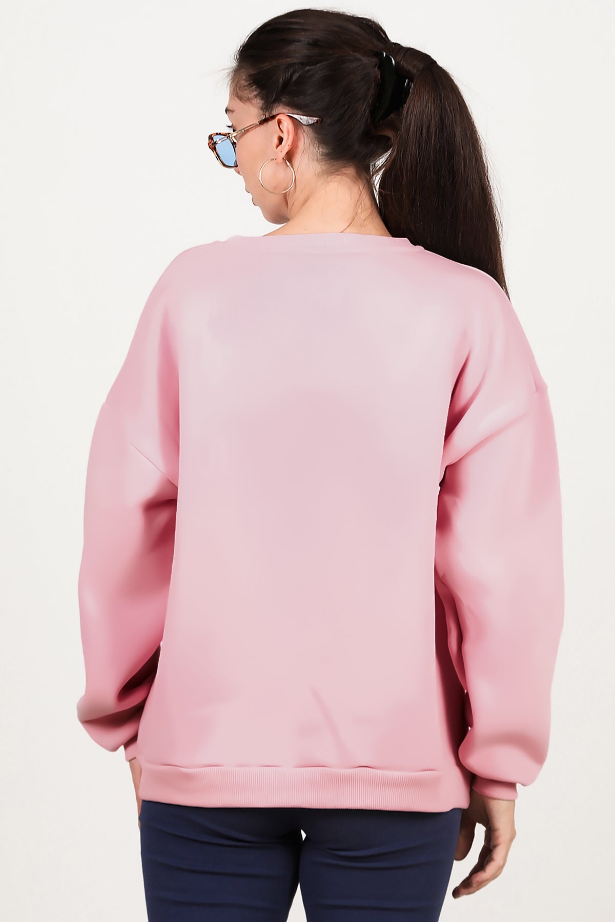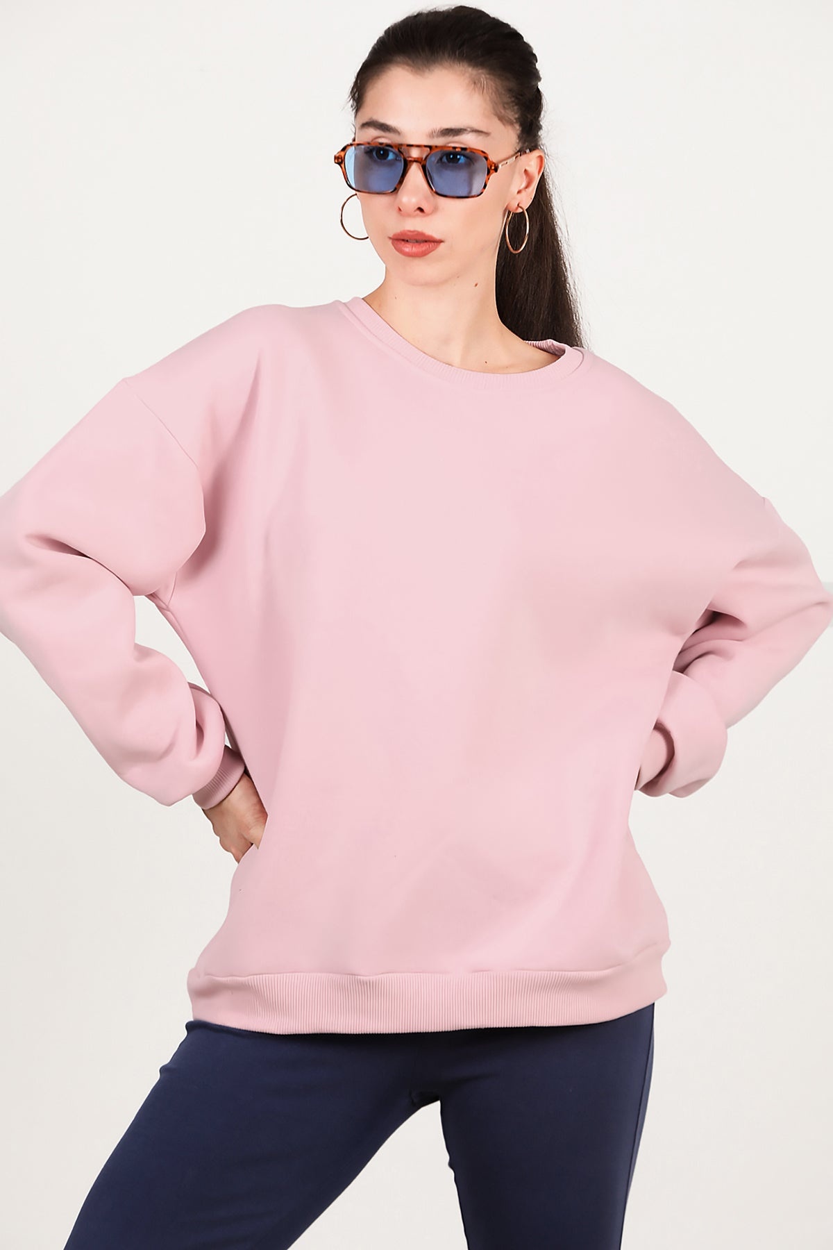 Kadın Bisiklet Yaka Üç İplik Oversize Sweat Pembe