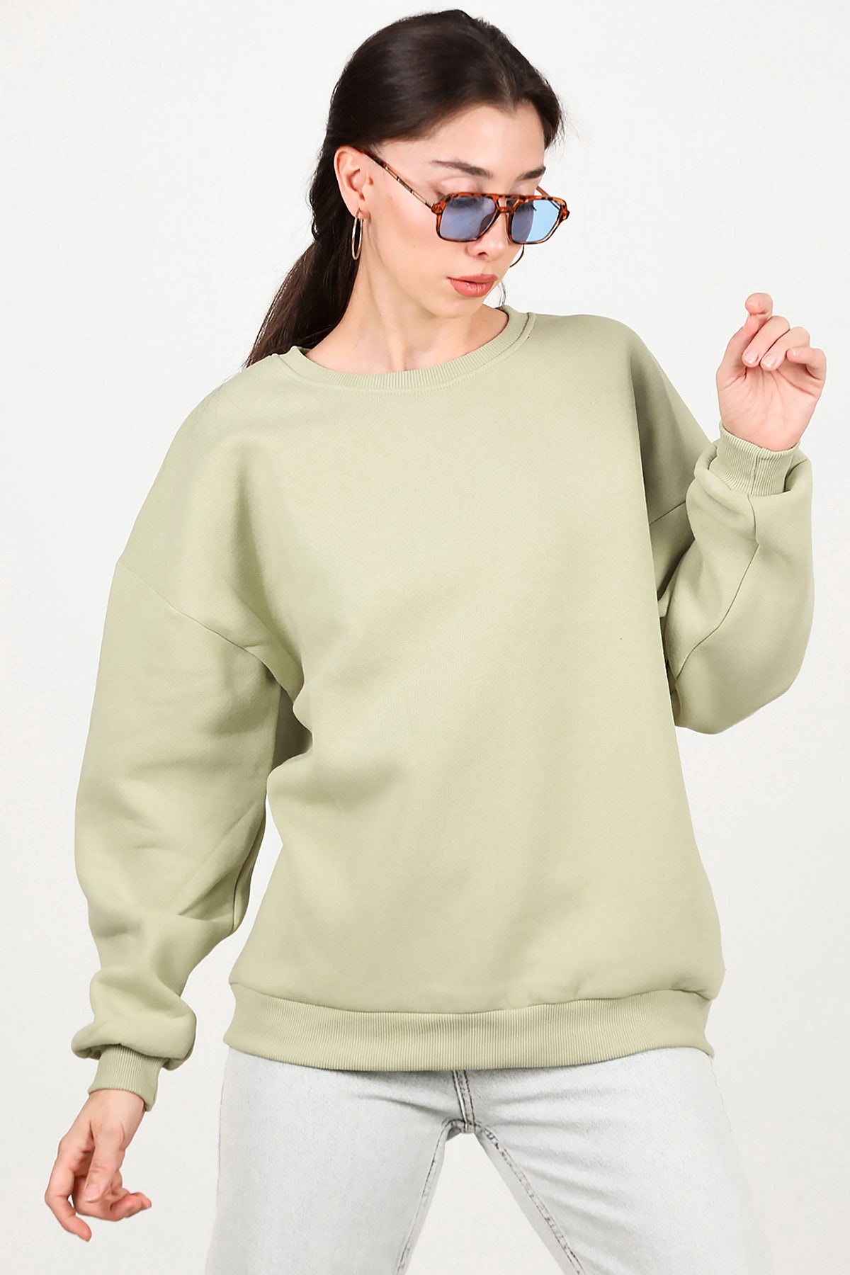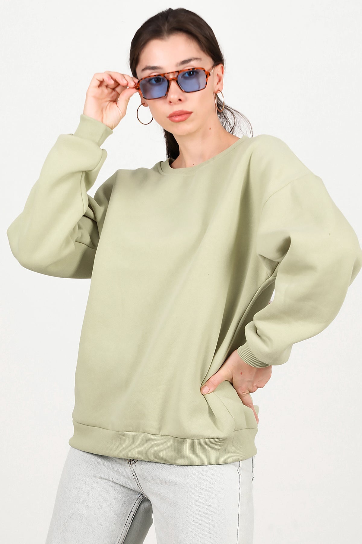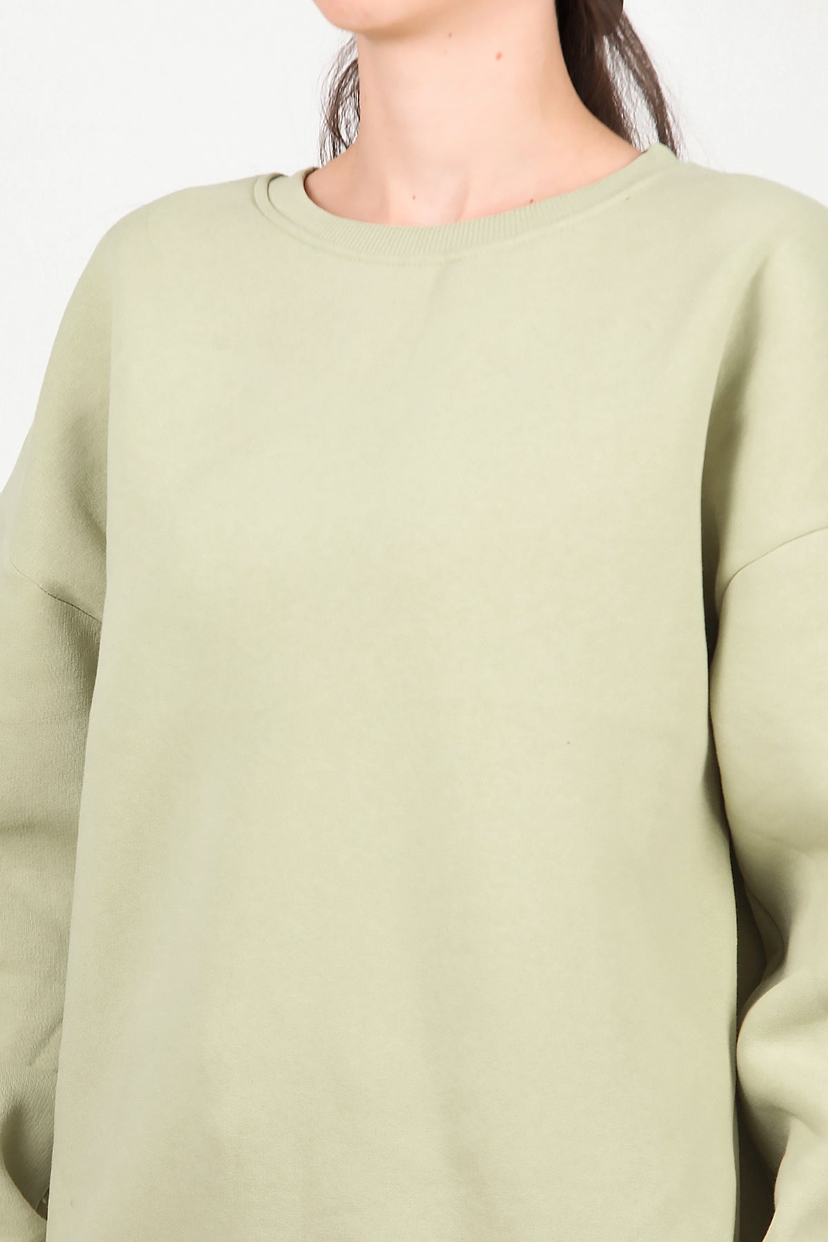 Kadın Bisiklet Yaka Üç İplik Oversize Sweat Yeşil