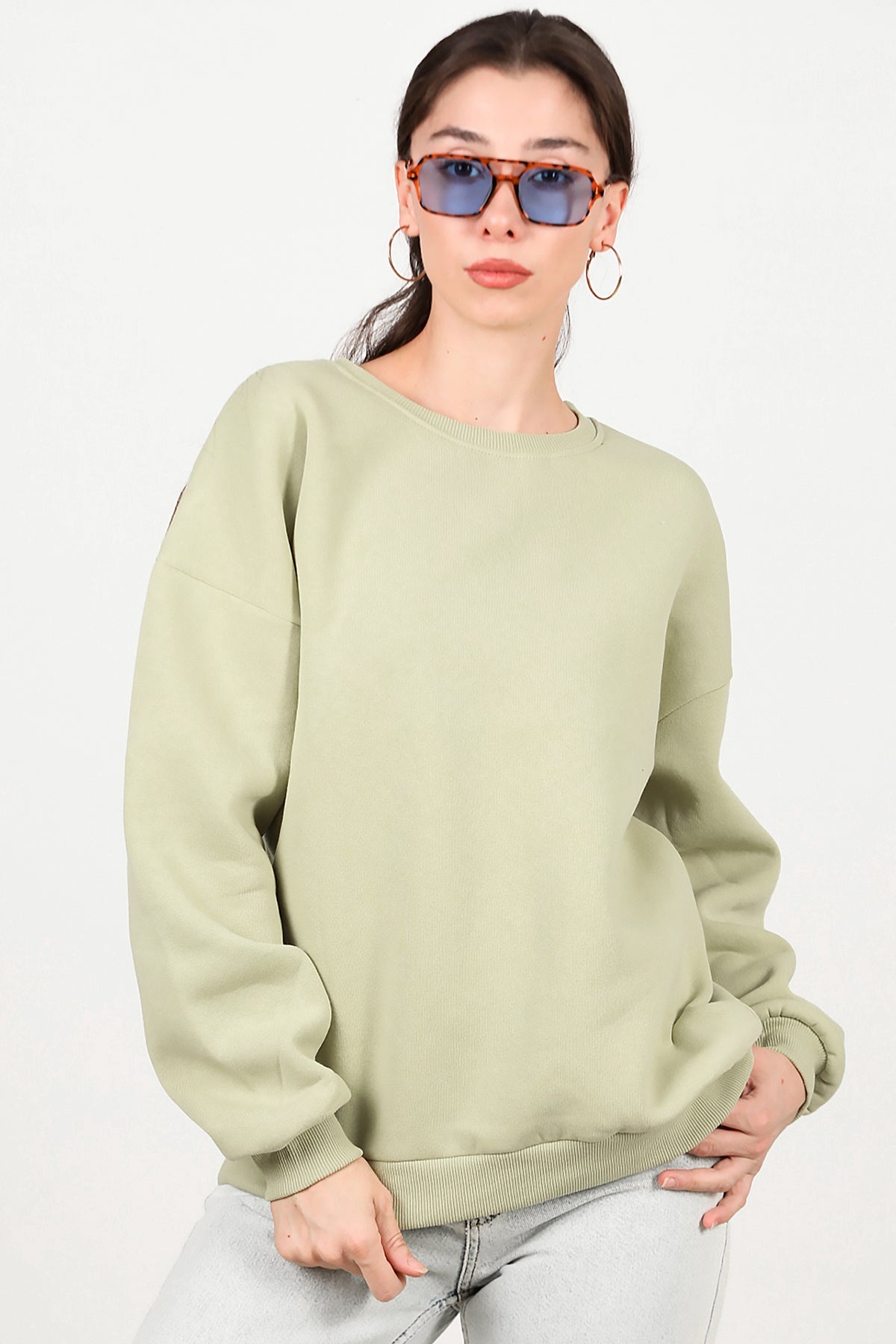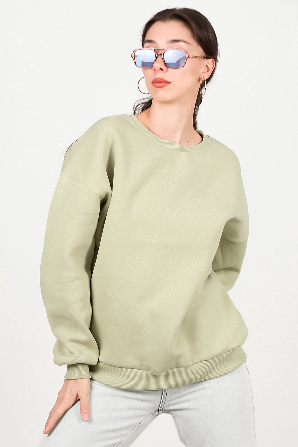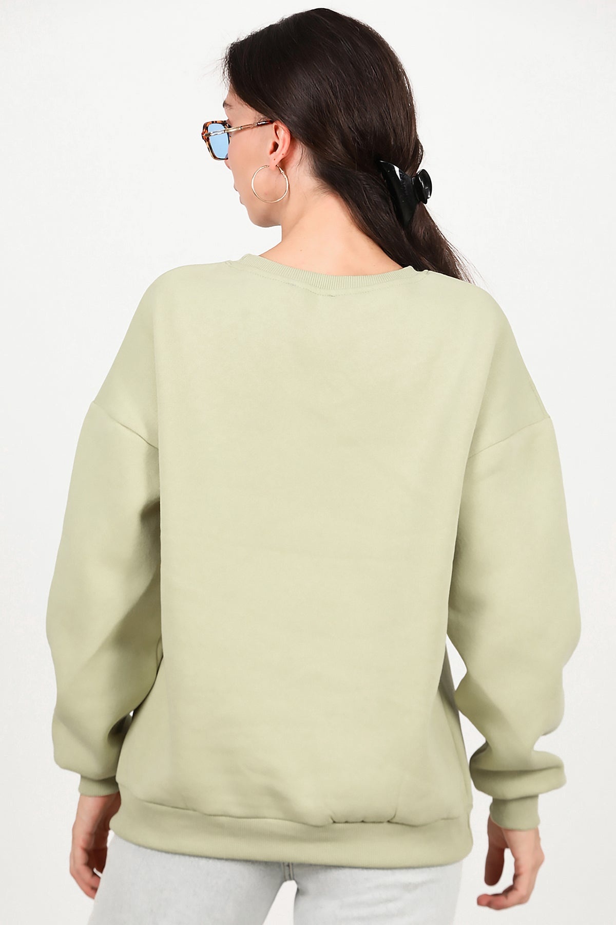 Kadın Bisiklet Yaka Üç İplik Oversize Sweat Yeşil