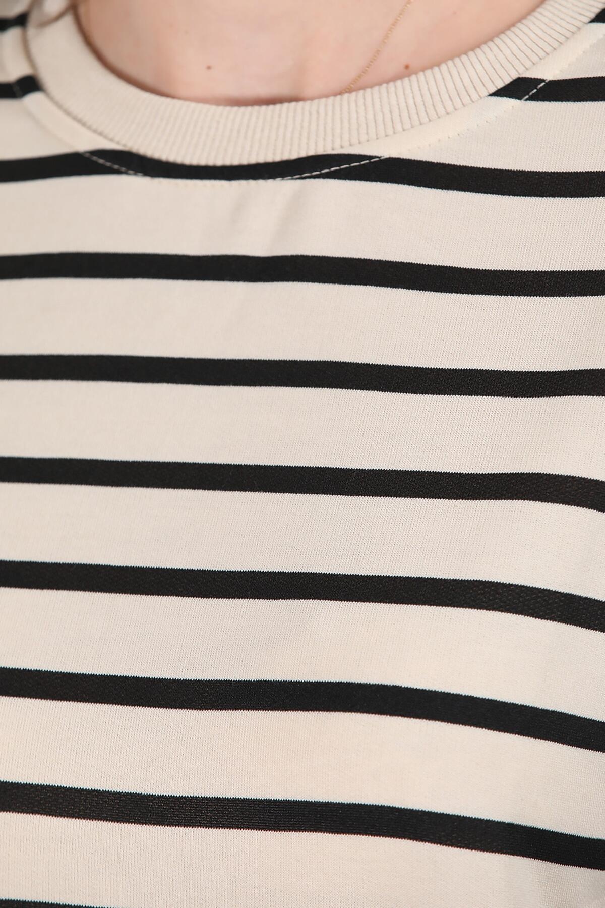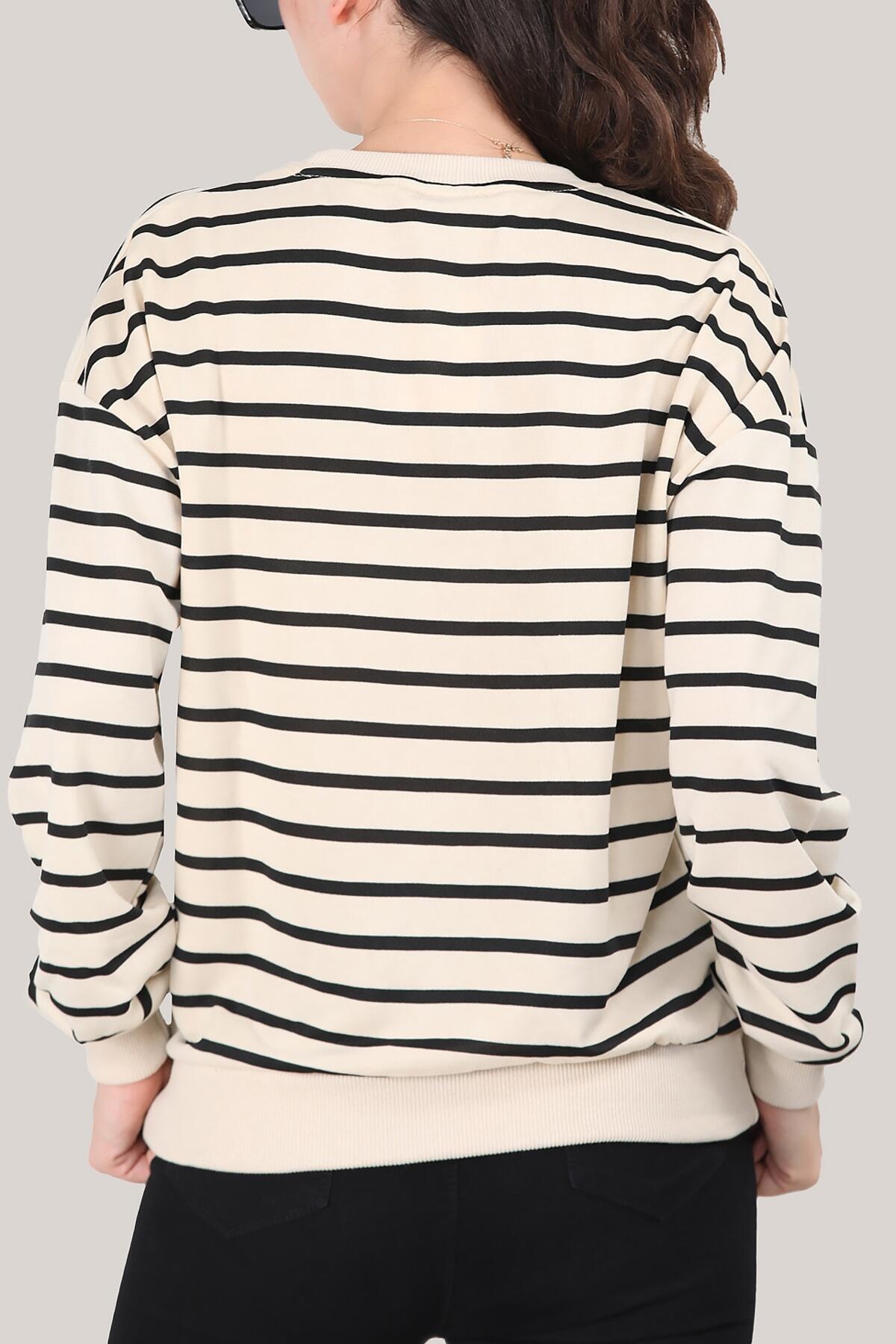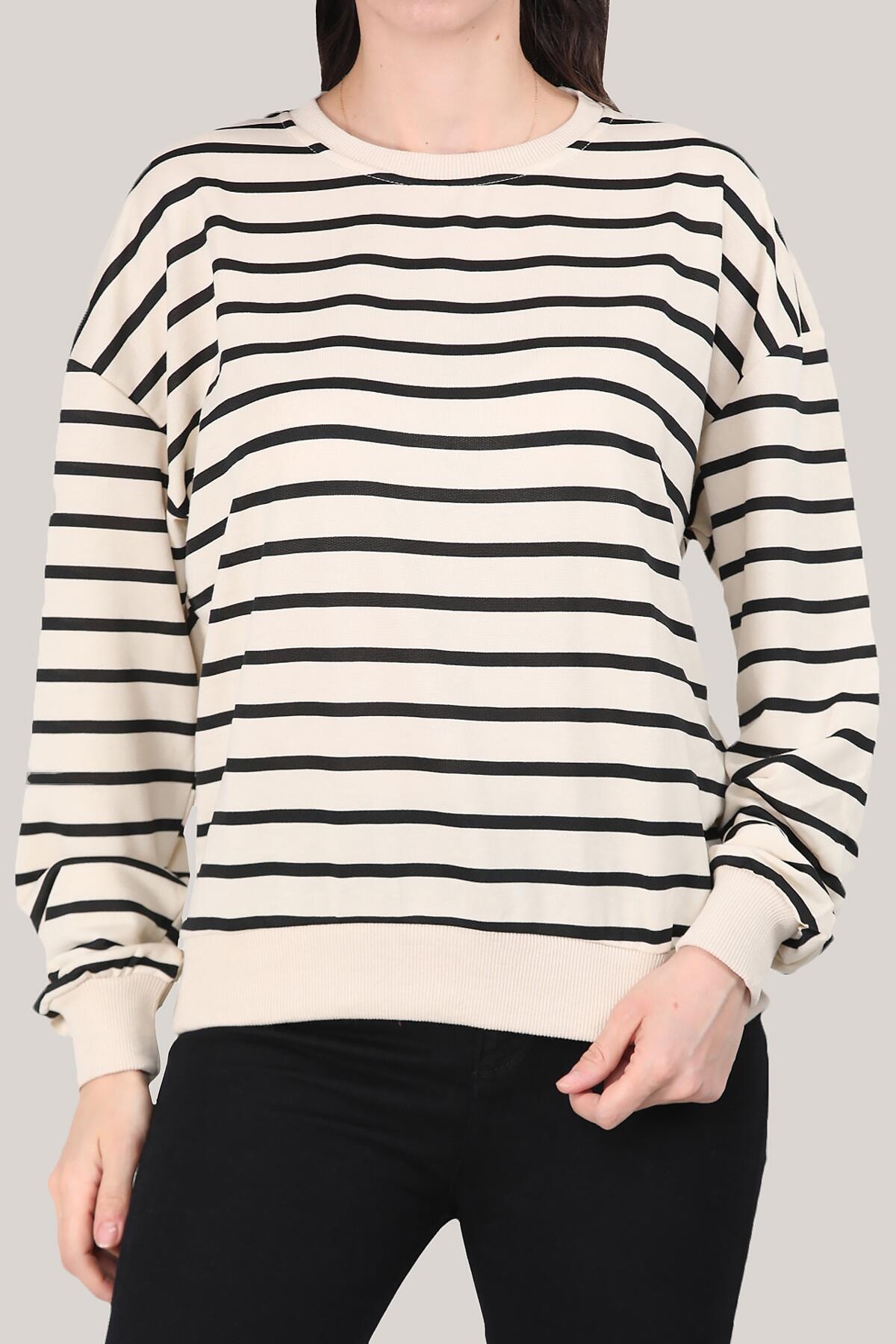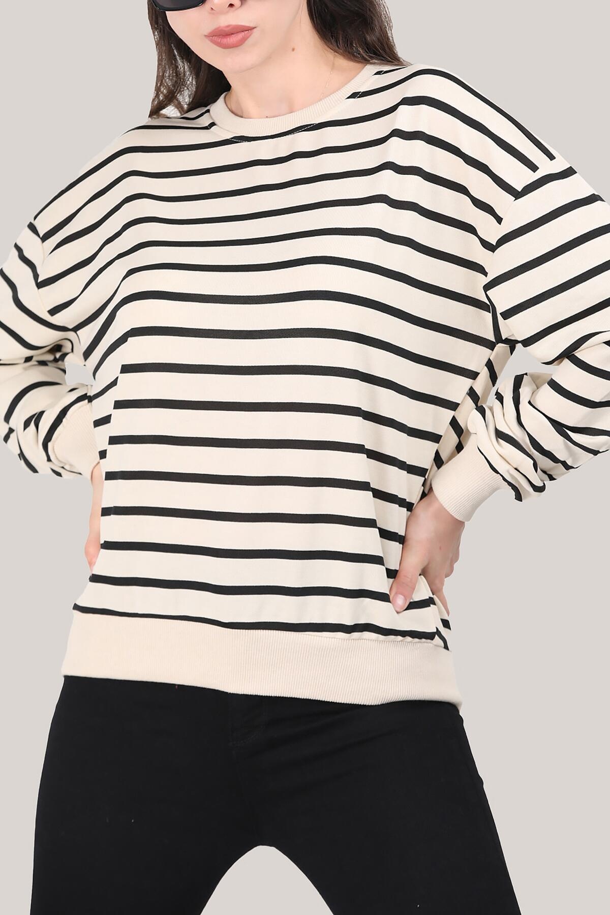 Kadın Bisiklet Yaka Yatay Çizgili Kolları Lastikli Sweat Siyah Siyah