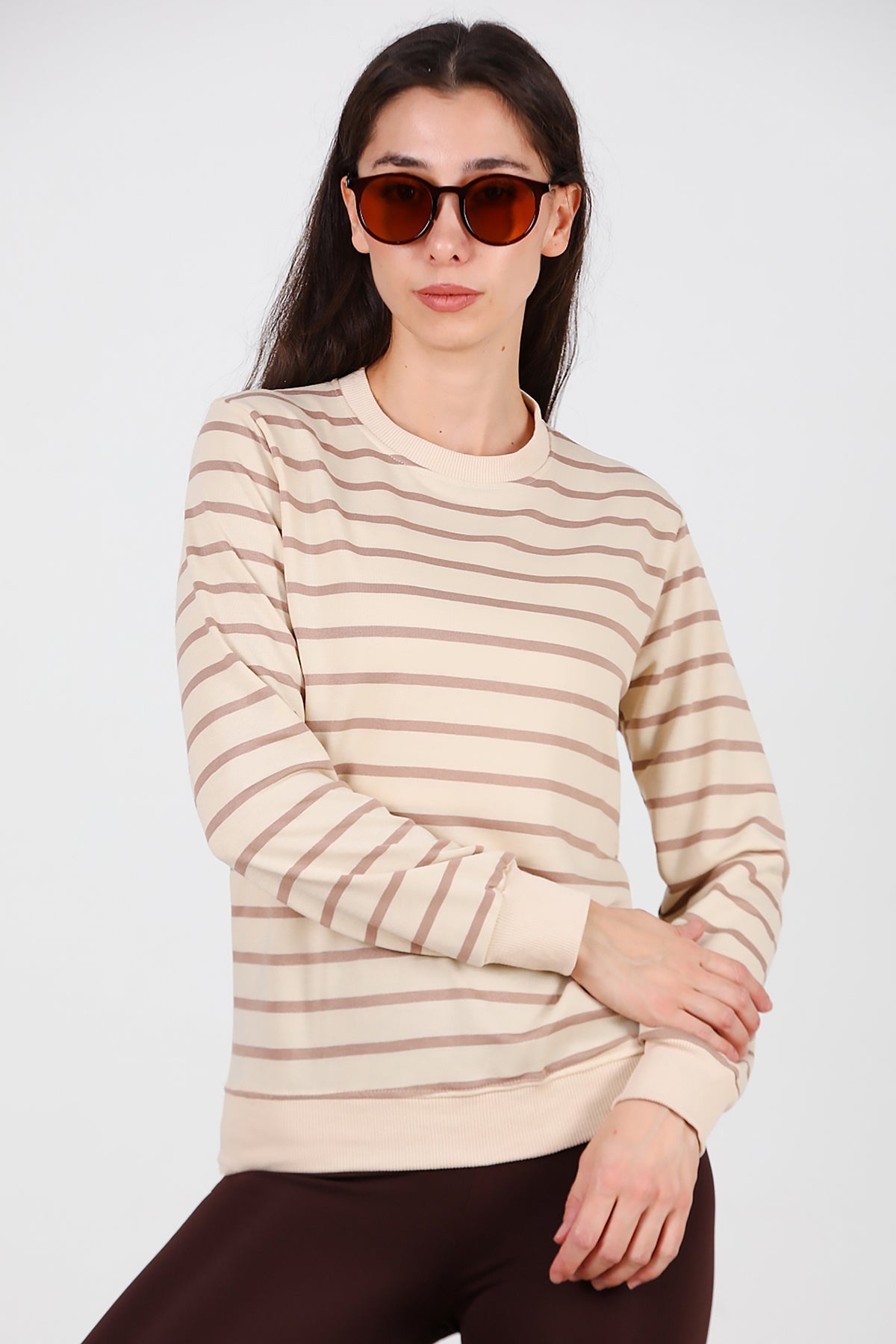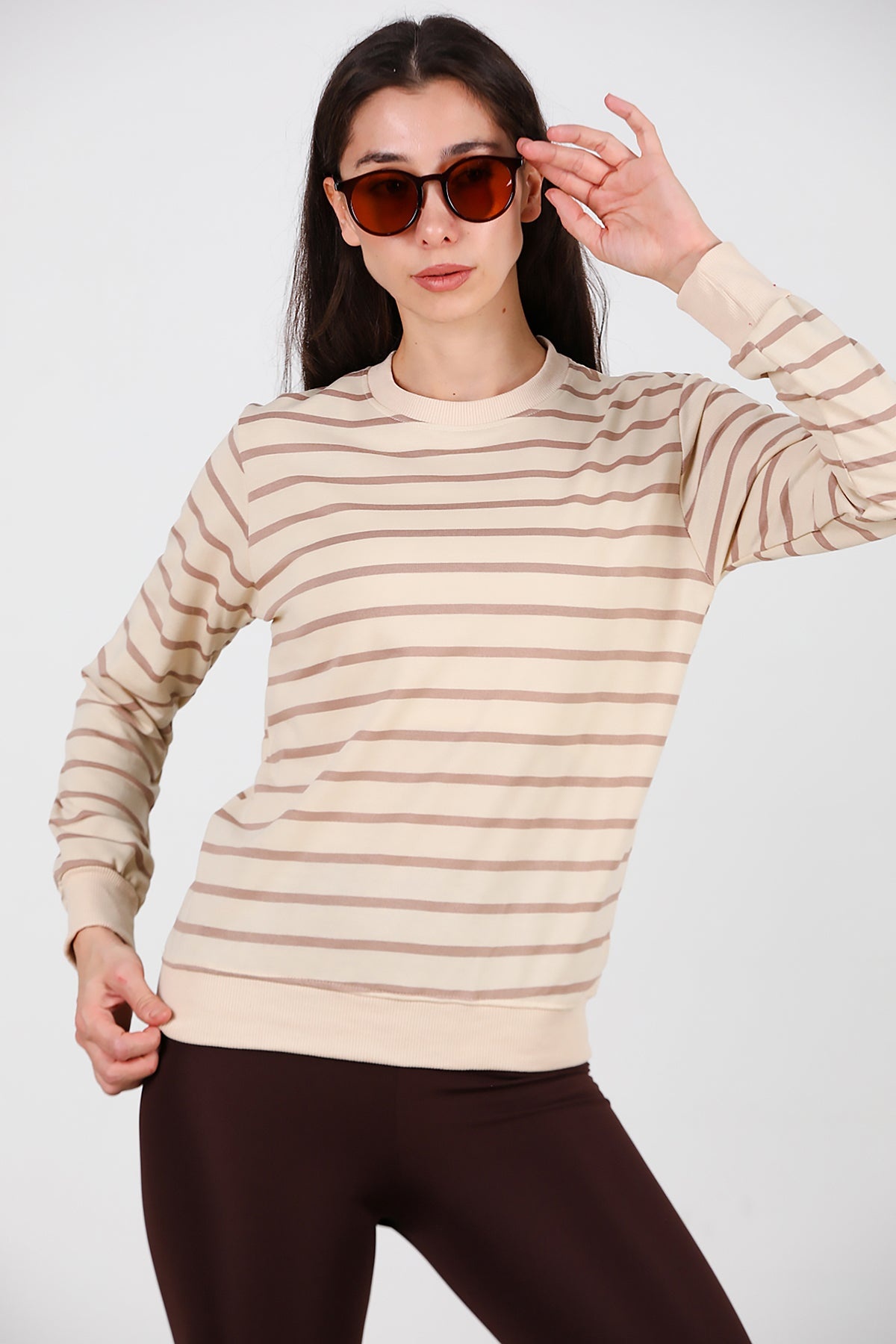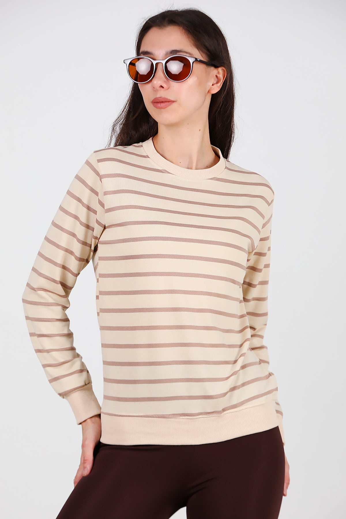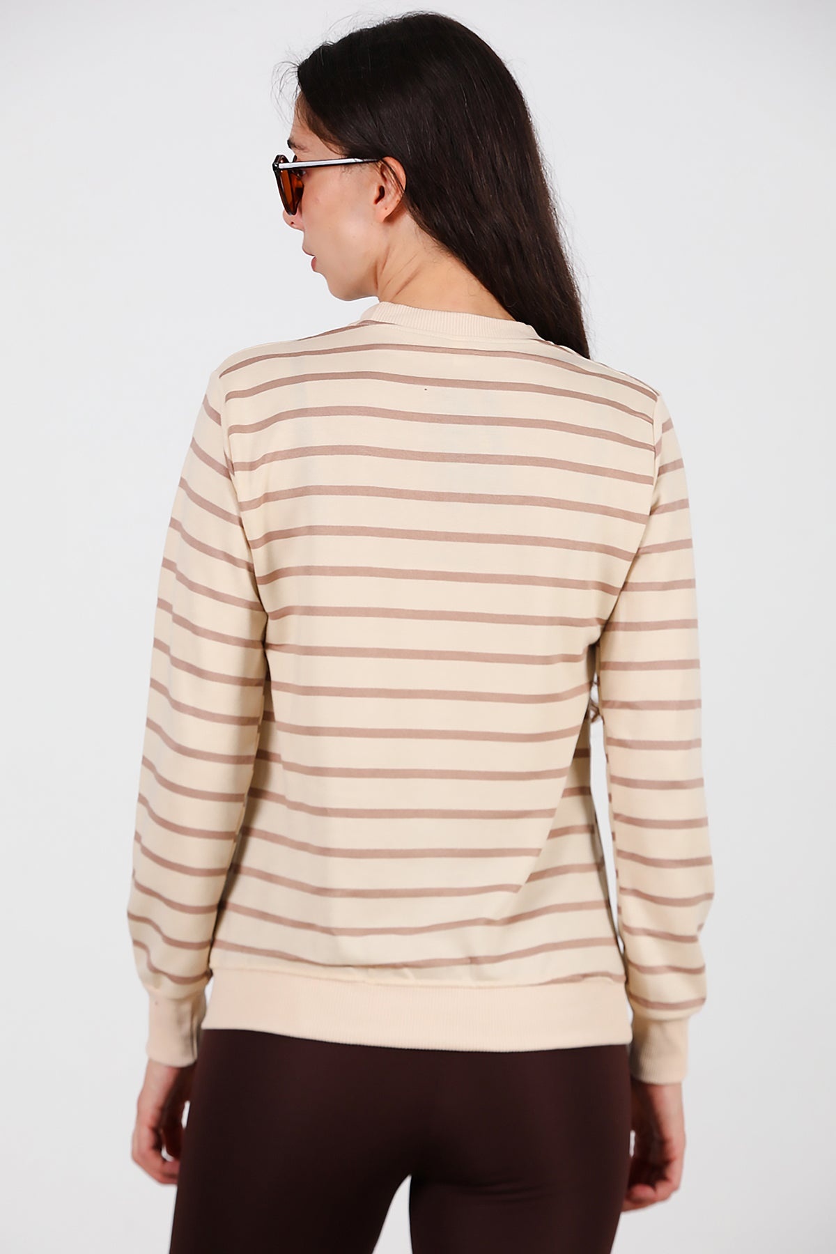 Kadın Çizgili Bisiklet Yaka Sweet Vizon