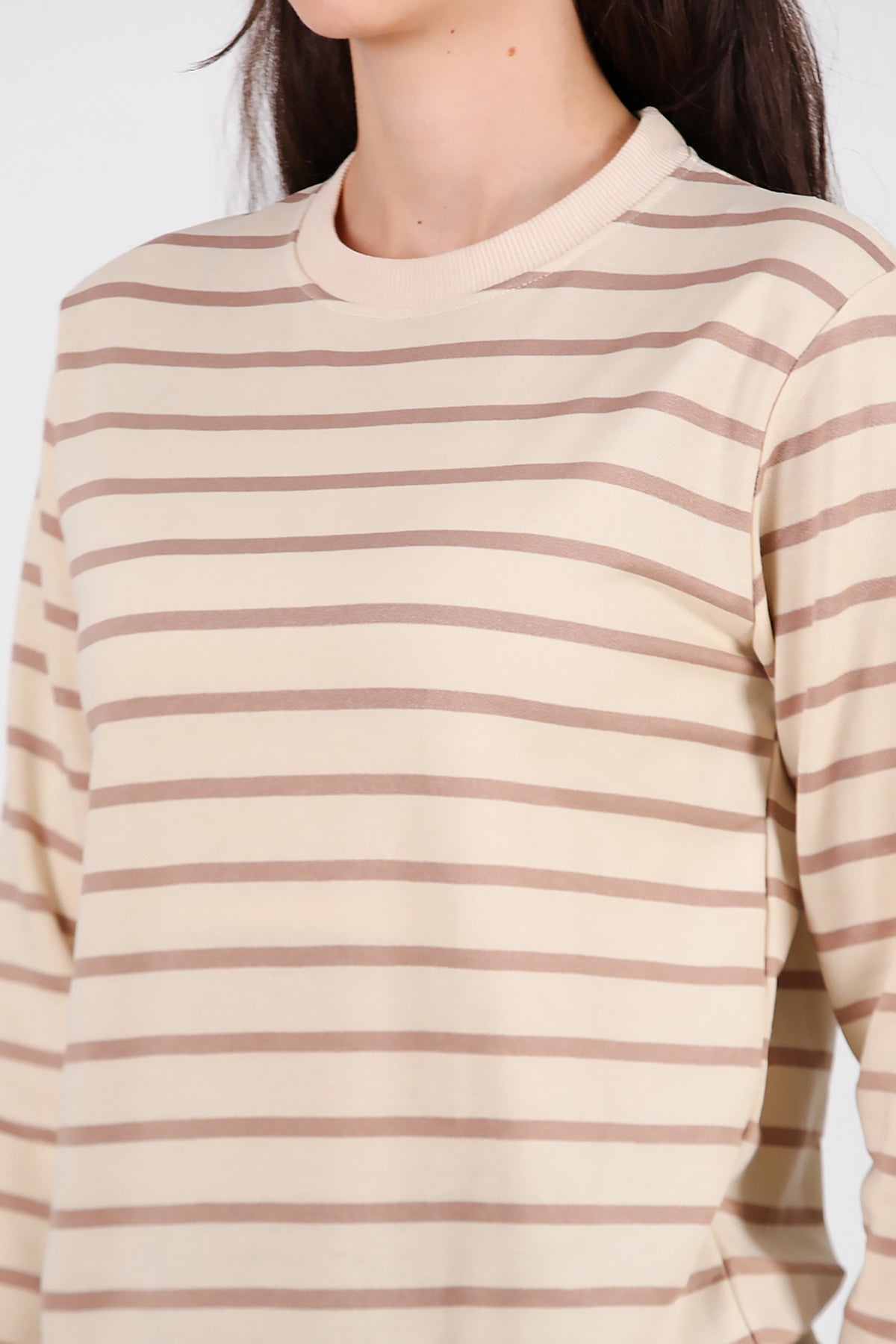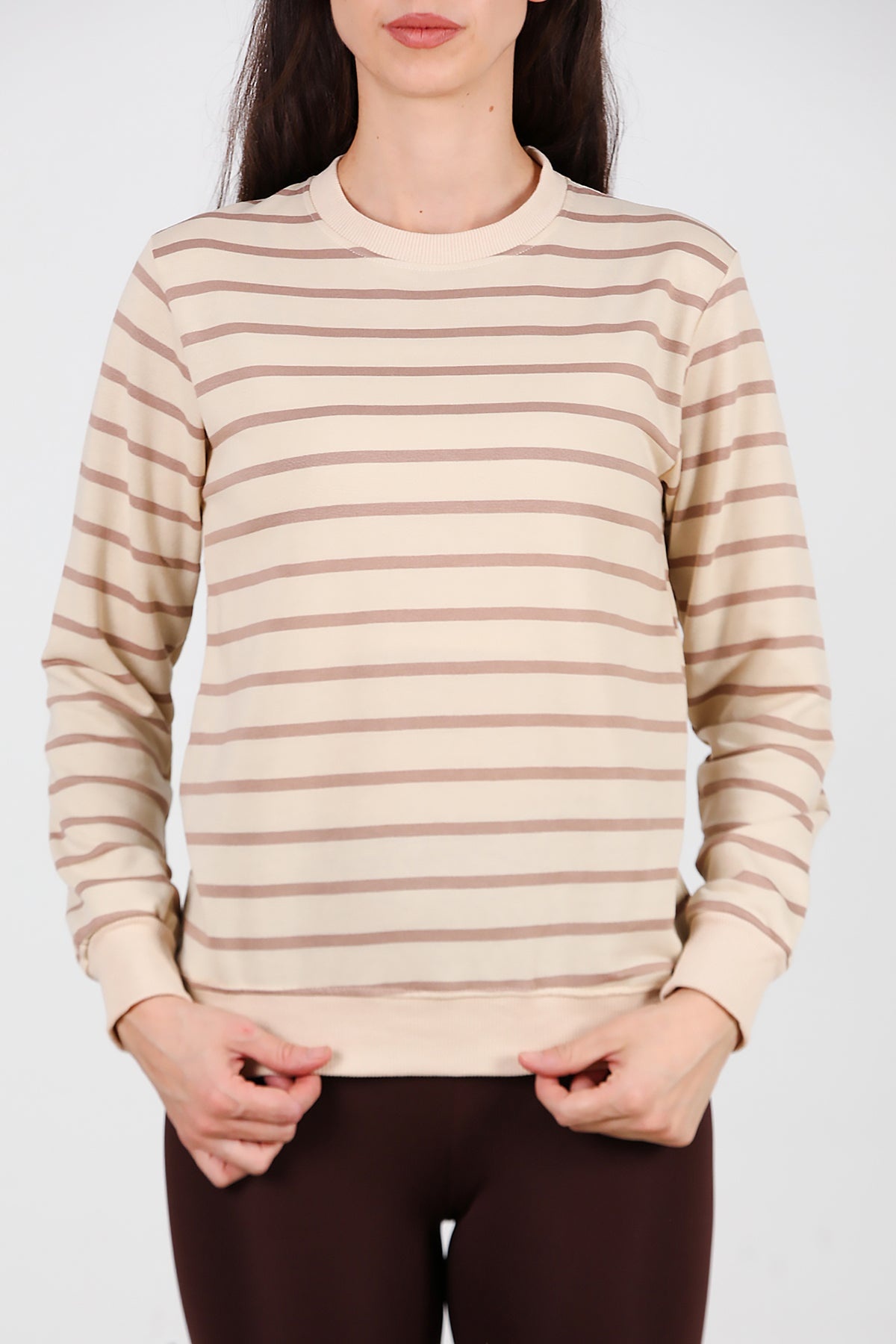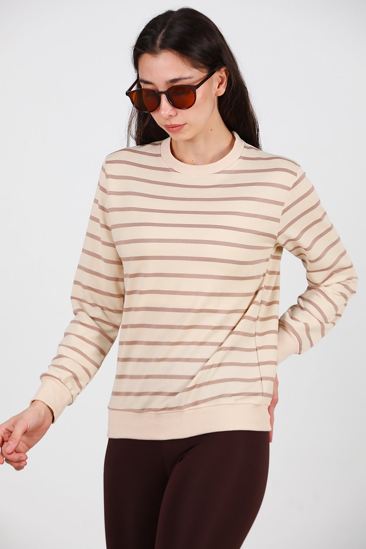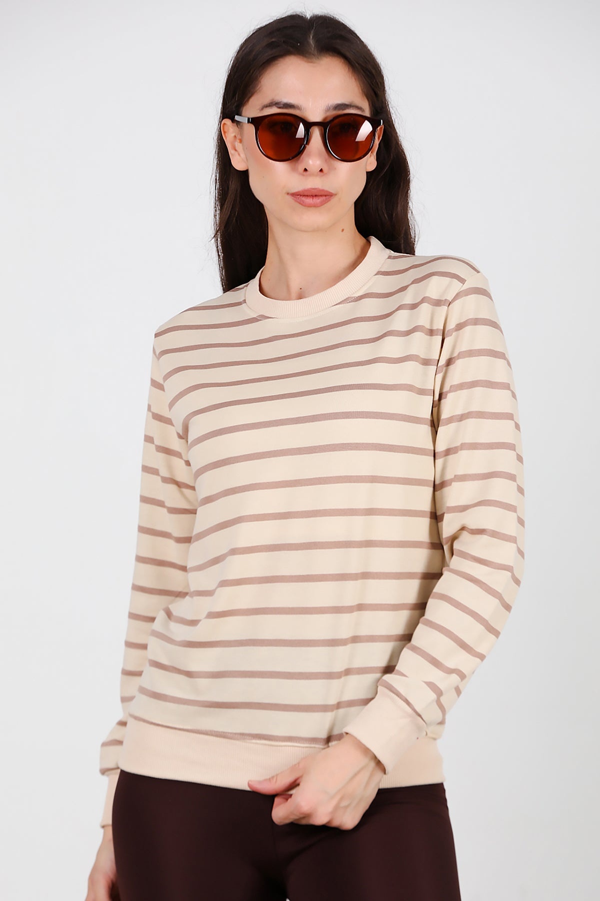 Kadın Çizgili Bisiklet Yaka Sweet Vizon