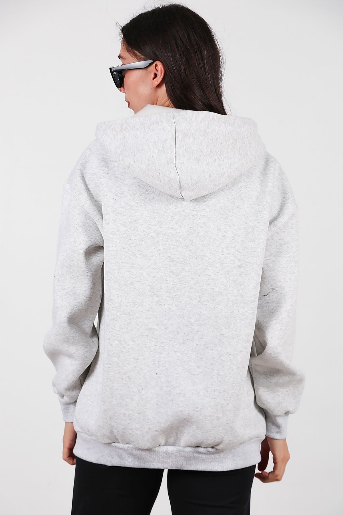 Kadın Kapşonlu Fermuarlı Oversize Üç İplik Sweat Ekru