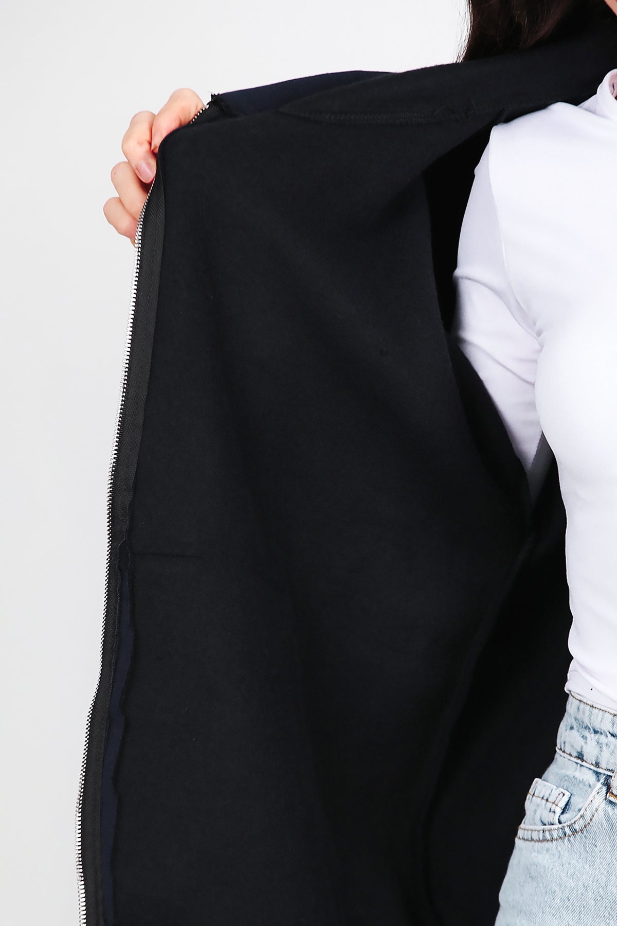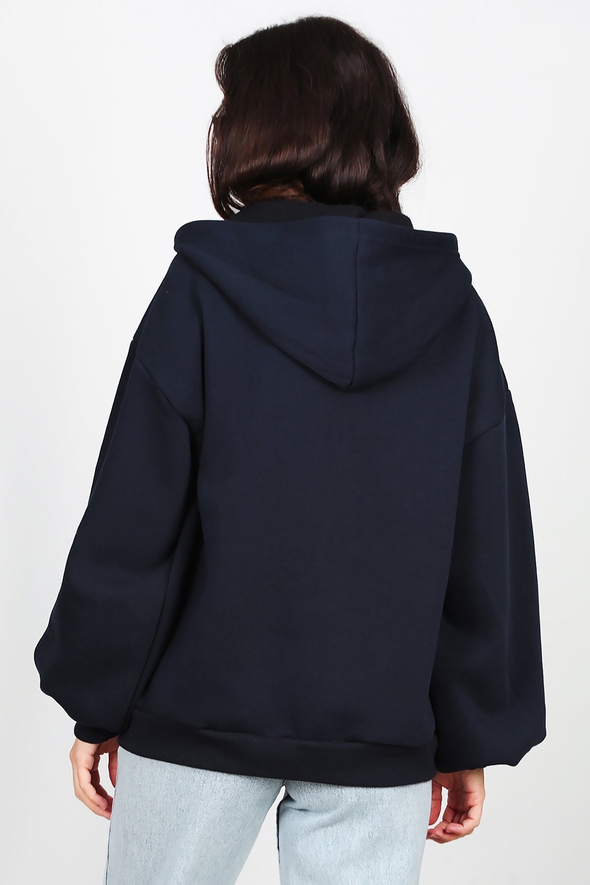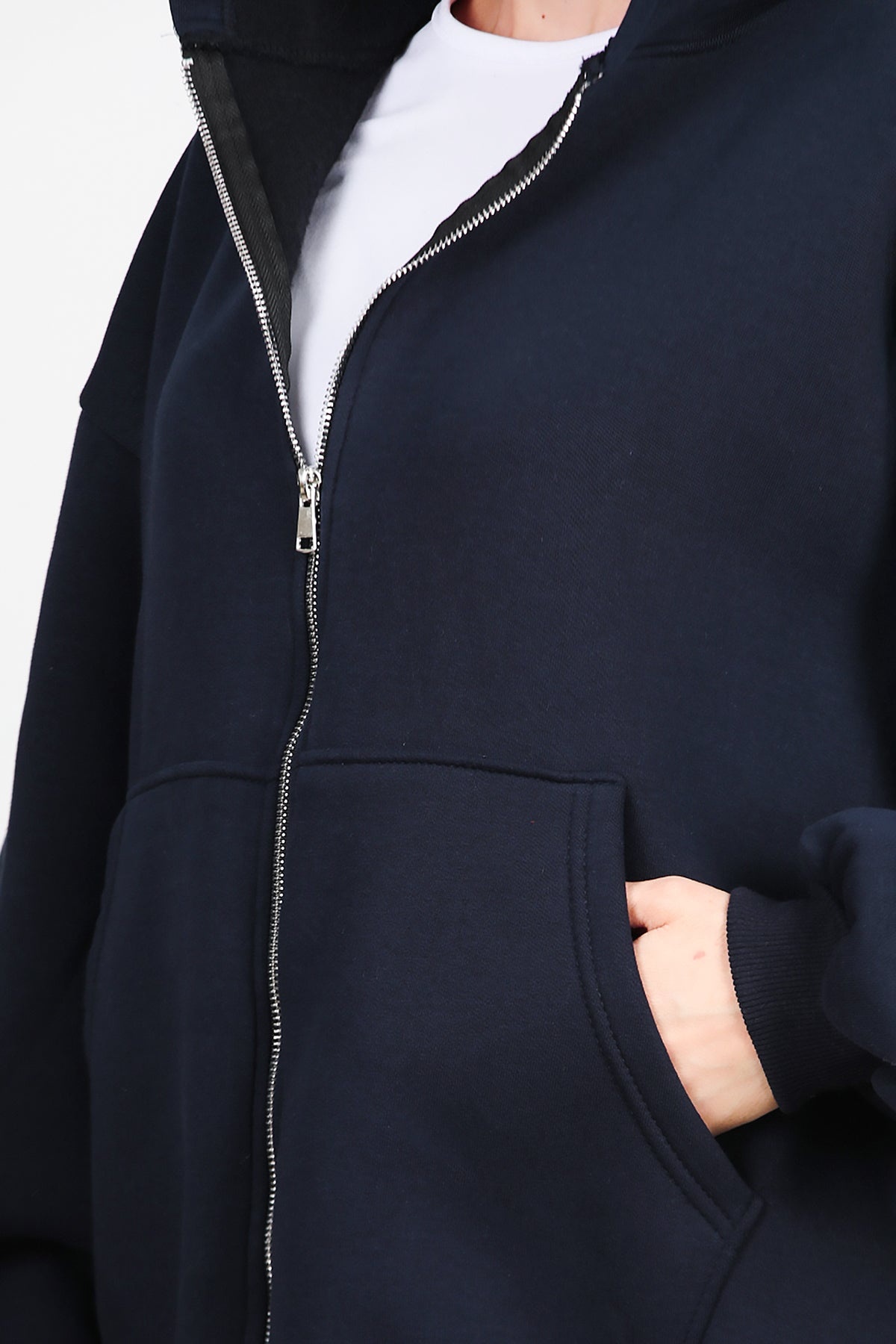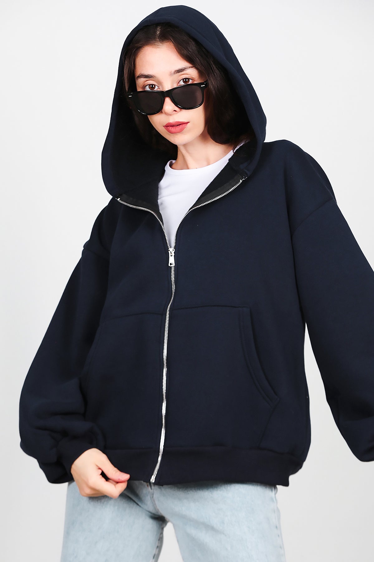 Kadın Kapşonlu Fermuarlı Şardonlu Sweat Lacivert