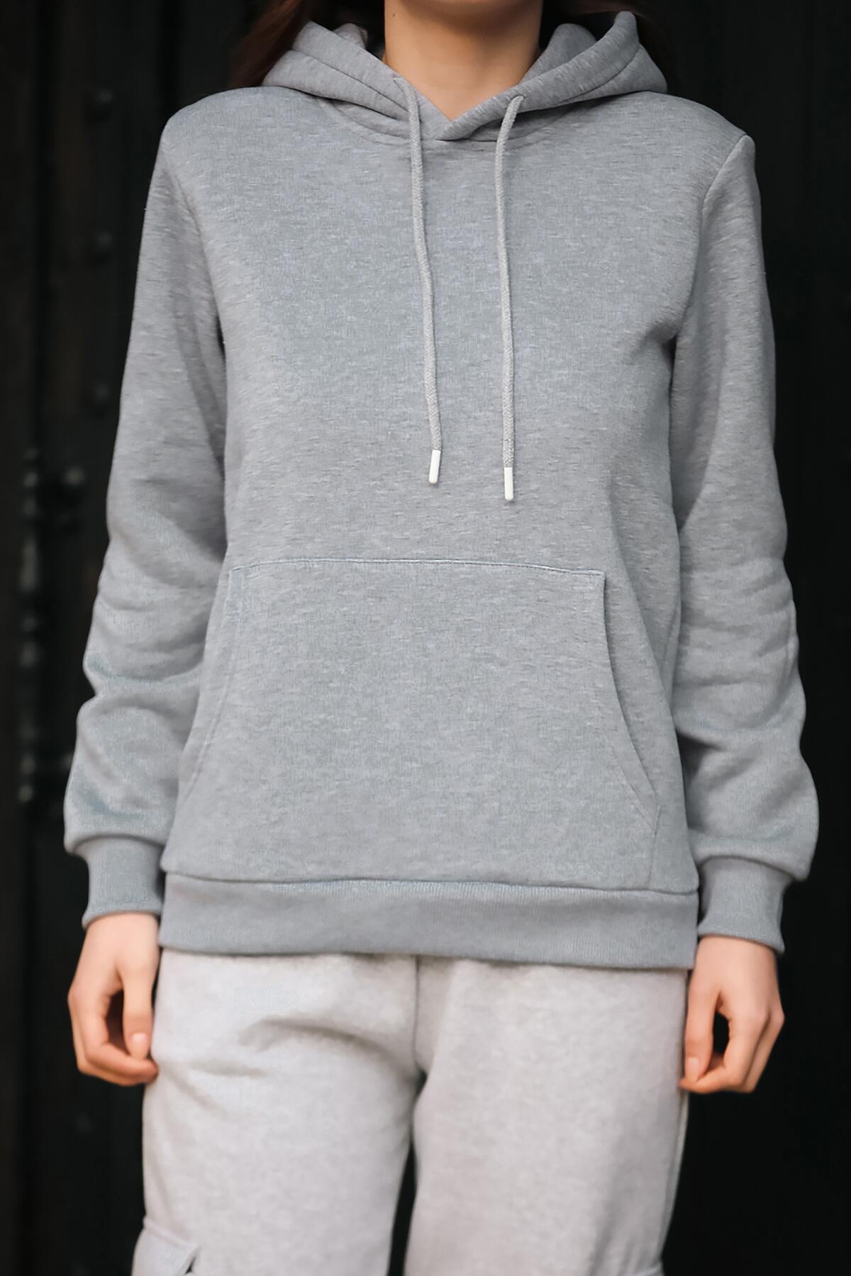 Kadın Kapşonlu Sweat Gri