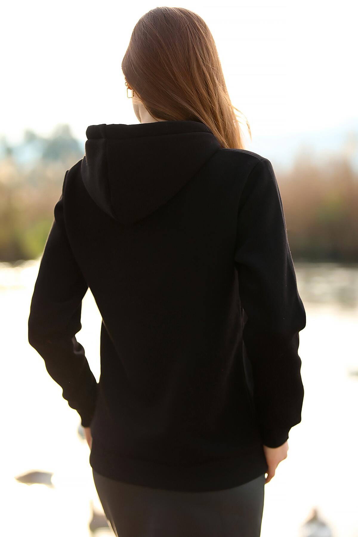Kadın Bisiklet Yaka Yatay Çizgili Kolları Lastikli Sweat Siyah