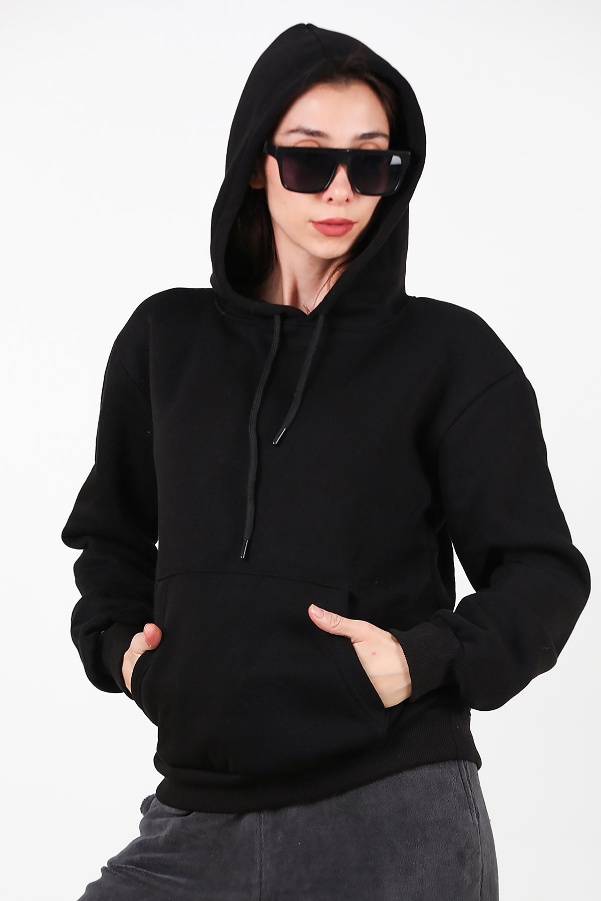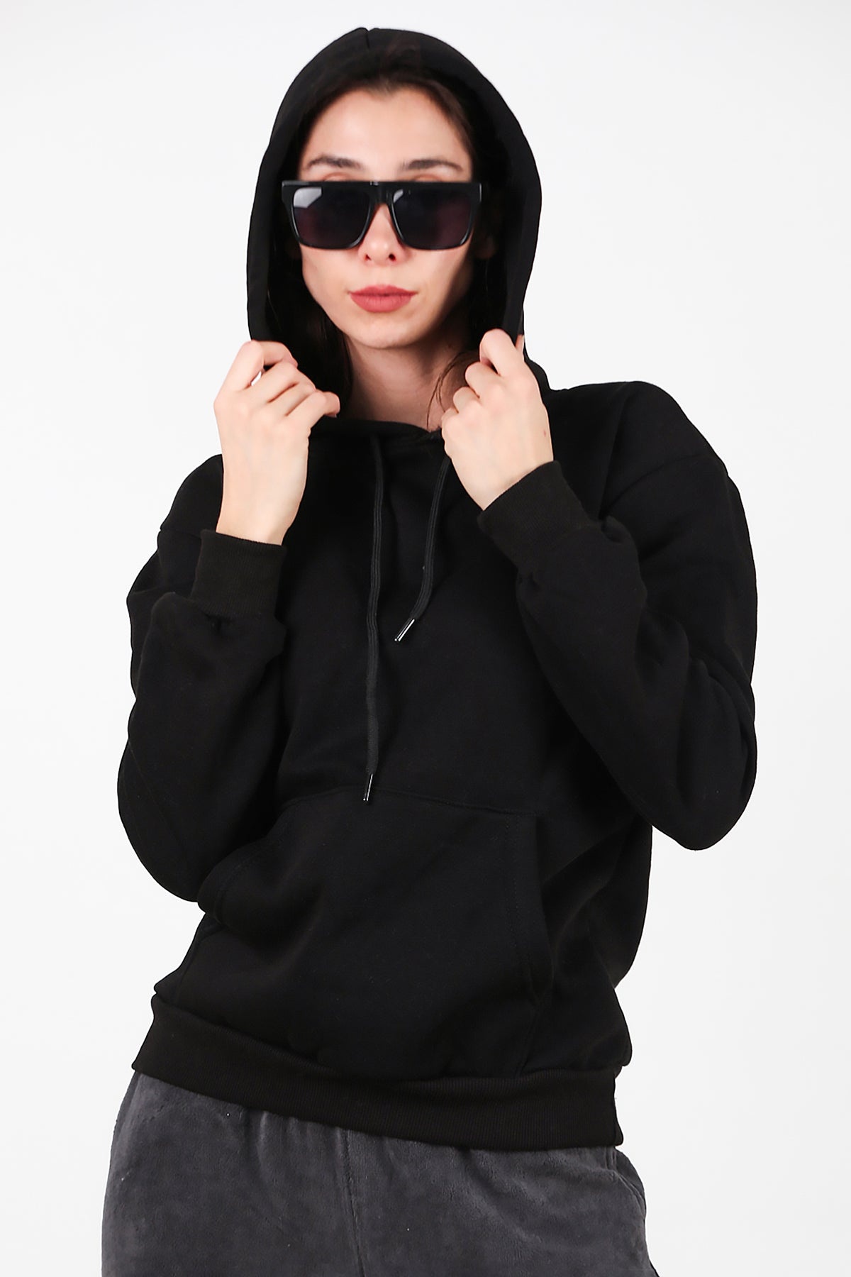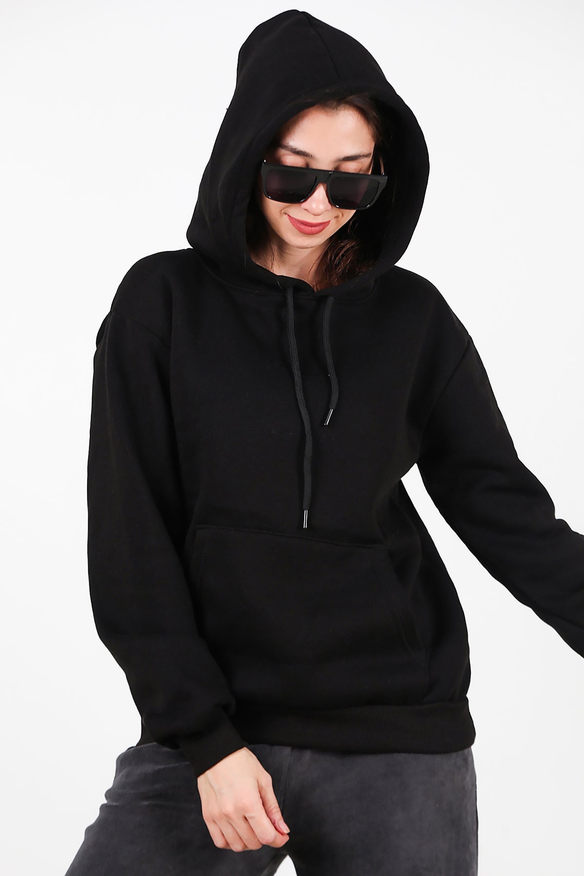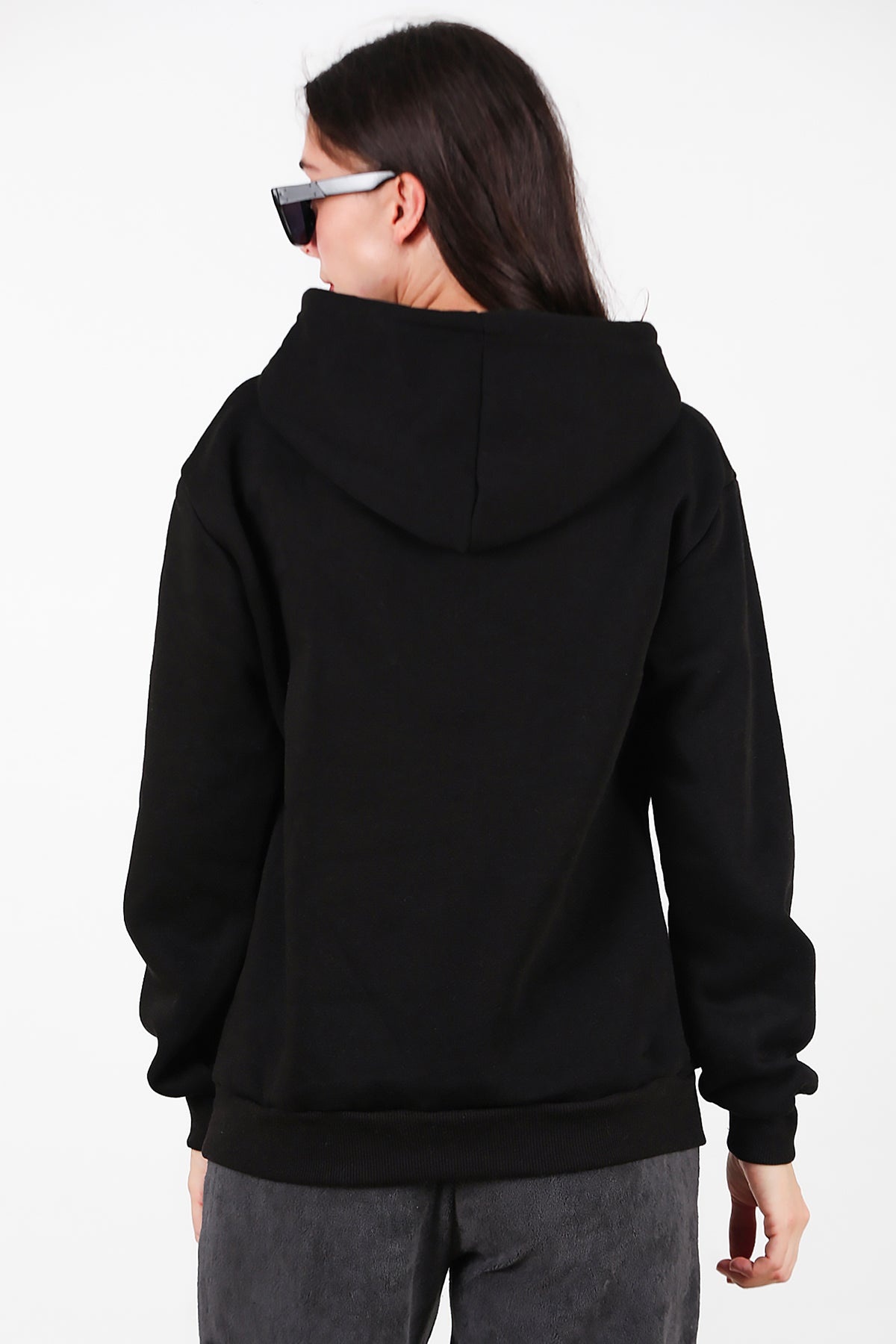 Kadın Kapşonlu Üç İplik Sweet Siyah