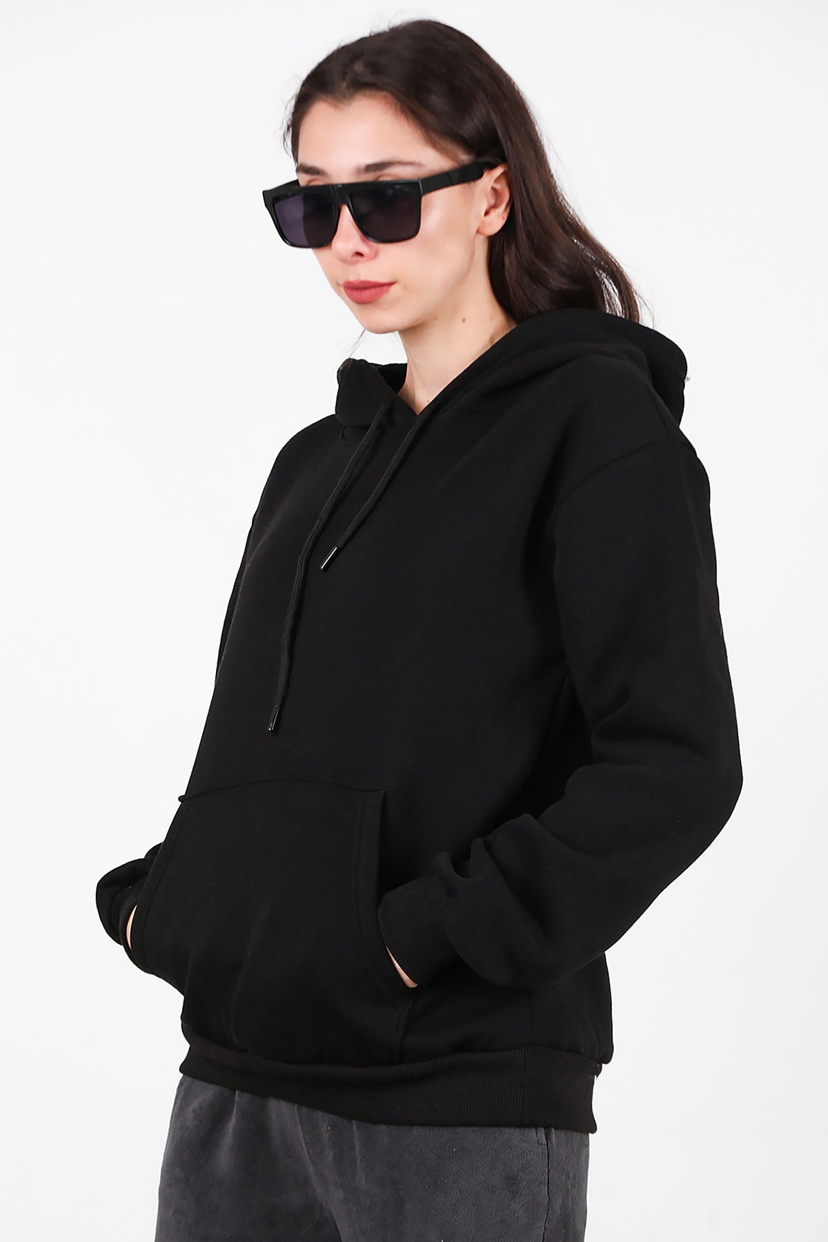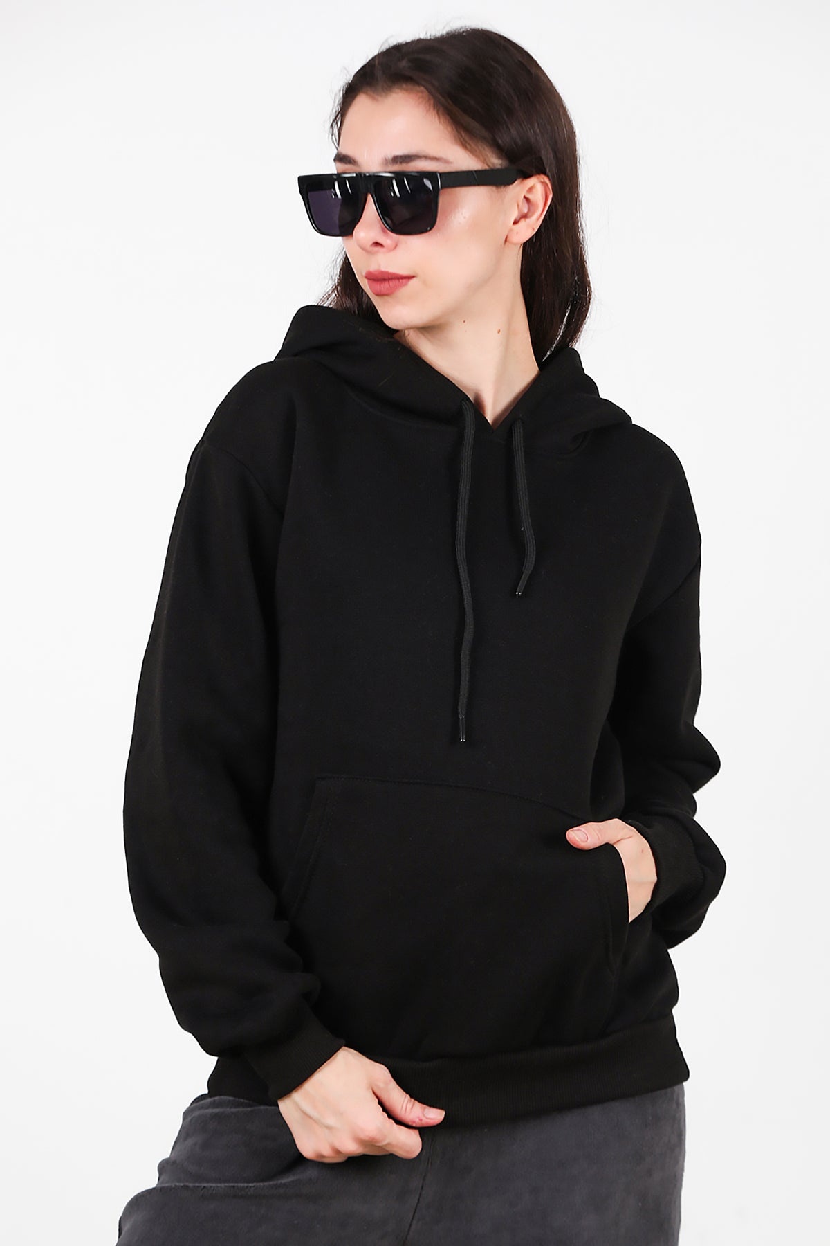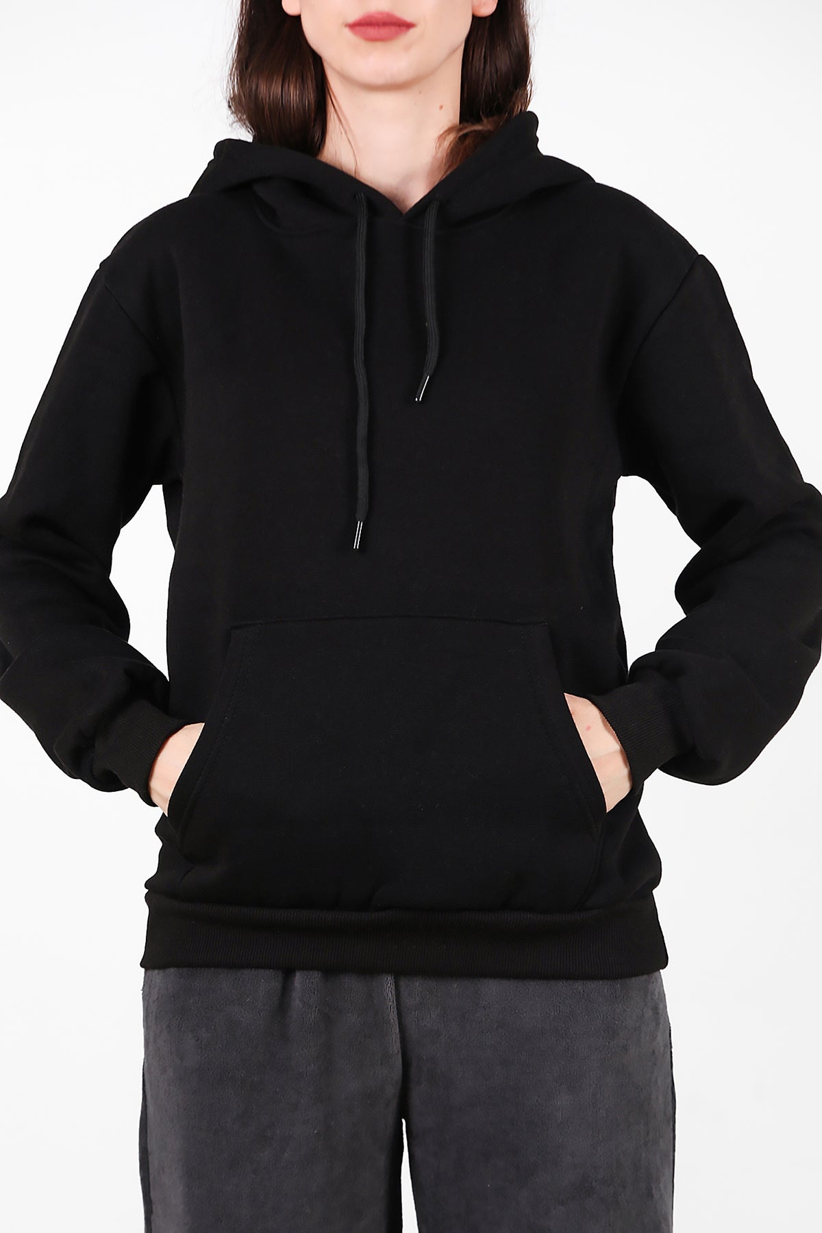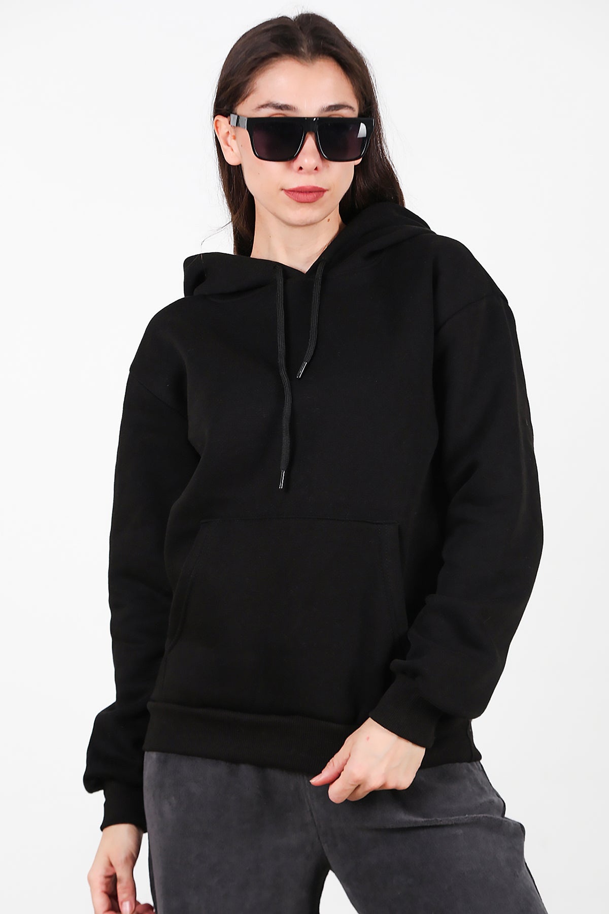 Kadın Kapşonlu Üç İplik Sweet Siyah