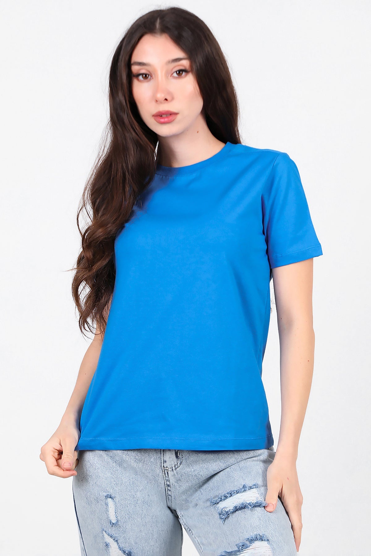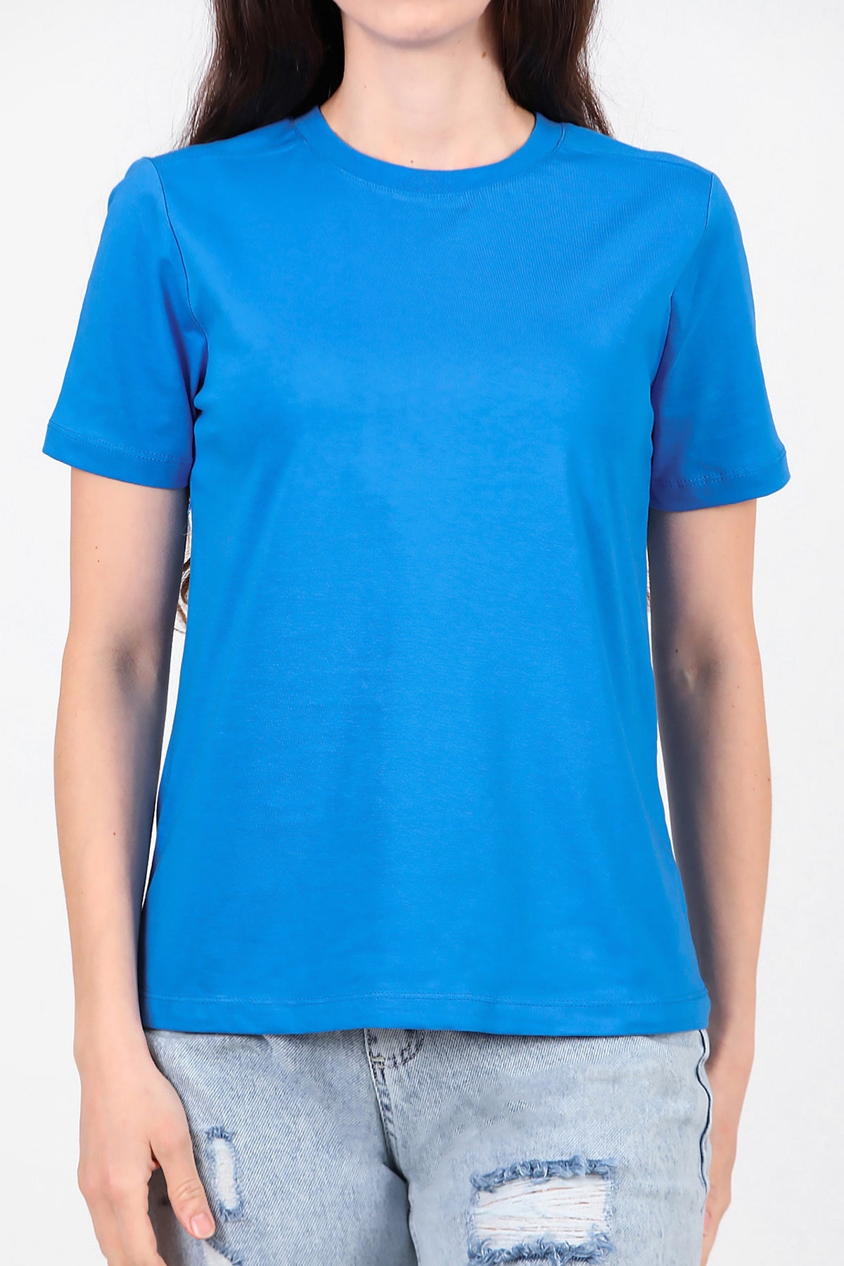 Kadın Omzu Çimalı Basıc Tshırt Saks